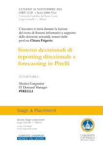 Fondazione Pirelli Educational 2013—2014 Scuola primaria Laboratori Fondazione Pirelli Scuola primaria La Fondazione Pirelli si occupa di conservare e valorizzare il patrimonio storico prodotto dall’azienda in oltre 140 anni di attività. Per l’anno scolastico 2013-2014 la Fondazione organizza un programma gratuito di percorsi creativi rivolto alle scuole che ha come obiettivo principale quello di far conoscere anche ai più giovani il mondo della produzione e del lavoro, avvicinandoli ai valori su cui si basa la cultura d’impresa di Pirelli. Le tematiche affrontate nel ricco programma educativo spaziano dalla storia e tecnologia del pneumatico alla grafica e alla pubblicità, dalla trasformazione urbanistica al cinema d’impresa. I percorsi creativi della Fondazione Pirelli, della durata di circa 3 ore, si articolano in una prima parte teorica che prevede l’utilizzo di supporti multimediali, e una seconda parte più prettamente laboratoriale dove i bambini, facendo tesoro delle informazioni e dei contenuti appresi nella prima parte, potranno lasciare spazio alla loro fantasia e creatività. In particolare, i percorsi qui di seguito proposti sono rivolti alle scuole primarie di I e II ciclo. Scopo trasversale a tutte le attività è inoltre quello di far capire in modo semplice ed essenziale ai bambini che cos’è un archivio storico ed in particolare cosa conserva l’Archivio Storico Pirelli. Da quest’anno Fondazione Pirelli propone anche un programma specifico di attività educative svolte in stretta collaborazione con HangarBicocca, spazio dedicato alla produzione, esposizione e promozione dell’arte contemporanea. Piccoli ingegneri per un giorno: progetta il tuo battistrada Scuola primaria I e II ciclo Cos’è un battistrada e a cosa serve? Il battistrada è uno degli elementi più importanti di un pneumatico: risultato del lungo e sapiente lavoro di ricerca degli ingegneri che giorno per giorno progettano nuovi disegni per migliorare le prestazioni e la sicurezza del pneumatico. Diventa anche tu ingegnere per un giorno e progetta il tuo battistrada! Area di riferimento Arte e immagine Scienze Storia Obiettivi educativi Scopo dell’attività è quello di avvicinare anche i più piccoli al mondo della produzione e del lavoro. I bambini apprenderanno divertendosi da dove è ricavata la gomma, le proprietà di questo materiale e le principali fasi di lavorazione del pneumatico. Impareranno inoltre che cos’è un progetto e come realizzarlo. Attività I bambini, proprio come gli ingegneri di Pirelli, dovranno progettare un battistrada e realizzarlo con l’aiuto della plastilina. Per fare un pneumatico ci vuole un albero Scuola primaria I e II ciclo Cos’hanno in comune dei grandi alberi brasiliani e gli pneumatici delle automobili di Formula 1? Scopriamolo insieme in un appassionante viaggio tra natura e industria che si concluderà con un’attività ricca di divertimento e creatività. Area di riferimento Arte e immagine Geografia Scienze Storia Obiettivi educativi I bambini apprenderanno divertendosi le proprietà della gomma, la sua storia, da dove e come viene ricavata e le principali fasi di lavorazione del pneumatico. Attività L’attività laboratoriale consisterà nella realizzazione di un pneumatico attraverso l’utilizzo della pasta di sale. Progetta il tuo quartiere Bicocca Scuola primaria I e II ciclo Alla scoperta del quartiere Bicocca in un viaggio tra passato e presente. Il quartiere Bicocca come lo conosciamo oggi ha subito una serie di trasformazioni in funzione delle diverse attività che si sono susseguite sul territorio. Una storia lunga più di 500 anni: dalla costruzione della Bicocca degli Arcimboldi, che dà nome al quartiere, alle trasformazioni dell’età industriale e postindustriale. Area di riferimento Arte e immagine Geografia Storia Educazione alla convivenza civile Obiettivi educativi I ragazzi impareranno a conoscere la storia del quartiere Bicocca: dal passato agricolo a quello industriale legato a Pirelli, fino alla trasformazione urbanistica dei giorni nostri. Altro obiettivo del laboratorio sarà quello di sviluppare senso critico e senso di responsabilità verso i luoghi della propria città. Attività I bambini apprenderanno i principali cambiamenti avvenuti nel corso del tempo nell’area di Milano Bicocca e riconosceranno i luoghi attraverso l’uso di una cartina. L’attività laboratoriale sarà la personale rielaborazione e progettazione di un nuovo quartiere Bicocca a misura di bambino. Affreschiamo! Scuola primaria I e II ciclo Come si illustravano le storie nel 1400? Scopriamolo insieme in un viaggio nel tempo alla scoperta della misteriosa “Sala delle dame” della Bicocca degli Arcimboldi e trasformiamoci per un giorno in giovani ed esperti affrescatori. Area di riferimento Arte e immagine Storia Obiettivi educativi Nella “Sala delle dame”, all’interno della quattrocentesca villa di campagna degli Arcimboldi, si snoda una composizione affrescata suddivisa in scene separate da colonne che rappresentano le occupazioni e gli svaghi delle dame dell’epoca. I bambini impareranno cos’è un affresco e come si può raccontare una storia attraverso le immagini. Attività Dopo una visita al ciclo pittorico della “Sala delle dame”, i bambini saranno accompagnati alla Fondazione Pirelli, dove si cimenteranno nella realizzazione di un piccolo dipinto su gesso destinato a decorare le loro stanze. “Ohè bambini non siamo più nell’età della pietra”. Alla scoperta del cinema d’impresa La più bella famiglia di cavernicoli lombardi “Mammut, Babbut, Figliut”, personaggi del celebre Carosello di Pirelli, accompagnerà i bambini alla scoperta della storia della pubblicità cinematografica industriale. Scuola primaria II ciclo Area di riferimento Storia del cinema e della tv Arte e immagine Obiettivi educativi Attraverso la visione di caroselli e film pubblicitari provenienti dall’Archivio Storico Pirelli