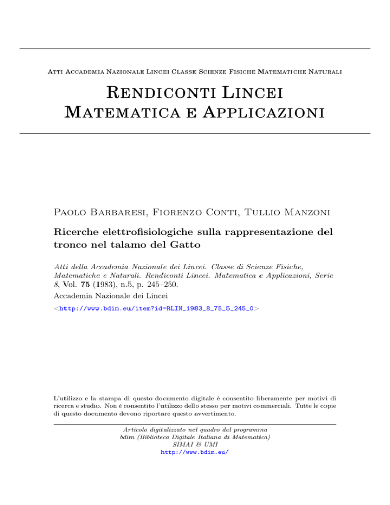 A TTI A CCADEMIA N AZIONALE L INCEI C LASSE S CIENZE F ISICHE M ATEMATICHE N ATURALI R ENDICONTI L INCEI M ATEMATICA E A PPLICAZIONI Paolo Barbaresi, Fiorenzo Conti, Tullio Manzoni Ricerche elettrofisiologiche sulla rappresentazione del tronco nel talamo del Gatto Atti della Accademia Nazionale dei Lincei. Classe di Scienze Fisiche, Matematiche e Naturali. Rendiconti Lincei. Matematica e Applicazioni, Serie 8, Vol. 75 (1983), n.5, p. 245–250. Accademia Nazionale dei Lincei <http://www.bdim.eu/item?id=RLIN_1983_8_75_5_245_0> L’utilizzo e la stampa di questo documento digitale è consentito liberamente per motivi di ricerca e studio. Non è consentito l’utilizzo dello stesso per motivi commerciali. Tutte le copie di questo documento devono riportare questo avvertimento. Articolo digitalizzato nel quadro del programma bdim (Biblioteca Digitale Italiana di Matematica) SIMAI & UMI http://www.bdim.eu/ Atti della Accademia Nazionale dei Lincei. Classe di Scienze Fisiche, Matematiche e Naturali. Rendiconti Lincei. Matematica e Applicazioni, Accademia Nazionale dei Lincei, 1983. P. B arbaresi e a l t r i , Ricerche elettrofisiologiche sulla rappresentazione, ecc. 245 Fisiologia. — Ricerche elettrofisiologiche sulla rappresentazione del tronco nel talamo del G atto W. Nota di P a o l o B a r b a r e si , F io r e n z o C o n t i e T u l l io M a n z o n i , presentata (•*(* ) dal Corrisp. O . P i n o t t i . S ummary. — Electrophysiological experiments of microelectrode recording were performed in the thalamus of the cat in order to study the topography and receptive field (RF) organization of neurones in the trunk representation zone of the nucleus ven­ iralis postero-lateralis (VPL). Experiments were carried out in 6 cats anaesthetized with a mixture of N 20 - 0 2 (70% vs 30%) and halothane (0.5%). Three cats had been pre­ viously submitted to a single injection of horseradish peroxidase in a physiologically defined site of the trunk zone of the first somatosensory area (SI). Neurones responding to stimulation of trunk RFs were located in the dorsal part of VPL intervening between the lateral (VPL1) and medial (VPLm) subnucleus. Cells located laterally in this zone had RFs on the dorsal midline of the body whereas those located medially had RFs on the ventral midline of the body. The RFs of these neurones were bilateral and straddled, often symmetrically, the respective midline. The neurones of the intermediate region of the trunk zone had only contralateral RFs located on the lateral trunk surface. The RFs found in the region of VPL containing cells retrogradely labelled with horseradish peroxidase were similar to those found at the cortical injection site. The results suggest that the bilaterality of the body midline representation in area SI, described in previous experiments, is imposed by the thalamo-cortical input from VPL nucleus. In una precedente Nota [2] sono stati riferiti i risultati di esperimenti ana­ tomici eseguiti con lo scopo di studiare la topografìa delle proiezioni talamocorticali destinate alla zona di rappresentazione del tronco deir area somestesica prima (SI) del Gatto. Questi esperimenti, basati sul metodo del trasporto assonico retrogrado di perossidasi di rafano e di neurotraccianti fluorescenti, ave­ vano dimostrato che i neuroni che proiettano alla regione corticale che contiene la mappa del tronco sono localizzati in una regione dorsale del nucleo ventralis postero-lateralis (VPL) situata tra il subnucleo VPL laterale (VPL1) e mediale (VPLm). Era stato inoltre dimostrato che popolazioni neuroniche localizzate nella porzione laterale, centrale e mediale di questa regione proiettano, nelPordine, alla zona rostrale,centrale e caudale della rappresentazione del tronco dell’area SI. A livello corticale, la zona rostrale e caudale contengono, rispettivamente, la rappresentazione della linea mediana dorsale e ventrale del corpo e sono prov(*) Lavoro eseguito col sussidio del Ministero della P.I. nell’Istituto di Fisio­ logia Umana dell’Università di Ancona. (**) Nella seduta del 26 novembre 1983. 2 46 Atti Acc. Lincei Rend. fis. - S. V i l i , vol. LXXV, 1983, fase. 5 viste di neuroni con campi recettivi periferici (CRP) bilaterali; la zona centrale contiene invece la rappresentazione della regione laterale del tronco ed è costi­ tuita da neuroni con CRP solo contralaterali [10]. Nella presente Nota verranno riferiti i risultati di esperimenti elettrofisio­ logici eseguiti a livello della zona di rappresentazione del tronco nel nucleo VPL. Lo scopo di questi esperimenti si riallaccia a quanto era stato ipotizzato [2] circa i meccanismi neurofisiologici mediante i quali si attua la rappresentazione bilaterale della linea mediana del corpo a livello corticale. Una delle ipotesi prospettate prevede infatti che i CRP bilaterali localizzati a cavallo delle linee mediane del corpo, esibiti dai neuroni dell’area SI, dipendano dalle proiezioni talamiche originate dal nucleo VPL. Secondo tale ipotesi, quindi, già a livello del nucleo talamico di relais la rappresentazione delle linee mediane dovrebbe essere bilaterale. Sulla base delle indicazioni fornite dagli esperimenti anatomici riportati sopra, sono state eseguite esplorazioni microelettrodiche al fine di de­ terminare Porganizzazione topografica della rappresentazione del tronco nel nucleo VPL e di verificare se i neuroni localizzati nelle regioni che proiettano alle zone di rappresentazione delle linee mediane nell’area SI abbiano CRP bilaterali simili a quelli precedentemente identificati a livello corticale. Gli esperimenti sono stati eseguiti in 6 gatti adulti. Tre di questi animali facevano parte del gruppo impiegato per le indagini anatomiche di cui abbiamo già riferito [2]. In tali casi, le esplorazioni microelettrodiche del nucleo VPL sono state effettuate nel periodo intercorrente tra le iniezioni di perossidasi di rafano nell’area SI e la perfusione degli animali. I restanti tre