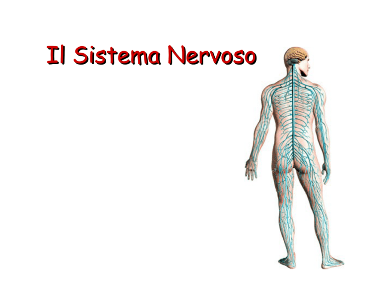 Il Sistema Nervoso Il Sistema Nervoso Il Sistema Nervoso è l'insieme di organi che coordinano le attività volontarie e involontarie dell'organismo svolgendo le seguenti funzioni: → ricevere gli stimoli che arrivano dall'interno e dall'esterno ed elaborare risposte adeguate; → memorizzare informazioni, elaborare il linguaggio, il pensiero e le emozioni; Il Sistema Nervoso Il sistema nervoso dell'uomo si compone di due parti: •Sistema Nervoso Centrale •Sistema Nervoso Periferico Sistema Nervoso Centrale Il sistema nervoso centrale è costituito dall'encefalo (racchiuso nella scatola cranica) e dal midollo spinale (racchiuso nel canale vertebrale all'interno della colonna vertebrale). Il compito del sistema nervoso centrale è quello di raccogliere tutte le informazioni, elaborarle e inviare le risposte ai vari organi. Sistema Nervoso Centrale L’encefalo e il midollo spinale sono protetti da tre membrane chiamate meningi. Queste hanno il compito di proteggere da urti e compressioni e sono ricche di vasi sanguigni per trasportare l'ossigeno e le sostanze nutritive indispensabili al funzionamento dell'encefalo. } meningi Sistema Nervoso Centrale L’encefalo è formato dal cervello, dal cervelletto e dal midollo allungato o bulbo. Sistema Nervoso Centrale Il cervello è la parte superiore più voluminosa dell'encefalo ed ha le seguenti caratteristiche: → la parte più esterna e sottile, detta corteccia cerebrale, è formata dalla cosidetta sostanza grigia. Questa è formata dai corpi cellulari e dai dendriti dei neuroni ed è ripiegata su se stessa più volte a formare le circonvoluzioni cerebrali che aumentano la superficie del cervello; → la parte più interna è detta sostanza bianca ed è formata dagli assoni dei neuroni riuniti in fasci a formare le fibre nervose; → è diviso da un solco nei due emisferi cerebrali destro e sinistro. Sistema Nervoso Centrale Emisfero destro Emisfero sinistro Sistema Nervoso Centrale La corteccia celebrale viene suddivisa in quattro grandi aree, chiamate lobi, ognuna delle quali svolge delle funzioni specifiche. Sistema Nervoso Centrale Immagine delle diverse aree cerebrali attivate nello svolgimento di vari compiti ottenuta attraverso la tomografia a emissione di positroni Sistema Nervoso Centrale La parte più interna del cervello controlla ed elabora gli stimoli grazie a due importanti gruppi di neuroni: il talamo, che elabora gli stimoli sensoriali esterni; l'ipotalamo, che elabora gli stimoli provenienti dagli organi interni. L'ipotalamo regola la produzione di ormoni da parte dell'ipofisi, una ghiandola che fa da collegamento tra il sistema nervoso e quello endocrino. Sistema Nervoso Centrale Sistema Nervoso Centrale per i più curiosi Nel cervello umano i due emisferi hanno funzioni diverse: quello sinistro controlla il linguaggio, l'abilità manuale destra, la capacità di classificare e il comportamento ordinario; l'emisfero destro è specializzato per la reazione alle emergenze, l'organizzazione spaziale, il riconoscimento dei volti e l'elaborazione delle emozioni. Sistema Nervoso Centrale Sotto il solco che divide i due emisferi cerebrali c’è un insieme di fibre nervose, il corpo calloso, che collega tra loro i due emisferi. Posteriormente, sotto il cervello si trova il cervelletto che controlla i movimenti volontari e, come il cervello, è formato da sostanza grigia esterna e sostanza bianca interna che penetra nella sostanza grigia con ramificazioni che ricordano i rami di un albero. Sistema Nervoso Centrale Sistema Nervoso Centrale Il midollo allungato (o bulbo) collega l’encefalo al midollo spinale e contiene importanti centri nervosi che regolano, tra l’altro, le attività involontarie del cuore e della respirazione. Nel midollo allungato le fibre nervose che provengono dalla corteccia cerebrale si incrociano: quelle di sinistra vanno a destra e viceversa. Questo incrocio spiega per quale motivo gli stimoli provenienti dalla parte destra vengano trasmessi alla parte sinistra del cervello e viceversa. Sistema Nervoso Centrale Il midollo allungato si prolunga verso il basso diventando midollo spinale, un cordone di fibre nervose collocato all’interno della colonna vertebrale, che collega l’encefalo agli organi di senso, i muscoli e le ghiandole attraverso il sistema nervoso periferico. Sistema Nervoso Centrale Il midollo spinale è protetto dalle meningi e dalle vertebre ed è anch'esso formato da sostanza bianca, posta all'esterno, e sostanza grigia, posta all'interno a formare una specie di H. In corrispondenza delle aperture tra ogni coppia di vertebre il midollo spinale dà origine a una coppia di nervi spinali (fasci di assoni) che fanno parte del sistema periferico (vedi avanti). Sistema Nervoso Centrale corna posteriori Corna anteriori Nervo spinale Sistema Nervoso Periferico Il sistema nervoso periferico è formato dai nervi che collegano il sistema nervoso centrale a tutti gli organi del corpo. Sistema Nervoso Periferico I nervi sono fasci di fibre nervose circondate da tessuto connettivo e possono essere paragonati a un fascio di cavi elettrici protetti da materiale isolante. Struttura tipica di un nervo Ogni fascio di fibre è formato da più assoni ognuno ricoperto di guaina mielinica Sistema Nervoso Periferico In base alla funzione svolta i nervi possono essere divisi in: → nervi sensoriali: sono formati da fibre nervose che raccolgono i segnali dalla periferia, cioè dagli organi di senso, e li trasmettono al sistema nervoso centrale → nervi motori: sono formati da fibre nervose che trasmettono gli impulsi dal sistema centrale ai muscoli → nervi misti: sono formati da fibre sia sensoriali che motorie Sistema Nervoso Periferico Il sistema nervoso periferico è costituito da: → nervi cranici (12 paia) che partono dall'encefalo e lo collegano agli organi della testa (con l'eccezione del nervo vago che innerva organi esterni alla testa come il cuore e l'intestino) → nervi spinali (31 paia) che 