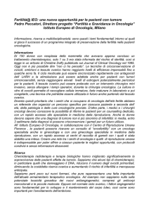 Patologie oncologiche e preservazione della fertilità femminile Autore: Dr Alessio Paffoni, Specialista in Genetica Medica, Ospedale Maggiore Policlinico Mangiagalli Regina Elena, U.O. Sterilità di coppia, Milano Obiettivi formativi: Al termine di questa monografia di aggiornamento, il Medico dovrebbe essere in grado di: conoscere i trattamenti che possono alterare la fertilità femminile; comprendere i meccanismi di salvaguardia della fertilità; illustrare le corrette metodiche da utilizzare. Introduzione L’utilizzo di chemioterapie ad alte dosi e di radioterapie è notevolmente aumentato negli ultimi anni e la disponibilità di protocolli sempre più efficaci e di tecniche diagnostiche avanzate ha radicalmente aumentato la sopravvivenza a lungo termine dei pazienti oncologici. Nel tentativo di migliorare la qualità di vita di questi pazienti, va considerato uno degli effetti collaterali negativi dei regimi terapeutici: la tossicità gonadica, che può portare a sterilità irreversibile attraverso blocco della spermatogenesi nell’uomo o menopausa precoce nella donna. Il problema è particolarmente rilevante nei pazienti in giovane età, che sopportano meglio le terapie antineoplastiche e sono più danneggiati dall’eventuale sterilità. Da oltre trenta anni, la crioconservazione del liquido seminale si è mostrata utile ed efficace come ‘riserva del potenziale di fertilità’ per gli uomini esposti al rischio di sterilizzazione: la semplicità di raccolta del liquido seminale, la buona sopravvivenza degli spermatozoi alla conservazione in azoto liquido e la relativa semplicità delle metodiche di crioconservazione hanno reso tale pratica molto diffusa, portando in numerosi casi a gravidanze con cicli di Procreazione Medicalmente Assistita (PMA). Tutt’oggi rimane l’unico metodo di provata efficacia per preservare la fertilità in pazienti maschi affetti da cancro1,2. Per i gameti femminili, al contrario, la situazione è assai più complessa, tanto che ancora non esiste un metodo d’elezione per la preservazione della fertilità che si possa definire pratico e sicuro e che garantisca Sanitanova Srl – Fertilità a 360°: spunti e riflessioni sulla PMA; © 2011 Modulo 2 1 adeguate probabilità di ottenere una gravidanza per via naturale o ricorrendo a metodiche di PMA. Dello stesso tipo di intervento potrebbero beneficiare non solo le pazienti oncologiche, ma anche quelle che, per patologie o condizioni diverse, sono a rischio di menopausa precoce. Molti sono stati gli approcci sperimentali, ma nessuno può dirsi risolutivo: questioni cliniche, biologiche, tecniche ed etiche rendono spesso impraticabili le soluzioni attualmente possibili. Uno studio prospettico3, già nel 1997, mostrava come il 48% delle pazienti oncologiche avesse avuto una menopausa indotta dagli agenti alchilanti. Lo stesso esito era stato osservato in seguito a trapianto di midollo nel 92% delle 63 giovani pazienti oncologiche considerate. Gli effetti sterilizzanti erano evidenti a distanza di tempo, come menopausa precoce dovuta a deplezione dei follicoli primordiali presenti nell’ovaio al momento della terapia. Il controllo endocrinologico della fertilità nella donna La funzione ovarica è regolata da numerosi ormoni prodotti dall’ipotalamo, dall’ipofisi anteriore e dagli organi sessuali stessi. Qualsiasi danno a queste strutture può comportare sterilità, ma le gonadi sono il sito più suscettibile agli effetti tossici delle chemioradioterapie. Il GnRH è l’ormone che rilascia le gonadotropine: è un decapeptide prodotto dall’ipotalamo che trova i suoi recettori sull’ipofisi, a cui è trasportato dal sistema portale ipotalamo-ipofisario. La sua breve emivita (2-4 minuti) e la secrezione moderata in cicli di pochi minuti ogni 1-3 ore garantiscono bassi livelli nella circolazione sistemica, tali da non avere attività biologica. L’effetto sull’ipofisi è di promuovere la secrezione delle gonadotropine FSH (ormone follicolo-stimolante) e LH (ormone luteinizzante). Il normale periodo riproduttivo di una donna è caratterizzato da cambiamenti mensili ciclici nel tasso di secrezione degli ormoni sessuali e, quindi, nella situazione ovarica. Queste alterazioni ritmiche sono mediate da FSH e LH. Nella prima fase del ciclo mestruale (fase follicolare), crescono i livelli dei due ormoni, prima dell’FSH e dopo pochi giorni dell’LH. L’FSH causa la crescita e la maturazione del follicolo ovarico, che a sua volta produce quantità crescenti di estrogeni. Gli estrogeni influenzano positivamente il processo, incrementando il numero di recettori per FSH e LH sulle cellule della teca e della granulosa del follicolo in maturazione, che diventa più sensibile agli effetti delle gonadotropine. D’altra parte, gli estrogeni hanno effetto di feedback negativo sulla ghiandola ipofisaria per la produzione di gonadotropine. La conseguente lieve caduta dei livelli di FSH e LH nella prima fase del ciclo impedisce la maturazione di più follicoli e provoca l’atresia della coorte di follicoli più avanzati nello sviluppo. Per un meccanismo solo in parte conosciuto, quando la concentrazione di estrogeni raggiunge un livello critico, si ha un feedback positivo sull’ipofisi che provoca un aumento dei livelli di LH di dieci volte e di FSH di due o tre volte (“picco”). In questa condizione il follicolo completa rapidamente il suo sviluppo e avviene la deiscenza del follicolo stesso (ovulazione). Dopo il rilascio dell’ovocita, inizia la fase luteale del ciclo mestruale: le cellule della teca Sanitanova Srl – Fertilità a 360°: spunti e riflessioni sulla PMA; © 2011 Modulo 2 2 e della granulosa del follicolo residuo formano il corpo luteo e iniziano a secernere grandi quantità di progesterone e, anche se in minore quantità, di inibina ed estrogeni. Questi tre ormoni hanno un potente effetto negativo sulla produzione di gonadotropine e un modesto effetto inibitorio sull’ipotalamo: i livelli e