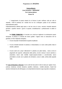 ELETTRONICA II Prof. Dante Del Corso - Politecnico di Torino Parte E: Circuiti misti analogici e digitali Lezione n. 22 - E - 4: Circuiti monostabili Generatori di impulsi Circuiti misti analogici e digitali 4 • Monostabili e generatori di impulsi Definizione funzionale Circuiti a ritardo Circuiti integrativi Circuiti derivativi Circuiti numerici Cosa e' un generatore di impulso • E’ un circuito MONOSTABILE • Genera un singolo impulso in corrispondenza di una determinata transizione all’ingresso W t1 fronte di salita t1 Cosa e' un generatore di impulso • E’ un circuito MONOSTABILE • Genera un singolo impulso in corrispondenza di una determinata transizione all’ingresso W t1 fronte di discesa t1 Monostabili retriggerabili • Monostabili non retriggerabili – un nuovo comando di ingresso ricevuto quando l’uscita e’ attiva viene ignorato • Monostabili retriggerabili (prorogabili) – un nuovo comando di ingresso fa ripartire da zero la durata dell’impulso di uscita, indipendentemente dal tempo trascorso • Tempo di recupero (recovery) Circuiti misti analogici e digitali 4 • Monostabili e generatori di impulsi Definizione funzionale Circuiti a ritardo Circuiti integrativi Circuiti derivativi Circuiti numerici Diagrammi di temporizzazione SEGNALE1 SEGNALE2 T rapporto causa-effetto diretto rapporto causa-effetto con ritardo T Ritardi e impulsi • Combinando un ritardo con operatori logici combinatori (AND, OR, XOR, NOT) o sequenziali (flip-flop RS e altri) si possono ritardare le transizioni e generare impulsi • Operatori combinatori: Nicoud, Fig. 3.55 • Operatori sequenziali: Millman, Fig. 15.31 Impulso su fronte di salita SIG-B SIG-A T SIG-C SIG-A T SIG-B SIG-C Simbolo funzionale SIG-A SIG-A SIG-C SIG-C Impulsi su entrambi i fronti SIG-B SIG-A T SIG-D SIG-A T SIG-B SIG-D T Ritardo del fronte di discesa SIG-B SIG-A T SIG-D SIG-A T SIG-B SIG-D T Monostabile con flip-flop SR Q S IN R RES T IN OUT RES T OUT Come ottenere ritardi • Celle RC passa basso: • Linee di ritardo • Catene di inverter • Circuiti sequenziali: ritardi continui scarsa precisione ritardi discreti alta precisione Circuiti misti analogici e digitali 4 • Monostabili e generatori di impulsi Definizione funzionale Circuiti a ritardo Circuiti integrativi Circuiti derivativi Circuiti numerici Cella a carica di condensatore VI OFF R VI VO C ON t VH VO -t/τ τ = RC VO = VH (1 - e ) 0 τ t Ritardo con cella RC R VI C VO VT t τ = RC -T/τ VT = VH (1 - e ) T = τ loge (VH - VT)/VH VO T Linea di ritardo • Catene di celle LC • Linee passive: uscita diretta delle celle • Linee attive: buffer in uscita t t t t t Catena di inverter • ritardo legato alla tecnologia • ritardi “accoppiati” per catene entro lo stesso integrato Ritardi con circuiti sequenziali • Il segnale di trigger comanda il reset di un contatore • Le uscite sono decodificate da circuiti combinatori per ottenere ritardi e larghezze di impulsi multipli del periodo di clock • La precisione e’ quella del clock • La risoluzione e’ pari al periodo del clock Circuiti misti analogici e digitali 4 • Monostabili e generatori di impulsi Definizione funzionale Circuiti a ritardo Circuiti integrativi Circuiti derivativi Circuiti numerici Monostabili derivativi C VI VO R VT t τ = RC VT = VH e -T/τ T = τ loge (VH/VT) VO T Risposta a onda quadra C R VH VI 0 t VO Impulso negativo in uscita τ Risposta a onda quadra C R VH VI 0 t VO Impulso bloccato dal diodo di clamp τ Monostabile con flip-flop SR Q S IN R RES T IN OUT RES T OUT Componenti commerciali: il 555 Figura non disponibile: riferirsi al libro di testo Elettronica II, volume 2 pag. 68