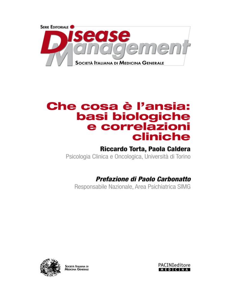 Serie Editoriale S ocietà Italiana di M edicina G enerale Che cosa è l’ansia: basi biologiche e correlazioni cliniche Riccardo Torta, Paola Caldera Psicologia Clinica e Oncologica, Università di Torino Prefazione di Paolo Carbonatto Responsabile Nazionale, Area Psichiatrica SIMG Società Italiana di Medicina Generale PACINIeditore MedicIna © Copyright 2008 by Pacini Editore S.p.A. – Pisa Realizzazione editoriale Pacini Editore S.p.A. Via Gherardesca 1 56121 Ospedaletto – Pisa [email protected] www.pacinimedicina.it Grafica e stampa Industrie Grafiche Pacini – Pisa La pubblicazione è resa possibile grazie al contributo di LUNDBECK ITALIA SpA Edizione fuori commercio. Omaggio per i Signori Medici Le fotocopie per uso personale del lettore possono essere effettuate nei limiti del 15% di ciascun volume/fascicolo di periodico dietro pagamento alla SIAE del compenso previsto dall’art. 68, commi 4 e 5, della legge 22 aprile 1941 n. 633. Le riproduzioni effettuate per finalità di carattere professionale, economico o commerciale o comunque per uso diverso da quello personale possono essere effettuate a seguito di specifica autorizzazione rilasciata da AIDRO, Corso di Porta Romana n. 108, Milano 20122, e-mail [email protected] e sito web www.aidro.org. Indice Prefazione......................................................................................... 5 Introduzione ..................................................................................... 9 Circuiti neuronali implicati nella modulazione dell’ansia . .................... 11 Meccanismi neurotrasmettitoriali . ..................................................... 15 Acido γ-amino butirrico (GABA) .................................................. 15 Neurotrasmettitori eccitatori ....................................................... 17 Monoamine ................................................................................ 21 Neurosteroidi .............................................................................. 25 L’asse ipotalamo-ipofisi-surrene (HPA) ........................................ 26 Sistema immunitario ................................................................... 30 Disturbi d’ansia e circuiti psicobiologici ............................................. 33 Disturbo di panico ...................................................................... 33 Disturbo d’ansia generalizzato .................................................... 38 Disturbo post-traumatico da stress.............................................. 39 Fobia semplice ........................................................................... 40 Disturbi da ansia sociale ............................................................. 40 Disturbo ossessivo-compulsivo (DOC) ........................................ 42 Prefazione L’ansia è un termine di cui tutti siamo convinti di conoscere il significato, anche se poi compaiono difficoltà quando si cerca di darne una definizione precisa. Sicuramente appartiene alla sfera dell’affettività ed è un’emozione o un sentimento che può avere intensità o cause diverse; l’ansia è una condizione fisiologica e psicologica non anormale in sé, ma che può interessare la psichiatria. Il problema cruciale è distinguere tra ansia normale e ansia patologica. L’ansia normale è un fenomeno importante per la nostra sopravvivenza, uno stato di allerta psichica con attivazione generalizzata delle risorse individuali, diretta contro uno stimolo ben conosciuto e reale. L’ansia normale è dunque una reazione d’allarme che non solo non interferisce negativamente, ma al contrario potenzia le capacità operative del soggetto nel risolvere una situazione. Bisogna essere consapevoli che se l’ansia esiste è anche perché i geni che la permettono sono arrivati fino a noi; mentre i nostri progenitori che non avevano “i geni per l’ansia” sono probabilmente finiti, prima di potersi riprodurre, nello stomaco di qualche animale carnivoro. L’ansia diventa patologica quando tali reazioni sono quantitativamente esagerate, con conseguente caduta nel livello delle prestazioni. Tutto ciò è stato ben documentato negli animali già nel 1908 da Yerkes e Doson, che elaborarono sulla base dei loro esperimenti l’omonima legge (Fig. 1). Per capire meglio il rapporto tra ansia e prestazioni (e anche l’effetto che su di esso hanno i farmaci ansiolitici) si pensi ad esempio alla situazione di uno studente che deve preparare un esame. Se il suo livello di ansia fosse troppo basso, non si impegnerebbe a sufficienza nella preparazione: un minimo di ansia costituisce uno stimolo indispensabile. Ma se il livello di ansia fosse troppo elevato, egli rischierebbe di non riuscire a concentrarsi abbastanza per studiare e di sentirsi poi paralizzato davanti al professore ed incapace di proferire parola. Quindi l’uso eventuale di un ansiolitico potrebbe rivelarsi utile nel caso di un’ansia eccessiva, migliorando la prestazione; ma il medesimo ansiolitico, se usato per sedare un’ansia fisiologica, peggiorerebbe la prestazione ed il nostro studente potrebbe essere rallentato non più dalla paura ma dalla sonnolenza. In alcune condizioni morbose, l’ansia ed i disturbi somatici ad essa correlati vengono individuati in termini operativi come veri e propri criteri diagnostici. In questo volumetto saranno esaminati più avanti i vari disturbi d’ansia classificabili secondo i criteri del DSM. Sembra però utile cominciare ad accennare qui in modo sintetico e pratico ai principali quadri sintomatologici che un medico può di fatto trovarsi ad affrontare, inquadrandoli semplicemente in base ai seguenti elementi: a) durata; b) presenza di Che cosa è l’ansia: basi biologiche e correlazioni cliniche stimoli scatenanti; c) presenza di contenuti specifici dei fenomeni psicopatologici. Tali variabili si possono diversamente interfacciare generando schematicamente quattro diverse situazioni. 1) quadro 