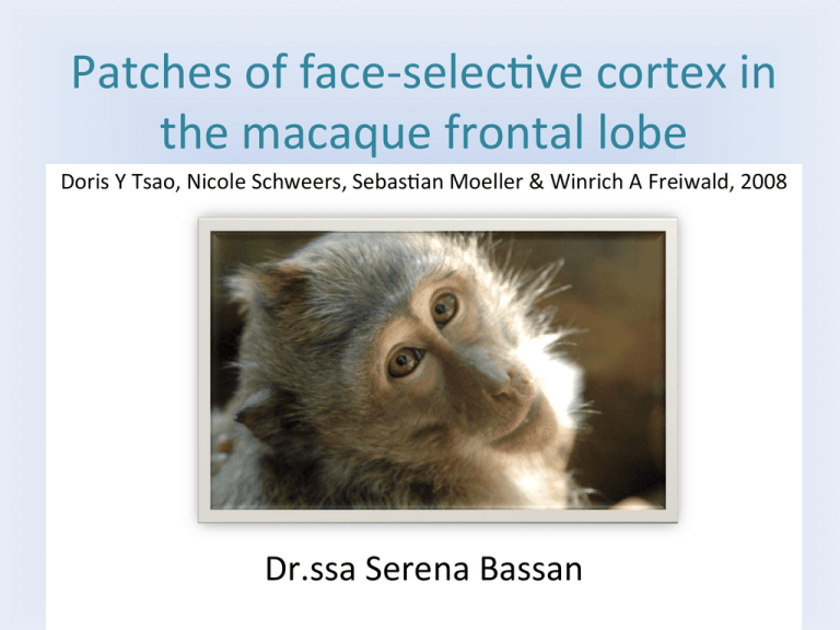 Patches of face-­‐selec-ve cortex in the macaque frontal lobe Doris Y Tsao, Nicole Schweers, Sebas-an Moeller & Winrich A Freiwald, 2008 Dr.ssa Serena Bassan In principio si pensava che l’area specializzata per il riconoscimento delle facce fosse il lobo temporale-­‐occipitale. U-lizzando fMRI nei macachi più vecchi si iden-ficarono tre regioni della corteccia prefrontale ventrale che ricevono e rispondono alle informazioni facciali. Infraprincipal dimple (JPD) Quest’area è un piccolo solco che si trova solo nel cervelllo del macaco tra l’area 45 (parte triangolare dell’area di Broca) e 47 (giro prefrontale inferiore) AYraverso tecniche di neuroimmagine è stato trovato in quest’area un raggruppamento di cellule specializzate per il riconoscimento dei vol-. La percezione del volto rileva informazioni riguardo iden-tà, genere, umore, direzione ed intenzione dello sguardo ed ognuna di queste componen- può avere una grande influenza sul comportamento. Il volto a^va una larga connessione con le aree del cervello includendo: • Giro inferiore occipitale • Giro fusiforme • Ippocampo • Amigdala • Giro frontale inferiore • Corteccia orbitofrontale • Solco temporale superiore Dei gruppi di cellule sele^ve per le facce sono state trovate nella corteccia prefrontale, in modo specifico nel solco prefrontale inferiore e nella corteccia orbito-­‐ frontale. Metodo sperimentale I macachi durante gli esperimen- venirono aneste-zza- per ridurre i movimen- degli ar- durante la scannerizzazione con fMRI. Gli s-moli visivi erano blocchi di categorie di immagini. La comparsa di ogni categoria durava 32 secondi ed ognuna aveva 16 diverse immagini. Slice prescrip-on Scannerizzando quaYro macachi hanno u-lizzato una tecnica di “sezionamento” che includeva tuYo il lobo frontale e questo fu il primo esperimento di ricerca delle aree sele^ve della faccia nel lobo frontale di primi-vi senza requisi- di compi- a^vi. Dalla prima fMRI si è scoperto che esistono tre zone discrete sele^ve per la faccia nella corteccia prefrontale. Le scimmie erano scannerizzate mentre erano sveglie e fissavano qualcosa passivamente. Gli s-moli erano: • Facce umane • Facce di macachi • Mani • Ogge^ rari • FruYa e vegetali • Corpi senza testa • Ogge^ alla rinfusa Ognuna delle quali presenta- in blocchi separa- Corteccia prefrontale orbitale PO In tuYe e quaYro le scimmie è stato osservata una coppia bilaterale di aree per la faccia nel solco laterale orbitale (fig. 1 a,b) chiamato PO ⇨corteccia prefrontale orbitale: • Coronale • Orizzontale emisfero destro • SagiYale scimmia M4 (fig. 1c) Figura 1 • A: le regioni a^ve mostrano una risposta maggiore nei confron- delle facce piuYosto che nei confron- delle quaYro categorie degli ogge^ non-­‐ facce. PO= corteccia prefrontale orbitale PL= corteccia prefrontale laterale PA= corteccia prefrontale arcuata • B: le aree prefrontali per le facce ricoprono i lobi destro e sinistro frontali dilata- delle quaYro scimmie. • C: feYe coronale, sagiYale e orizzontale dell’emisfero destro della scimmia M4 • D: media delle aree bilaterali di tuYe le scimmie e dei loro emisferi misurandoli nel tempo. Hanno u-lizzato tre differen- s-moli visivi: ü Facce: grigio chiaro e tra queste le facce umane F; e le facce delle scimmie M ü Ogge^ non facce: grigio più scuro dove H= mani; G= gadget; V=vegetali e fru^; B= corpi senza testa ü Immagini alla rinfusa: bianco • E: istogramma mostra la percentuale del cambio del segnale delle facce e degli ogge^ non facce nella fMRI nelle tre aree prefrontali per la faccia • F: in alto la citoarchiteYura della corteccia prefrontale del macaco, sulla sinistra la visione laterale e sulla destra la visione ventrale. In basso, l’a^vazione delle aree alla vista delle facce (contorno verde), e degli ogge^ non-­‐facce e ogge^ alla rinfusa. Area prefrontale laterale PL Quest’area è sele^va per il riconoscimento sele^vo delle facce infa^ no-amo un elemento comune di quest’area che è una forte a^vazione dell’emisfero destro. Nelle tre scimmie M1, M2,M4 il PL è stato trovato solo nell’emisfero destro, mentre in M3 la PL è stata rilevata più larga di 2.5 mm³ nell’emisfero destro rispeYo al sinistro perché era stata u-lizzata una diversa tecnica (RM). • Un’altra scoperta è che l’area PL è localizzata alla base del solco inferiore nelle scimmie M1 e M2 e più dorsalmente nelle scimmie M3 e M4 nel solco JPD. Queste differenze nel posizionamento tra gli animali rivelano la possibilità che la PL può cos-tuire due regioni dis-nte funzionali che sono espresse una ad una. Condizione di fissazione passiva Le aree prefrontali per la faccia nei macachi che fissano passivamente è consistente con il faYo che le cellule prefrontali per la faccia rispondono alle facce soYo condizione di fissazione passiva. Infa^ in tuYe e quaYro le scimmie l’esistenza e la localizzazione di queste aree era forte tra le sessioni scannerizzate indipendentemente. PO, PL, PA L’a^vazione di queste tre aree prefrontali è simile nelle quaYro scimmie mentre la media del tempo cambia da facce a ogge^ e questo soYolinea la forte sele^vità facciale per ognuna delle aree PO,PL,PA, che rappresentano un piccolo soYoinsieme del più grande dominio “di risposta ogge^” nella corteccia prefrontale. Controllo dell’umore La corteccia orbito-­‐frontale è stata implicata nel: v controllo dell’umore v Creazione delle emozioni v Rinforzo sociale Dimostrando la possibilità che essi possono essere sele^vi per le espressioni facciali. Esperimento 2 Si è misurato le risposte facciali del macaco neutrali ed espressive. TuYe e tre le aree rispondono maggiormente all’espressività piuYosto che alle facce neutrali. Le differenze sono state altamente significa-ve in PO ma non in PL e PA. In questo modo l’a^vità aumentata delle facce espressive in PO non è stato probabilmente causata da un generale aumento dell’aYen