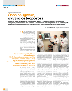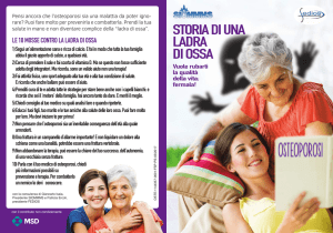 6 S in alute A CIASCUNO LA SUA MOC La densitometria ossea (comunemente chiamata MOC) è un esame indispensabile per valutare le condizioni dello scheletro. Ne esistono però di diversi tipi: MOC a singolo raggio fotonico. Consente di esaminare parti periferiche dello scheletro, generalmente le ossa dell’avambraccio. È un esame semplice, breve, a basso costo, utile nello screening di primo livello. MOC a doppio raggio fotonico. Richiede 10-30 minuti più della precedente; viene utilizzata per esaminare nello screening di secondo livello la colonna vertebrale lombare e il femore. MOC digitale a raggi X. Oltre allo studio del femore, per- mette di esaminare la colonna vertebrale anche in proiezione laterale e di effettuare un’indagine di tutto lo scheletro (Total Body) in una ventina di minuti. È utile sia per valutazioni di primo livello sia per il controllo dei soggetti a rischio e di quelli in terapia. MOC ad ultrasuoni. Introdotta di recente, questa metodica fornisce dati sulla struttura ossea esaminando il calcagno, le falangi delle dita o la tibia. Non è ancora utilizzata su larga scala. Non si piegano, ma a volte si spezzano Nell’Unione Europea, ogni 30 secondi si verifica una frattura ossea causata dall’osteoporosi e si ritiene che nei prossimi 50 anni il numero di queste fratture sia destinato a passare, in tutto il mondo, dagli attuali 1,8 milioni ai 6,3 milioni. Il costo sociale di questa malattia è imponente: negli Stati Uniti occorrono dieci miliardi di dollari l’anno per curare le sole fratture del collo del femore causate dall’osteoporosi; in Italia, si superano abbondantemente i 600 milioni di Euro l’anno per le spese connesse all’ospedalizzazione dei pazienti osteoporotici. In attesa di terapie risolutive, che a tutt’oggi non sono disponibili, è importante attuare una corretta prevenzione con la dieta e l’attività fisica. OSTEOPOROSI info ➔ PER INFORMAZIONI In Italia esistono molti Centri per l’osteoporosi. Ne elenchiamo i recapiti telefonici: • Piemonte-Valle d’Aosta 0116336704; 011633676 • Liguria 0109134159; 0105634401 0105634391 • Lombardia 0258296415; 0255033554 • Veneto Trentino Alto Adige 0456338607; 0458074749 0498212169; 0498213033 0498215796 • Friuli Venezia Giulia 0403994527 • Emilia Romagna 0543731863; 0516363533 0521702497 • Marche 0731534132 • Toscana 055427973; 050558604; 050992534; 0577233343; 0577233425 • Umbria 0759418731 • Lazio/Abruzzo/Molise 0633062841; 06515011; 0658704218; 0639940151; 761303062; 0763711244 • Campania/Basilicata 0832215442 • Calabria/Sicilia 0957262552; 0902212550; 090221363 • Sardegna 07060286219. I l 20 ottobre prossimo è indetta la Giornata Nazionale dell’Osteoporosi, preceduta da una vasta campagna d’informazione e sensibilizzazione rivolta soprattutto alle donne, che sono le principali vittime di questa malattia: nel sesso femminile, dopo la menopausa, l’osteoporosi è infatti 6 volte più frequente che in quello maschile. Anche gli uomini, però, ne sono colpiti in una certa percentuale dopo i 50 anni. Per capire in cosa consiste questa malattia bisogna tener presente che le ossa sono costituite da minerali (soprattutto calcio, ma anche fosforo, magnesio e fluoro) immersi in una matrice proteica. Tutte queste sostanze sono interessate da un vivace metabolismo, in cui si verificano fenomeni di “demolizione” (affidati a cellule chiamate osteoclasti) controbilanciati da continui fenomeni di “costruzione” (ad opera di cellule chiamate osteoblasti). Attraverso la demolizione viene mantenuta stabile nell’organismo la quantità di calcio man mano necessaria per molte funzioni vitali: attività enzimatica, secrezione delle ghiandole endocrine ed esocrine, conduzione degli impulsi nervosi, contrazione della muscolatura generale e cardiaca, coagulazione, integrità della cute. La regolazione del metabolismo osseo dipende da alcuni ormoni prodotti dalle ghiandole paratiroidi e dalla tiroide; inoltre è positivamente influenzata dagli estrogeni: la diminuzione di questi ultimi dopo la menopausa, insieme al fatto che la massa ossea femminile è minore di quella maschile, spiega la molto maggior frequenza della malattia nelle donne oltre i 50 anni. Per i fe- nomeni di costruzione dell’osso è poi essenziale la vitamina D, in parte assunta con gli alimenti e in parte sintetizzata a livello della cute attraverso l’esposizione ai raggi ultravioletti. L’equilibrio metabolico dell’osso si altera inevitabilmente con l’età, provocando una condizione definita osteopenia, cioè una fisiologica diminuzione della massa ossea. Quando questo processo si manifesta in modo più rapido e intenso, determinando una consistente alterazione della struttura delle ossa che diventano porose e fragili, si parla di osteoporosi. Benché l’osteoporosi si manifesti tipicamente in età avanzata, le sue premesse vengono poste nel corso dei primi 20 anni. L’evoluzione della massa ossea attraversa infatti tre stadi: nella fase di incremento, che occupa appunto le prime due decadi di vita, lo scheletro raggiunge la sua massima consistenza; segue una fase di consolidamento, che dura fino ai 40 anni circa, in cui la massa ossea continua a progredire molto lentamente; infine inizia una fase di decremento caratterizzata dalla perdita più o meno rapida del contenuto minerale e proteico delle ossa. Se nella fase di incremento si forma una massa ossea robusta e compatta, lo scheletro risulterà più resistente ai fattori che tendono a indebolirlo nel corso della terza età. Di qui l’importanza di una dieta ricca di calcio e di un corretto stile di vita fin dall’infanzia. L’osteoporosi provoca inizialmente modesti schiacciamenti delle vertebre, con diminuzione della statura, incurvamento della colonna vertebrale e a volte dolore alla schiena, soprattutto a livello dorsale e lombare. Il dolore tende ad essere più intenso la sera e si attenua con il riposo. Ma il rischio più grave è quel