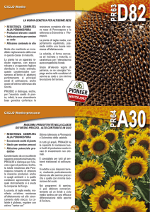 GIRASOLE 2015 IBRIDI RESISTENTI AL DISERBO IN POST-EMERGENZA PRECOCE PELIKAN SULFO Taglia media. Calatide grande, leggermente concava. Elevato contenuto in olio. Investimento finale: 5-6,5 piante mq. VINCENZO SULFO Taglia media. Calatide medio-grande. Elevato contenuto in olio. Investimento finale: 5-6,5 piante mq. Ciclo medio - Convenzionale BUONA STABILITÀ PRODUTTIVA ELEVATA RESISTENZA AL TRIBENUROM METILE › ELEVATA RESISTENZA ALL’ALLETTAMENTO. › BUONA RESISTENZA ALLE PRINCIPALI RAZZE DI PERONOSPORA. › RESISTENZA AD OROBANCHE RAZZE A-B. › BUONA SANITÀ DI PIANTA. Ciclo medio - Convenzionale BUONA STABILITÀ PRODUTTIVA ELEVATA RESISTENZA AL TRIBENUROM METILE › ELEVATA RESISTENZA ALLE PRINCIPALI RAZZE DI PERONOSPORA. › RESISTENZA AD OROBANCHE RAZZE A-B-C-D-E. › OTTIMA SANITÀ DI PIANTA. ALTO OLEICO Taglia media. Calatide grande. Fioritura anticipata. Elevato contenuto in olio. Elevato tenore in acido oleico. Investimento finale: 5-6,5 piante mq. ARCHEO ALTO OLEICO Taglia media. Calatide grande, reclinata. Elevato contenuto in olio. Ottimo tenore di acido oleico Investimento finale: 5-6,5 piante mq. GOLEADOR ALTO OLEICO Taglia media. Calatide media. Elevato contenuto in olio. Buon tenore in acido oleico. Investimento finale: 5-6,5 piante mq. OLINKA ALTO OLEICO Taglia bassa. Calatide grande. Elevato contenuto in olio. Elevato tenore di acido oleico Investimento finale: 5-6,5 piante mq. Ciclo medio-precoce - Alto oleico RESISTENTE AGLI STRESS IDRICI E TERMICI ELEVATA AUTOCOMPATIBILITÀ FIORALE › ELEVATA RESISTENZA ALLE PRINCIPALI RAZZE DI PERONOSPORA. › RESISTENZA AD OROBANCHE RAZZE A-B-C-D-E. › OTTIMA SANITÀ DI PIANTA. Ciclo medio - Alto oleico ELEVATA PRODUTTIVITÀ ELEVATA AUTOCOMPATIBILITÀ FIORALE › ELEVATA RESISTENZA ALLE PRINCIPALI RAZZE DI PERONOSPORA. › RESISTENZA AD OROBANCHE RAZZE A-B. › OTTIMA RESISTENZA ALL’ALLETTAMENTO. Ciclo medio - Alto oleico Buona stabilità produttiva RESISTENTE AGLI STRESS IDRICI E TERMICI › RESISTENZA ALLE PRINCIPALI RAZZE DI PERONOSPORA. › RESISTENZA AD OROBANCHE RAZZE A-B. › BUONA RESISTENZA ALL’ALLETTAMENTO. Ciclo precoce - Alto oleico Buona produttivitÀ RESISTENTE AGLI STRESS IDRICI E TERMICI › ELEVATA RESISTENZA ALLE PRINCIPALI RAZZE DI PERONOSPORA. › RESISTENZA AD OROBANCHE RAZZE A-B. › ELEVATA SANITÀ DI PIANTA. IBRIDI AD ALTO CONTENUTO DI ACIDO OLEICO ANCILLA Ciclo medio-precoce - Convenzionale ELEVATA STABILITÀ PRODUTTIVA RESISTENTE AGLI STRESS IDRICI E TERMICI Taglia media. Calatide medio-grande. Elevato contenuto in olio. Investimento finale: 5-6,5 piante mq. PANTER › RESISTENZA ALLE PRINCIPALI RAZZE DI PERONOSPORA. › RESISTENZA AD OROBANCHE RAZZE A-B. › BUONA SANITÀ DI PIANTA. Ciclo precoce - Convenzionale Fioritura anticipata RESISTENTE AGLI STRESS IDRICI E TERMICI Taglia media. Calatide media. Elevato contenuto in olio. Investimento finale: 5-6,5 piante mq. STARSOL › RESISTENZA ALLE PRINCIPALI RAZZE DI PERONOSPORA. › RESISTENZA AD OROBANCHE RAZZE A-B. › BUONA SANITÀ DI PIANTA. Ciclo precoce - Convenzionale ELEVATA produttivitÀ ELEVATA RESISTENZA ALLE PRINCIPALI RAZZE DI PERONOSPORA. Taglia medio-grande. Calatide media. Elevato contenuto in olio. Investimento finale: 5-6,5 piante mq. AZIENDA CON SISTEMA DI GESTIONE QUALITÀ CERTIFICATO DA DNV ISO 9001 AZIENDA CON PRODOTTO ALIMENTARE CERTIFICATO DA DNV ISO 22005 › RESISTENTE AGLI STRESS IDRICI E TERMICI. › RESISTENZA AD OROBANCHE RAZZE A-B. › ELEVATA SANITÀ DI PIANTA. › CONSIGLIATO ANCHE PER SEMINE RITARDATE. ISEA è un marchio di AGROSERVICE S.p.A. San Severino Marche (MC) Tel. 0733 636011 www.agroservicespa.it I.P. IBRIDI STANDARD GLORIASOL