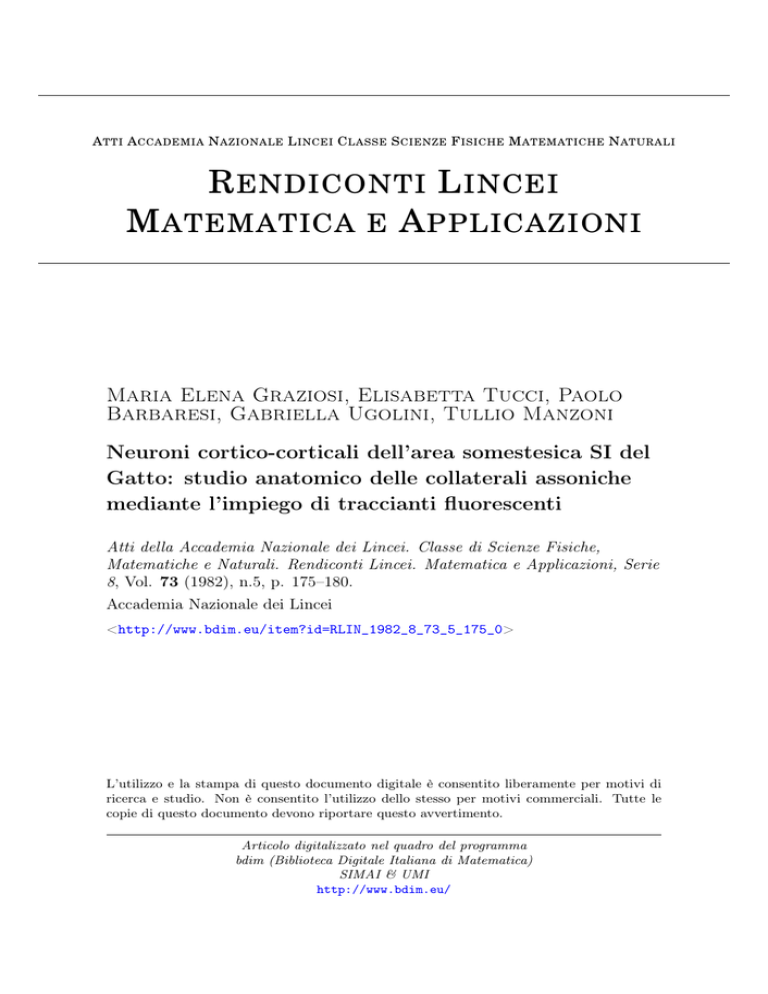 M. E. G raziosi e a lt r i , Neuroni cortico—corticali, ecc.