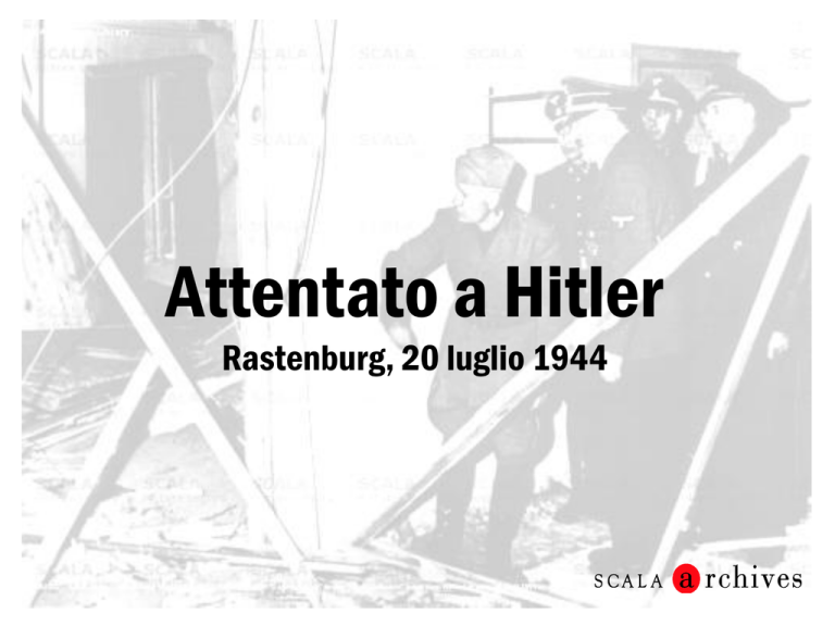 Attentato a Hitler Rastenburg, 20 luglio 1944 Claus Philipp Maria Schenk Graf von Stauffenberg (Jettingen-Scheppach, 15 novembre 1907 – Berlino, 21 luglio 1944) è stato un militare tedesco passato alla storia per il ruolo di primo piano che svolse nell'attentato del 20 luglio 1944 contro Adolf Hitler e nel successivo tentativo di colpo di stato. In occasione del film “Valkyrie” diretto da Bryan Singer e interpretato da Tom Cruise nel ruolo del colonnello tedesco, SCALA vi propone la storia dell’attentato attraverso le immagini storiche provenienti dagli archivi fotografici tedeschi. [Film in uscita in Italia il 27 febbraio 2009] Il colonello Claus Graf Schenk von Stauffenberg 1934. Cod. B007668 2 Sinistra: Matrimonio di Carl e Nina Stauffenbergs, 26 Settembre 1933. Cod.B007660. Destra: Claus Graf Schenk von Stauffenberg a cavallo. 1934. Cod. B007663 3 Nonostante non avesse mai pienamente aderito al nazismo, Claus von Stauffenberg combatté la Seconda Guerra Mondiale in Africa col grado di colonnello. In seguito all’esplosione di una mina il 7 marzo 1943 von Stauffenberg perse la mano destra, l'occhio sinistro e due dita della mano sinistra. Ciononostante continuò a prestare servizio nell’esercito ma con convinzioni sempre più anti-naziste. Egli si era infatti reso conto che il III Reich stava conducendo la Germania in un baratro dal quale difficilmente sarebbe riuscita a rialzarsi e che non c’era tempo da perdere: era necessario agire, per salvare la patria dalla distruzione. Claus Graf Schenk von Stauffenberg (a sinistra) con Albrecht Ritter Mertz von Quirnheim nel cortile dell'edificio del Alto Commando dell'Esercito Tedesco nella Bendlerstrasse. Cod. B007664 4 La congiura degli ufficiali tedeschi contro il Führer condusse all'attentato fissato per il 20 luglio 1944 nel cuore del quartier generale di Rastenburg, detto Wolfsschanze (Tana del lupo), luogo da cui Adolf Hitler seguì le operazioni della seconda guerra mondiale dal 24 giugno 1941 fino al 20 novembre 1944. Stauffenberg aveva infatti libero accesso alle riunioni dello stato maggiore, e fu proprio in una delle sale riunioni (la Lagebaracke) che egli entrò il 20 luglio 1944, nascondendo Adolf Hitler con membri dell'organizzazione Todt nel quartier generale nella sua valigetta un potente esplosivo del Führer "Wolfsschanze". 1941. Cod. B007673 a scoppio ritardato. Si sedette nelle vicinanze del Fuhrer, azionò il detonatore, posizionò la valigetta a terra e si allontanò dalla stanza. Alle 12:42 avvenne la terribile esplosione che devastò la stanza, seminando morte e terrore tra i presenti. Stauffenberg, convinto della riuscita del piano decollò per Berlino per completare l’operazione Walkiria con la proclamazione dello stato d’assedio ed il contestuale disarmo delle SS da parte della Wehrmacht, la quale, dopo aver riportato l’ordine, avrebbe consentito a Carl Goerdeler di assumere la guida della Germania. 5 Hitler invece, sconvolto e sotto shock, riuscì miracolosamente a salvarsi. Sinistra: Lastra di Hitler 19 - 24 Settembre 1944 (Seconda Guerra Mondiale Fronte orientale) Cod. B007632. Destra: Elettrocardiogramma di Hitler del 24/9/1944 (Seconda Guerra Mondiale Fronte orientale) (Diagnosi: "coronarie livello 4") Cod. B007633 6 Lo stesso giorno fu infatti in grado di ricevere il duce Benito Mussolini che vide di persona l’entità dell’attentato visitando il luogo dell’esplosione. Nel frattempo i contatti tra Rastenburg e Berlino vennero interrotti, facendo definitivamente fallire il piano di Stauffenberg. Adolf Hitler mostra a Benito Mussolini (a sinistra) la "Lagebaracke" distrutta nella "Wolfsschanze" dopo l'attentato del 20 Luglio 1944 . Cod. B007662 7 Rastenburg, Ketrzyn, FHQ Wolfsschanze. Uniformi strappate durante l'attentato 20.Luglio1944 (Seconda Guerra Mondiale Fronte orientale) figura intera in piedi. Cod. B007619 8 Hitler visita i feriti, Fine Luglio - Fine Settembre 1944 (Seconda Guerra Mondiale Fronte orientale) (Hitler in uniforme, von Puttkamer sdraiato a letto) Cod. B007624 9 Aiutante capo di Hitler Rudolf Schmundt. 1944/10. Morto in seguito all'attentato del 20 Luglio 1944, qui sul letto di morte al lazaretto a Rastenburg. Cod. B007669 10 Rastenburg, Ketrzyn, FHQ Wolfsschanze. Briefing 20Luglio -Metà Agosto 1944 (Seconda Guerra Mondiale Fronte orientale) Foto di gruppo (Di Profilo von Below Hitler in uniforme con cappello) . Cod. B007621 11 Immediatamente i congiurato vennero identificati e arrestati dalle SS e dalla Gestapo. Vennero torturati e fucilati la notte stessa. Per placare la sete di vendetta del Führer, non solo i congiurati ma tutti i membri delle famiglie dei colpevoli dovevano essere eliminati. I parenti e anche chi aveva solo la disgrazia di condividere il nome dei congiurati vennero arrestati, processati e giustiziati. I processi si svolgevano dinanzi al Volksgerichtshof, il tribunale militare, presieduto da Ronald Freisler, fervente nazista, il quale dopo pochi minuti, emetteva la sentenza di condanna. Berthold Graf Schenk von Stauffenberg, fratello di Claus Graf Schenk von Stauffenberg, imputato davanti al tribunale del popolo nel 1944. Cod. B007659 12 "la cosa importante è dimostrare davanti al mondo e davanti alla storia che il movimento di resistenza tedesco è esistito e che ha osato passare all'azione, a prezzo della vita". Claus von Stauffenberg Lapide commemorativa nella Stauffenbergstraße con i nomi dei giustiziati, morti per la patria il 20 Luglio 1944. Cod. B007670 13 Scala Picture Library Via Chiantigiana 62 / I 50012 Bagno a Ripoli (Firenze) tel: +390556233200/216/257/265 Fax +39055641124 E-mail: [email protected] www.scalarchives.com