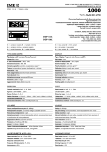 PROTEZIONE PROTECTION Relè di tensione, rete monofase 2 Moduli Voltage relay, single-phase network 2 Module Allarme di minima o massima, selezionabile in campo Ingresso diretto fino a 400V Soglia, isteresi e tempo di intervento regolabili Sicurezza positiva o negativa selezionabile in campo Inibizione intervento all'accensione Possibilità di memorizzazione intervento Min or max alarm, selectable on field Direct input up to 400V Adjustable set point, hysteresis and delay Field selectable negative or positive security (fail safe) Intervention inhibition when turning on Ability to store intervention RM2U Segnalazione intervenuto allarme Alarm intervention Selezione soglia intervento Setting intervention threshold Regolazione isteresi Setting hysteresis Selezione ritardo intervento Setting intervention delay NT549 09 - 2016 5a Ed. pag.1/3 Segnalazione apparecchio alimentato Monitoring fed meter Tipo di allarme: Min / Max Type of alarm: Min / Max Selettore ripristino: Store off ripristino automatico Store on memorizazione intervento Reset setting: Store off automatic reset Store on intervention storage Selettore stato relè uscita: Nd (norm. diseccitato) sicurezza negativa Ne (norm. eccitato) sicurezza positiva Switch for state of output relay: Nd (norm. de-energised) negative security Ne (norm. energised) positive security Inibizione intervento all’accensione Intervention inhibit when switching on CODICI DI ORDINAZIONE ORDERING CODE AL. AUSILIARIA AUX. SUPPLY INGRESSO INPUT RM2UM1A2 115V ca /ac 100V RM2UM1A3 230V ca /ac 100V RM2UM1A4 240V ca /ac 100V RM2UM1AH 20 - 150V cc /dc + 48V ca / ac 100V RM2UM1AL 150 - 250V cc /dc 100V RM2UM1F2 115V ca /ac 250V RM2UM1F3 230V ca /ac 250V RM2UM1F4 240V ca /ac 250V RM2UM1FH 20 - 150V cc /dc + 48V ca / ac 250V RM2UM1FL 150 - 250V cc /dc 250V RM2UM1K2 115V ca /ac 400V RM2UM1K3 230V ca /ac 400V RM2UM1K4 240V ca /ac 400V RM2UM1KH 20 - 150V cc /dc + 48V ca / ac 400V RM2UM1KL 150 - 250V cc /dc 400V INPUT Tensione nominale Un: 100 - 250 - 400V Rated voltage Un: 100 - 250 - 400V Misura: valor medio, taratura rapportata al valore efficace Measure: average value, calibration according RMS value Altri valori a richiesta Forma d'onda: sinusoidale, fattore di forma 1,11 Frequenza nominale fn: 50Hz Frequenza limite di funzionamento: 47...63Hz Autoconsumo: ≤ 0,2VA Sovraccarico permanente: 1,2Un PREDISPOSIZIONE Other values on request Waveform: sinusoidal, form factor 1,11 Rated frequency fn: 50Hz Working frequency: 47...63Hz Rated burden: ≤ 0,2VA Continuous overload: 1,2Un SETTING UP Tipo: allarme di minima o massima, selezionabile con dip switch Type: min or max alarm, selectable by dip switch Ripetibilità: ± 1% Repeatability: ± 1% Soglia di intervento: regolabile con continuità a mezzo trimmer Campo predisposizione intervento: 10…120%Un Tempo di intervento (t): regolabile con continuità a mezzo trimmer Campo regolazione t: 0,1…10 secondi Inibizione intervento all'accensione (ts): selezionabile tramite dip switch Campo regolazione ts: 0 - 3 - 6 - 9 secondi Isteresi: regolabile con continuità a mezzo trimmer Campo regolazione isteresi: 5…50% del valore di soglia Ripristino: automatico o manuale, selezionabile tramite dip switch SEGNALAZIONE Set point: continuously adjustable by trimmer Adjustable range: 10…120%Un Intervention time (t): continuously adjustable by trimmer Adjustable range t: 0,1…10 seconds Intervention inhibit when switching on (ts): selectable by dip switch Adjustable range ts: 0 - 3 - 6 - 9 seconds Hysteresis: continuously adjustable by trimmer Adjustable range: 5…50% of set point Reset: automatic or manual, selectable by dip switch SIGNALING Strumento alimentato: LED verde "ON" Power ON: green LED "ON" USCITA OUTPUT Intervento allarme: LED rosso "TRIP" + commutazione relè Alarm intervention: red LED "TRIP" + relay switchin Relè: 1 contatto di scambio SPDT Relay: 1 SPDT contact positiva/incondizionata (relè normalmente eccitato): selezionabile tramite dip (normally energised relay): selectable by dip switch Portata contatti: 5A 250Vca cosϕ 1 - 3A 250Vca cosϕ 0,4 - 5A 30Vcc Sicurezza negativa/condizionata (relè normalmente diseccitato) oppure switch ALIMENTAZIONE AUSILIARIA Contact range: 5A 250Vac cosϕ 1 - 3A 250Vac cosϕ 0,4 - 5A 30Vdc Negative security (normally de-energised relay) or positive security fail safe AUXILIARY SUPPLY Valore nominale Uaux ca: 48 - 115 – 230 – 240V Rated value Uaux ac: 48 - 115 – 230 – 240V Frequenza nominale faux: 50Hz Rated frequency faux: 50Hz Altri valori a richiesta Variazione ammessa: 0,9…1,1Uaux - 40...60V (Uaux 48V) Other values on request Tolerance: 0,9…1,1Uaux - 40...60V (Uaux 48V) NT549 09 - 2016 5a Ed. pag.2/3 INGRESSO Tolerance: 47…63Hz La I.M.E. S.p.A. si riserva in qualsiasi momento, di modificare le caratteristiche tecniche senza darne preavviso. / I.M.E. S.p.A. reserves the right, to modify the technical characteristics without notice. Variazione ammessa: 47…63Hz Rated burden: ≤ 2,5VA Autoconsumo: ≤ 2,5VA Rated value Uaux dc: 20…150Vdc – 150…250Vdc Valore nominale Uaux cc: 20…150Vcc – 150…250Vcc Rated burden: ≤ 1W Autoconsumo: ≤ 1W Protected against incorrect polarity Protezione contro l’inversione di polarità ISOLAMENTO (EN 60439-1, EN 60010-1) Categoria di installazione: III Installation category: III (EN 60439-1, EN 60010-1) Pollution: degree: 2 Grado di inquinamento: 2 Tensione di riferimento per l’isolamento: 450V Prova di tensione a impulso 5kV 1,2/50μs 0,5J Circuiti considerati: ingresso, uscita relé, alimentazione ausiliaria Prova a tensione alternata 2,5kV valore efficace 50Hz/1 min Circuiti considerati: ingresso, uscita relé, almentazione ausiliaria Prova a tensione alternata 4kV valore efficace 50Hz/1 min Circuiti considerati: tutti i circuiti e massa COMPATIBILITA’ ELETTROMAGNETICA Insulation reference voltage: 450V Impulse voltage test 5kV 1,2/50μs 0,5J Considered circuits: input, relay output, aux. supply A.C. volt