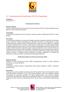 Genetica di virus e batteri Genetica batterica • Trasformazione : l’ uccisione di una cellula non distrugge il DNA che mantiene le sue proprietà, nel caso penetri in una nuova cellula batterica. • Coniugazione : due cellule batteriche entrano in contatto tramite una struttura detta sex pilus che permette il trasferimento di materiale genetico (plasmidi). • Trasduzione (conversione fagica) : il trasferimento genetico è mediato da batteriofagi, sono virus capaci di infettare i batteri, può essere ristretta o generalizzata. 2 CONIUGAZIONE • Il plasmide può contenere anche geni che inducono l’antibiotico resistenza. • Donatori HFR: si tratta di batteri che hanno il plasmide integrato (ma possono revertire), fanno una copia del loro cromosoma che viene passato al batterio ricevente, comunque in questo passaggio che si realizza in poco tempo il fattore F non viene trasferito per cui i riceventi rimangono F-. Comunque le cellule riceventi acquisiscono altre caratteristiche veicolate dal plasmide. • Il fattore R responsabile di questa trasmissione è trasferibile per tutti gli enterobatteri. Questo plasmide contiene sia geni che codificano per la resistenza che geni che codificano per il sex pilus. (fattore R e fattore TF transfer factor). • I plasmidi sono elementi trasmissibili che possono contenere anche informazioni che riguardano il metabolismo e l’assunzione delle sostanze. 3 CONIUGAZIONE • La coniugazione avviene tramite una particolare struttura detta “pilus” attraverso il quale c’è un passaggio di porzioni di DNA. • La differenza tra cellula donatrice e ricevente è nella presenza di un plasmide (DNA circolare extracromosomiale) che è indipendente nella replicazione rispetto al DNA cromosomico. Il plasmide contiene l’informazione genetica per codificare il plasmide. • Il plasmide può anche essere integrato nel DNA cromosomale (episoma). • Le cellule che hanno una copia del fattore F (plasmide) sono dette F + , quelle che non hanno il plasmide F-. • Il donatore fa una copia del fattore F per trasferirlo in batteri che non l’hanno. • Esistono numerosi plasmidi che possono rimanere all’interno della cellula batterica in assenza del fattore F. 4 Cellula Hfr • Se il plasmide F si integra nel cromosoma della cellula batterica • Il plasmide può trasferire una porzione del cromosoma batterico da una cellula all’altra LABORATORIO DI MICROBIOLOGIA DFC Plasmidi contengono i geni che possono inattivare un antibiotico (per esempio il gene della beta lattamasi comunemente si diffondono attraverso plasmide e fornisce la resistenza agli antibiotici B-lattamici, come la penicillina Plasmidi R • Le farmaco-resistenze che si instaurano in seguito a modificazioni genetiche possono essere distinte in: • CROMOSOMICHE : dovute a mutazioni spontanee – bassa frequenza • EXTRACROMOSOMICHE:co ntrollate da Plasmidi trasmissibili da un organismo all’altro- elevata frequenza Trasformazione • Un batterio cattura dall’ambiente extracellulare un filamento di DNA appartenuto ad un altro batterio morto • Si modifica il patrimonio genetico LABORATORIO DI MICROBIOLOGIA DFC TRASDUZIONE • Materiale genetico può essere trasferito da batterio a batterio mediante batteriofagi o virus. • La trasduzione può essere generalizzata quando il batterio infettato viene lisato, parti del DNA batterico vengono inglobate dai fagi neosintetizzati, in una successiva infezione caratteristiche del DNA del batterio possono comparire in altri batteri infettati. • La trasduzione di tipo ristretto prevede l’inclusione del DNA virale in quello cromosomico, (ciclo lisogeno), in un secondo tempo si ha la lisi del batterio, con fuoriuscita dei fagi maturi che conterrano all’interno del loro Dna materiale genetico batterico. • La conversione fagica è un tipo di particolare trasduzione che comporta l’acquisizione di nuove caratteristiche da parte di una specie batterica, C. diphteriae dopo infezione con fago beta produce tossina difterica. (ce FAGO BETA tossina botulinica in ceppi di C. botulinum) 15