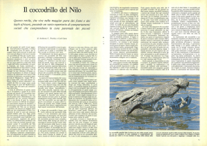 Nome comune: COCCODRILLO Famiglia: Crocodylidae Ordine: Crocodilia Classe: Reptilia CARATTERISTICHE: I coccodrilli sono anfibi e passano molto tempo in acqua, dove nuotano muovendosi con colpi ritmici della coda; quest'ultima a volte viene usata per catturare la preda, che viene spinta in acque più profonde dove può essere divorata facilmente. Coccodrillo d’acqua dolce (Vellani) Il coccodrillo del Nilo è un rettile dalle dimensioni notevoli, infatti, può raggiungere i 5-6 metri di lunghezza, e ben 900 Kg di peso, anche se normalmente il suo peso si aggira sui 400 Kg. Il dorso è costituito da una pelle estremamente dura dai colori verdastri marroni, mentre il suo ventre è più morbido e chiaro. A differenza d’altri rettili, il coccodrillo non muta la sua pelle che al contrario segue costantemente la crescita dell’animale. Il coccodrillo è estremamente adattato alla vita acquatica: il corpo siluriforme facilita il nuoto, la robusta coda funziona da motore e gli occhi e le narici sono posti alla sommità della testa così da poter vedere e respirare senza problemi anche se il suo corpo è quasi completamente sommerso in acqua. I denti, da 30 a 40 in ogni mascella, sono conici, tutti uguali, inseriti in alveoli ossei in modo tale che, quando la bocca è chiusa, quelli dell'arcata superiore si incastrano in quelli dell'arcata inferiore. I muscoli che chiudono le mascelle dei coccodrilli sono così potenti che essi possono spezzare le ossa di piccoli animali stringendole tra le fauci; invece, i muscoli che le aprono sono così deboli che la bocca dei coccodrilli può essere tenuta chiusa con le mani. I coccodrilli sono i rettili con più sviluppate capacità vocali, in quanto producono suoni che vanno da tranquilli sibili a spaventosi ruggiti e muggiti, solitamente durante la stagione degli accoppiamenti. Sulla terraferma i coccodrilli si muovono strisciando sull'addome, ma possono anche correre e camminare come i mammiferi, stando sulle quattro zampe. VITA ED ABITUDINI: Il coccodrillo vive in gruppi formati da poche decine a centinaia d’individui. I suoi aspetti comportamentali più interessanti riguardano l’accoppiamento e le abitudini alimentari. Il maschio di questo rettile si esibisce in elaborati corteggiamenti e solo dopo aver conquistato l’attenzione d’alcune femmine, si avvicina loro e procede con l’accoppiamento che di solito si verifica lontano da occhi indiscreti, sul fondo del fiume. Dopo due mesi la femmina scava un nido in prossimità dell’acqua, e vi depone 40-60 uova che poi rapidamente ricopre di terra. Il suo compito non è finito, infatti, questa vera madre modello, rimane nei paraggi a sorvegliare il nido per tutto il periodo d’incubazione che dura dai due ai tre mesi. Nel momento che i piccoli iniziano ad uscire dalle uova, emettono un richiamo che attira l’attenzione della madre che velocemente prende i suoi piccoli nelle potenti, ma in questo caso dolcissime, fauci e li porta a piccoli gruppi in un anfratto del fiume dove saranno al sicuro. Le cure parentali di queste madri che in certi casi rimangono vicino ai propri piccoli per due anni, sono veramente rare nel mondo dei rettili. Dopo due anni diventano indipendenti anche se dovranno aspettare altri 6 –10 anni prima di raggiungere la maturità sessuale. I piccoli in genere mangiano invertebrati acquatici e insetti, per poi, da adolescenti, passare a piccoli vertebrati come pesci, anfibi e altri rettili. Una volta divenuti adulti si può dire che mangiano veramente di tutto, da piccoli animali come pesci e rettili a grandi prede come antilopi, babbuini, bufali, ippopotami e tutto ciò che riescono a predare. In certi casi esiste una forma di cooperazione durante l’alimentazione. Infatti, non è raro vedere numerosi coccodrilli porsi lungo un torrente per impedire il passaggio dei pesci che successivamente pescano, come una rete vivente, o ancora in piccoli gruppi, dove ognuno ha un preciso compito, collaborare allo smembramento di una preda. In alcune specie la madre porta i neonati in bocca in prossimità dell'acqua. Le cure parentali che si osservano nei coccodrilli sono un fatto unico nei rettili, a ulteriore conferma dell'affinità di questo ordine con gli uccelli. Il coccodrillo del Nilo è uno dei coccodrilli più diffusi. Abita le zone umide, come fiumi o laghi, di gran parte dell’Africa compresa l’Isola di Madagascar. Assente solo nelle zone settentrionali, nelle regioni sahariane e nella punta sud del Sud Africa. Una volta presente lungo tutto il percorso del Nilo, da cui il nome, ora, è presente solo nel tratto più meridionale di questo fiume. Questo coccodrillo era venerato da alcune antiche sette egizie e ne sono stati ritrovati alcuni esemplari mummificati nelle tombe. NON TUTTI SANNO CHE: In alcune parti del mondo le uova di coccodrillo sono consumate come cibo. La pelle di questi animali ha un grande valore commerciale nell'industria della pelletteria, mentre l'estratto di alcune loro ghiandole serve nella fabbricazione dei profumi. A causa dell'eccessiva pressione venatoria molti coccodrilli, compreso quello americano e il coccodrillo del Nilo, sono considerati specie in pericolo di estinzione.