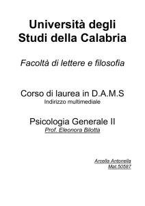 Riconoscimento e recupero dell’informazione per bioinformatica Reti Neurali Manuele Bicego Corso di Laurea in Bioinformatica Dipartimento di Informatica - Università di Verona Reti Neurali Sistema artificiale di elaborazione dell’informazione che si pone come obiettivo l’emulazione del sistema nervoso animale Il sistema nervoso animale presenta numerose caratteristiche che sono attraenti dal punto di vista di un sistema di calcolo: è robusto e resistente ai guasti: ogni giorno muoiono alcuni neuroni senza che le prestazioni complessive subiscano un peggioramento sostanziale; è flessibile: si adatta alle situazioni nuove imparando; permette una computazione altamente parallela; è piccolo, compatto e dissipa poca potenza. 2 Reti Neurali può lavorare anche con informazione approssimata: l’informazione rappresentata dal segnale non è descritta in maniera esatta incompleta: il segnale puó non arrivare in parte affetta da errore: se i segnali sono affetti da errore il sistema deve essere in grado di rigenerarlo 3 Schema di base Rete Neurale: struttura complessa composta da tante unità elementari di calcolo, chiamate neuroni i neuroni sono collegati tra di loro tramite connessioni pesate, dette sinapsi Ci sono dei neuroni che sono connessi all’ambiente esterno (input o output) 4 Ogni neurone possiede: un insieme di ingressi provenienti dagli altri neuroni un'uscita verso gli altri neuroni un livello di attivazione (neurone “acceso” o “spento”) un sistema per calcolare il livello di attivazione al tempo successivo Le diverse reti neurali differiscono per: tipologia di neuroni tipologia di connessioni tra i neuroni 5 Il Neurone: modello matematico input Sommatore Output Pesi Funzione di attivazione 6 Il neurone: componenti Input Ii: sono i segnali in ingresso al neurone: input del problema uscite di altri neuroni Pesi o Sinapsi wi: ogni input viene pesato tramite il peso della connessione; fornisce una misura di quanto “conta” tale input nel neurone Sommatore Σ: modulo che effettua la somma pesata degli ingressi 7 Funzione di attivazione g: funzione che determina l’output del neurone sulla base dell’uscita del sommatore. Riassumendo, l’output O del neurone si ottiene come 8 Il Percettrone Nel caso più semplice (e più biologicamente plausibile) la funzione di attivazione è una funzione a soglia θ: se la somma pesata degli input è maggiore di una certa soglia t, allora il neurone “si accende” (output 1), altrimenti no. dove θ è la funzione di Heaviside 9 Questo semplice neurone si chiama Percettrone (Perceptron), introdotto da Rosenblatt nel 1962. Spesso si include la soglia nel modello del neurone, aggiungendo un ingresso fittizio: il valore su tale ingresso è fissato a 1 il peso della connessione è dato da -t; -t I0=1 10 Altre funzioni di attivazione funzione logistica: funzione tangente iperbolica: Queste funzioni sono interessanti in quanto permettono al neurone di avere un output continuo, che ne consente una interpretazione in chiave probabilistica. 11 Esempio: Neurone per riconoscere una stringa di bit Obiettivo: riconoscere una stringa binaria b = b1…bc. Utilizzo un neurone con c input: l’uscita sará 1 se il pattern presentato corrisponde al pattern di riferimento b, 0 altrimenti. I1 w1 I2 w2 wc Ic -t=w0 12 Come si costruisce questa semplice rete? (come setto i pesi sulle connessioni di ingresso?) Il peso di ogni connessione wi viene fissato a Definiamo m come Avremo che 13 Esempio: b=10110, m=3; la rete diventa: I1 I2 Proviamo a dare in input alla rete I=10110=b 1 -1 1 I3 I4 I5 1 -1 -t=w0 Proviamo ora a dare un input sbagliato I=11110 14 Scegliendo come soglia m-1, avremo che: Utilizzando come funzione di attivazione la funzione di Heaviside, otteniamo esattamente il classificatore cercato 15 Considerazione: posso approssimare con una rete neurale qualsiasi funzione booleana: Data una funzione booleana generica, posso costruire i neuroni che riconoscono i pattern che danno vero (quelli con la freccetta), mettendoli quindi in OR tra di loro. I1 I2 1 1 Funzione OR degli ingressi I1 … In 1 1 In 1 16 La struttura delle reti L’aggregazione di più neuroni a formare una rete provoca un’esplosione di complessità, in quanto si possono formare topologie complesse in cui sono presenti cicli. Il modello più semplice, tuttavia, non prevede cicli: l’informazione passa dall’input all’output (reti feedforward) In caso in cui siano presenti cicli, si parlerá di reti ricorrenti. 17 Le reti feed forward Topologia più semplice: non prevede cicli. La rete è organizzata a livelli: ogni neurone di un livello riceve input solo dai neuroni del livello precedente; propaga gli output solamente verso i neuroni dei livelli successivi I livelli compresi fra gli input e l'output vengono chiamati livelli nascosti (in questo caso 2). 18 In questo tipo di reti non sono possibili autocollegamenti o connessioni con i neuroni del proprio livello. Ogni neurone ha quindi la funzione di propagare il segnale attraverso la rete, con un flusso di informazione dagli ingressi verso le uscite. Una conseguenza immediata di ciò è rappresentata dal fatto che la rete risponde sempre nello stesso modo se sollecitata con gli stessi input. Nel caso in cui le unità elementari siano i percettroni, prenderà il nome di Percettrone Multilivello (o MLP, Multilayer Perceptron). 19 Capacità espressive di una rete Un percettrone identifica un iperpiano (è come un discriminante lineare) I2 Regione1 Regione 0 I1 20 Se metto assieme più neuroni (con una funzione AND) posso caratterizzare una regione chiusa I2 I1 I2 1 1 1 Regione 1 n-1 In 1 I1 Funzione AND degli ingressi I1 … In 21 Data una regione R da delimitare nello spazio degli input, più sono i percettroni, più precisa sarà l'approssimazione che la rete produrrà. 4 neuroni 6 neuroni 22 L’addestramento della rete neurale Una volta stabilite tutte le caratteristiche della rete neurale, quali topologia, numero e ti