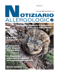Poliambulatorio Privato San Michele Reggio Emilia – www.labsanmichelel.it TEST ISAC (Immuno Solid-phase Allergen Chip) CON IL TEST ISAC SCOPRI LE VERE ALLERGIE: Un semplice prelievo di sangue per più di 100 allergeni Una patologia allergica da ipersensibilità del sistema immune può essere responsabile di sintomi sofferti come: congiuntivite (prurito e lacrimazione agli occhi) rinite (rinorrea continua,naso chiuso, prurito nasale) asma bronchiale (Tosse secca , dispnea, broncospasmo) orticaria (ponfi, angioedema) dermatite atopica (prurito cutaneo, eritema, lichenificazione,) allergia alimentare gastroenterica (nausea, vomito, diarrea, gonfiore) Un'allergia si verifica quando, nei soggetti geneticamente predisposti, il sistema immunitario innesca una esagerata reazione a sostanze normalmente inoffensive. Il dosaggio delle IgE specifiche nel siero permette di identificare la sostanza allergenica a cui si è sensibilizzati. Per questo c’è il test ISAC che, sfruttando la proteomica, è in grado di identificare un vasto numero di molecole allergeniche. Grazie alle innovative nanotecnologie con BioChip-microarray, con un prelievo di siero del paziente si possono determinare le IgE contro oltre 100 molecole che possono essere causa di allergia nell’adulto e nel bambino. È un test affidabile, riproducibile e standardizzato. La determinazione comprende, fra gli altri, le molecole principali di numerosi allergeni come: piante: pollini di graminacee, parietaria, alberi ecc animali domestici: cane e gatto, ecc insetti: imenotteri, acari, ecc. muffe: alternaria, cladosporium, aspergillus alimenti: latte, uovo, pesce, grano, soia, frutta secca (arachidi, noci, nocciola, anacardo, …), ecc. panallergeni: proteine allergeniche cross-reagenti presenti in diversi tipi di verdura e frutta sulla buccia e nella polpa lattice VANTAGGI OFFERTI DA ISAC RISPETTO AD ALTRI TEST Mentre gli altri dosaggi delle IgE usano estratti contenenti numerose proteine (per es. da pelo di animale, polline, acari, alimento, lattice), ISAC® utilizza allergeni molecolari naturali altamente purificati o ricombinanti. Il test ISAC® permette un’accurata determinazione delle specifiche componenti proteiche allergene-scatenanti consentendo così di determinare il profilo individuale della sensibilizzazione del paziente allergico ed evidenziando anche le eventuali reazioni crociate tra alimenti o sensibilizzazioni multiple. Esempio: pazienti sensibili al polline di betulla, possono non tollerare alimenti che contengono proteine simili a quelle del polline di questo albero, come mele, carote, sedano, ecc. Questa cross-sensibilizzazione fra le componenti provenienti da differenti sorgenti può essere rivelata con una indagine sola: infatti in base al risultato dell’ISAC®, l’allergologo sarà in grado di stabilire con assoluta precisione l’allergene o gli allergeni responsabili dei sintomi. La determinazione del profilo allergenico con ISAC® inoltre è molto utile per la scelta della più appropriata immunoterapia specifica (vaccino antiallergico) e consente di suggerire raccomandazioni per applicare provvedimenti preventivi ed eliminare o ridurre la sintomatologia allergica. Per maggiori informazioni o per effettuare un TEST ISAC contattare: Poliambulatorio Privato San Michele Reggio Emilia - Viale Monte San Michele 5/d 42121 Reggio Nell’Emilia – Telefono: 0522.455614 - www.labsanmichelel.it Laboratorio Analisi Cliniche | Poliambulatorio Specialistico | Medicina del Lavoro Libero Accesso | Orario Continuato Lunedì – Venerdì 7.30 – 19.00 | Sabato: 7.30 – 13.00