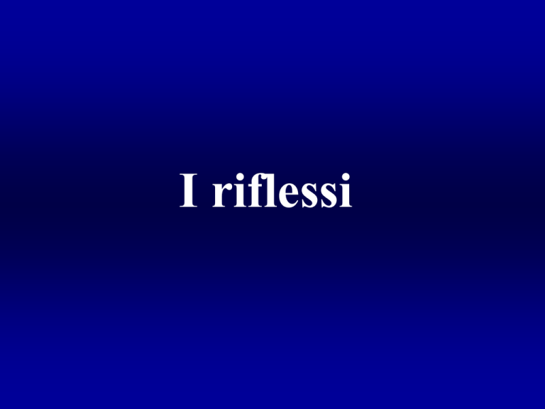 I riflessi In cosa consistono le azioni riflesse? Rappresentano il meccanismo più semplice con cui il sistema nervoso può dare una risposta pronta e adeguata a determinati stimoli Caratteristiche fondamentali delle azioni riflesse: • Finalismo preciso (utilità) • Automatismo CLASSI DI RIFLESSI: • Incondizionati (o Innati): sono geneticamente preordinati • Condizionati richiedono: 1. Un’esperienza precedente dell’evento 2. Il riconoscimento del significato dello stimolo 3. La memorizzazione dello stimolo Riflessi condizionati Il cane di Pavlov 1 2 La sua instaurazione richiede: • Un’esperienza precedente • Il riconoscimento del significato dello stimolo • La memorizzazione dello stimolo 3 4 Gli archi riflessi Arco riflesso monosinaptico Gli A R monosinaptici sono principalmente adibiti al controllo dei movimenti Archi riflessi polisinaptici Proprietà generali dei riflessi 1) La soglia del riflesso: è l’intensità minima che lo stimolo deve avere per evocare una risposta riflessa 2) Il tempo riflesso: è l’intervallo che intercorre tra la caduta dello stimolo e la comparsa della risposta riflessa Esso comprende: a) Il tempo di conduzione degli impulsi nelle fibre nervose b) Il tempo riflesso centrale, dato dal numero di connessioni sinaptiche 3) La sommazione riflessa: è una diretta conseguenza della sommazione temporale e spaziale dei pps 4) L’inibizione riflessa: consiste nell’arresto di attività dell’effettore (qualora essa sia in atto). Comporta la presenza di uno o più interneuroni inibitori e si manifesta negli archi riflessi inibitori Tipi di inibizione riflessa 1) Inibizione postsinaptica (è inibita la genesi di PPSE): si possono distinguere a) convergenza sullo stesso neurone efferente di due vie nervose, una eccitatoria e l’altra inibitoria b) divergenza di una stessa via nervosa afferente con effetti opposti su neuroni efferenti distinti La via afferente inibisce direttamente la via efferente (tramite interneuroni) Interneuroni inibitori 2) Inibizione presinaptica: è inibita la liberazione di neurotrasmettitore (eccitatorio) La via afferente A inibisce la via afferente B (tramite interneuroni) I riflessi spinali propriocettivi Locazione dei propriocettori: • • • MUSCOLI TENDINI ARTICOLAZIONI Tramite fibre sensitive primarie inviano segnali inerenti a: • • • • Stato di tensione Stato di allungamento Grado di flessione Grado di allungamento di muscoli e tendini delle articolazioni Tipi di propriocettori: • • • • Fusi neuromuscolari Organi tendinei del Golgi Corpuscoli di Pacini nelle capsule articolari Organi di Ruffini Conferiscono al soggetto la sensibilità cinestesica. Importanti nella postura e nell’esecuzione dei movimenti volontari La localizzazione dei fusi neuromuscolari e degli organi tendinei del Golgi è diversa Fibre intrafusali Fibre extrafusali I fusi neuromuscolari sono localizzati in parallelo con le normali fibre muscolari. Qui essi vanno incontro alle stesse variazioni di lunghezza del resto del muscolo. La localizzazione dei fusi neuromuscolari e degli organi tendinei del Golgi è diversa neurone afferente muscolo tendine Gli organi tendinei del Golgi sono localizzati a livello dei tendini dei muscoli, in serie con le fibre muscolari. Qui essi vengono stirati quando il muscolo si contrae. Pertanto essi risentono della forza con cui il muscolo si contrae. organo tendineo del Golgi organo tendineo del Golgi I fusi neuromuscolari sono disposti “in parallelo” e gli organi tendinei “in serie” alle fibre muscolari ordinarie I fusi neuromuscolari contengono: Fibre muscolari intrafusali (2 a sacca e 5 a catena di nuclei) in parallelo con fibre extafusali (normali fibrocellule muscolari); Dalle fibre intrafusali a sacca si dipartono fibre nervose afferenti sensibili alla velocità di stiramento del muscolo (fibre Ia); Dalle fibre intrafusali a catena si dipartono fibre nervose afferenti (fibre Ia e II) sensibili al grado di allungamento del muscolo Assone di un Fibre afferenti a motoneurone Fibre muscolari extrafusali Assoni di neuroni g primarie grandi (Ia) originano sia dalle fibre intrafusali a sacco che a catena di nuclei. Fibre afferenti secondarie più piccole (II) originano solo dalle fibre intrafusali a catena di nuclei. Fibre muscolari Fibra a catena Spazio intrafusali di nuclei sacca catena Fibra a sacca Capsula del fuso subcapsulare di nuclei Le fibre nervose afferenti dalle fibre intrafusali a sacca di nuclei (Ia) segnalano la velocità di allungamento. Esse, come i corpuscoli del Pacini si adattano velocemente dopo lo stiramento. Quindi tali fibre nervose danno una risposta fasica durante lo stiramento e diventano (quasi) silenti quando la posizione è costante. velocità pot. d’azione lungh. del muscolo Ia stiramento passivo Tempo Entrambe le fibre nervose afferenti (Ia e II) dalle fibre intrafusali a catena di nuclei scaricano ad una frequenza proporzionale alla lunghezza (grado di stiramento) della fibra. lunghezza pot. d’azione lungh. del muscolo Ia II stiramento passivo Tempo Il sistema nervoso centrale controlla direttamente la sensibilità dei fusi neuromuscolari tramite il sistema gamma efferente Il sistema gamma efferente (che ha origine dalla sostanza reticolare bulbo pontina) causa la contrazione delle estremità delle fibre intrafusali. Ciò genera lo stiramento della parte centrale dove sono localizzate le fibre afferenti. Il sistema gamma efferente, aumentando o abbassando la sensibilità delle fibre intrafusali, esegue su di esse un’azione di controllo. Comparazione delle risposte del fuso durante una contrazione attiva in assenza e in presenza del sistema gamma efferente Motoneurone alfa Quando c’è una contrazione attiva causata dai motoneuroni alfa, ma non dai gamma, le fibre extrafusali si accorciano, quelle intrafusali no, e il fuso viene silenziato Quando c’è una contrazione attiva causata da motoneuroni alfa e gamma, sia le fibre extrafusali che quelle