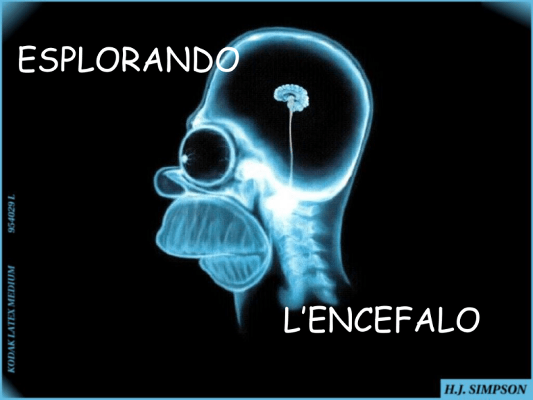 ESPLORANDO L’ENCEFALO Il giorno venerdì 28 gennaio ci siamo recati al laboratorio di scienze per sezionare l’encefalo ed individuarne le parti che lo compongo. Abbiamo individuato: Il cervello Il cervelletto Il talamo L’ipotalamo L’ipofisi Il midollo spinale Le meningi Il cervello è l’organo che regola le funzioni dell’organismo, sia motorie che intellettive. È costituito da sostanza bianca (internamente) ed anche da sostanza grigia (nel mezzo) e dalla corteccia motoria (esternamente). Questo organo si divide in cervello destro e cervello sinistro. Le due parti ossno collegare fra loro dal corpo calloso. la funzione principale del cervelletto è di controllare le funzioni motorie del corpo. Esternamente sembra che il cervelletto sia composto solamente da sostanza bianca, ma sezionandolo, abbiamo potuto osservare che è presete la sostanza grigia all’interno. Il talamo è una struttura che si trova all’interno del cervello. Si tratta di un insieme di sostanza grigia che smista tutte le vie neuronali. L’ipotalamo è un’area dell’encefalo che si occupa del controllo degli ormoni ed anche del controllo della temperatura corporea. Le sue funzioni sono anche associate alle sensazioni dell’uomo, al sesso, alla fame e alla sete. Nell’uomo e nella donna l’ipotalamo regola il flusso di ormoni nel sangue stimolando L’ipofisi è una ghiandola localizzata alla base del cranio. È controllata dall’ipotalamo e si divide in adenoipofisi e neuroipofisi. Questa ghiandola, stimolata dall’ipotalamo, produce molti ormoni che sono alla base delle funzioni dell’organismo come Dal cervello parte il midollo spinale che è anch’esso suddiviso in sostanza bianca e sostanza grigia. Sezionandolo orizziontalmente abbiamo potuto notare che all’interno la sostanza grigia forma quasi una forma a farfalla. Sezionandolo trasversalmente abbiamo ulteriormente osservato la presenza Le meningi sono delle membrane che ricoprono il cervello, nutrendolo e proteggendolo. In laboratorio le abbiamo separate dal cervello per poterle vedere meglio. GRAZIE PER L’ATTENZIONE! Sara Fraolini Alessandro Pini Giulia Quaglietti Benedetta Salterini Michele Sistoni Pepparoni