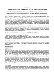 doczz Entrare Registrazione Esplorare × storia dell`Hip Hop.rtf download Reclamo Commenti Transcript storia dell`Hip Hop.rtf LIBERA UNIVERSITÁ DI DANZA E TEATRO - MANTOVA – LIBERA UNIVERSITA’ DI DANZA E TEATRO MANTOVA Piazza Togliatti, 13 46047 Porto Mantovano (Mantova) Tel. / Fax: 0376-396824 Cell.: 328-3374518 Sito Internet: www.univeristadidanza.it E-mail: [email protected] Indice Introduzione pag. 3 Riferimento Socio-culturale pag. 5 Nascita del Movimento Hip Hop pag. 12 I Graffiti e l’Hip Hop pag. 21 Anima musicale dell’Hip Hop pag. 24 Principi dell’Hip hop pag. 38 Hip Hop e Mass-media pag. 47 Diffusione del movimento Hip Hop in Italia pag. 50 La danza Hip Hop pag. 57 Conclusioni pag. 62 Dizionario di terminologia Hip Hop pag. 63 " Si dice <chi controlla la cultura, controlla le persone>. Ora come ora la nostra cultura non è controllata da noi stessi e certi aspetti della nostra cultura sono esaltati in maniera controproducente. La gente chiama l 'Hip Hop cultura. L 'Hip Hop è una sottocultura… Kwane Toure una volta mi ha detto: <L 'Hip Hop ha preso molte cose in prestito dalla cultura nera. Tu sei in grado di fare Hip Hop perchè ci sono state persone che hanno contribuito alla cultura nera. Perciò, dal momento che fai Hip Hop, dovresti farlo con un solo scopo: eccellere in ciò che fai e restituirlo alla tua cultura così da contribuire al progresso della tua gente. Se non fai questo, è un suicidio, non un progresso. > ". INTRODUZIONE Iniziamo con una breve introduzione storica, che serve a chiarire il quadro politico in cui versava l' America del periodo in cui si svolge la nostra storia. Indicativamente, questo periodo attraversa gli anni Sessanta, Settanta, gli anni Ottanta e i primi anni Novanta. Si passa quindi da Martin Luther King e il suo assassinio al presidente Nixon, da Reagan al primo George Bush. Il tema del razzismo in America è sempre stato discusso e sentito dalla popolazione; soprattutto negli stati del Sud, i neri venivano separati dai bianchi nei trasporti pubblici, nei locali e nelle scuole. Il pioniere della lotta per i diritti dei neri fu Martin Luther King (1929-1968). Divenne pastore di una chiesa dell'Alabama nel 1954 e da quel giorno promosse una lotta non violenta, per far cessare le discriminazioni; un esempio lo si può avere citando l' episodio che lo portò al riconoscimento nazionale: nel 1955, una sarta di colore si rifiutò di cedere il suo posto ad un bianco sull' autobus, com' era consuetudine. Quando la donna venne arrestata e condannata, i neri, guidati da King, decidono di boicottare i trasporti pubblici. Un anno dopo 27 città del Sud cedono e mettono fine alla segregazione sui trasporti municipali. Fu allora che King divenne presidente dell'associazione per i diritti civili dei neri. Ovunque, dove i neri erano vittime di razzismo, King è presente. Nel 1963 guida la marcia su Washington e davanti a 250 mila manifestanti, pronuncia il suo discorso: “Io sogno che un giorno i miei quattro figli vivranno in un paese dove non si giudicherà dal colore della pelle, ma dalla natura del loro carattere... " Nel 1964 il presidente Johnson firma la legge sui diritti civili: tutti gli Americani, bianchi e neri, sono uguali. Lo stesso anno King riceve il premio Nobel per la pace. Sarà nel 1968 che King verrà assassinato, episodio che dimostra come i programmi per la difesa dei diritti dei neri non fossero stati comunque del tutto accettati. Il presidente Johnson non si presenta alle elezioni dello stesso anno e gli succede il repubblicano conservatore anticomunista Nixon, il quale deve dimettersi in seguito ad uno scandalo di intercettazioni illegali che sdegna l' opinione pubblica. E' la volta di Jimmy Carter, onesto georgiano esponente dei "buoni sentimenti" della provincia americana. In politica interna, Carter si fa paladino di una maggiore trasparenza etica e dei diritti dei neri. In politica estera, si fa sostenitore dei "diritti dell' uomo", criticando le violazioni che di essi vengono fatte in varie parti del mondo. Viene sconfitto da Reagan nelle elezioni del 1980. Con Reagan è tornata al potere l' America Repubblicana, con l' intento dichiarato di riportare il paese ai valori del privatismo e dell' individualismo trionfanti, contro l' interventismo statalistico dei democratici. Reagan stimola l' iniziativa privata, gli investimenti, l' occupazione. I risultati sono stati per un verso di rivitalizzazione degli investimenti e delle tecnologie, per l' altro di approfondimento di differenze sociali, in primo luogo tra bianchi e neri. L' America viene rilanciata con un' immagine forte ed intransigente, ma con un debito pubblico senza precedenti. Il suo successore, George Bush, subentrato nel 1988, ha ripercorso in un certo modo la parabola di Reagan: notevoli successi in politica estera, mentre la politica interna vedeva un carico fiscale leggero per aumentare il benessere e favorire gli affari. Purtroppo, questo portò soltanto ad un aumento del debito pubblico e ad un aggravio dei dislivelli sociali. Ed è proprio in questi anni che l' Hip Hop inizia. RIFERIMENTO SOCIO-CULTURALE Il fenomeno, perchè proprio di fenomeno si può parlare, dell' Hip Hop non è semplicemente uno stile di musica e danza, ma un passo importante della storia, un modo di sfuggire a realtà abbandonate alla propria povertà e disperazione, e non si può capire esattamente da cosa nasce se non si ha ben chiaro il contesto che lo generò, il senso di necessità e di rivoluzione che lo provocò e che ne fece la moda e la forza che si vedono oggi. AMERICA, NEW YORK, ANNI SETTANTA. A seguito di un rinnovamento urbano voluto dal sindaco di New York, tutte le persone di colore di origine afro-americana e ispanacaraibica provenienti dalle più disparate zone della Grande Mela, furono costrette a trasferirsi nel South Bronx. Questa "ricollocazione" avvenne senza nessun tipo di gradualità e creò una tensione sociale ed economica impossibile da gestire, in q