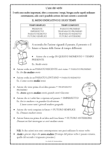 IMPARIAMO INSIEME INGLESE – LEZIONE 18 Learning English together – lesson 18 Passato remoto, imperfetto e participio passato di alcuni verbi irregolari The simple past of some irregular verbs In inglese esistono circa 200 verbi irregolari che si formano in maniera diversa uno dall'altro; esempi: I go to the movies everyday (verbo to go al presente indicativo), vado al cinema ogni giorno. I went to the movies yesterday (verbo to go al passato remoto e imperfetto), andai al cinema ieri. Did I go to the movies last week? (forma interrogativa del passato remoto e imperfetto), andai al cinema la settimana scorsa? I didn't go to the movies last week (forma negativa del passato remoto e imperfetto), non andai al cinema la settimana scorsa. Infinito Passato remoto Participio passato to be (essere) was (fui) been (stato) to become (diventare) became (divenni) become (divenuto) to begin (cominciare) began (cominciai) begun (cominciato) to bite (mordere) bit (morsi) bitten o bit (morso) to blow (soffiare) blew (soffiai) blown (soffiato) to break (rompere) broke (ruppi) broken (rotto) to bring (portare) brought (portai) brought (portato) to buy (comprare) bought (comprai) bought (comprato) to choose (scegliere) chose (scelsi) chosen (scelto) to come (venire) came (venni) come (venuto) to do (fare) did (feci) done (fatto) to drink (bere) drank (bevvi) drunk (bevuto) to fall (cadere) fell (caddi) fallen (caduto) to find (trovare) fell (caddi) fallen (caduto) to give (dare) gave (detti) given (dato) to go (andare) went (andai) gone (andato) to have (avere) had (ebbi) had (avuto) to hide (nascondere) hid (nascosi) hidden (nascosto) to know (conoscere) knew (conobbi) known (conosciuto) to leave (lasciare) left (lasciai) left (lasciato) to make (fare) made (feci) made (fatto) to put (mettere) put (misi) put (messo) to read (leggere) read (lessi) read (letto) to say (dire) said (dissi) said (detto) to see (vedere) saw (vidi) seen (visto) to send (inviare) sent (inviai) sent (inviato) to shut (chiudere) shut (chiusi) shut (chiuso)