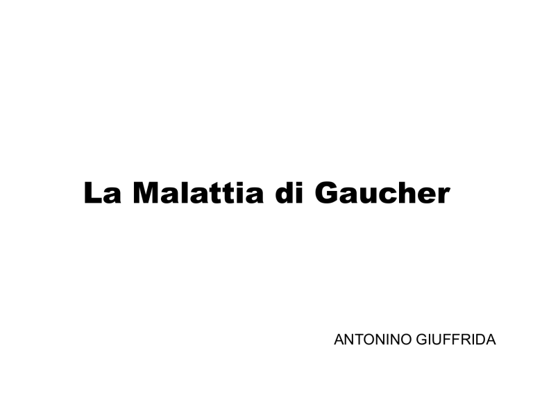 La Malattia di Gaucher ANTONINO GIUFFRIDA La Malattia di Gaucher La Malattia di Gaucher è una malattia metabolica congenita dovuta all’accumulo di un particolare glicosfingolipide, il glucosilceramide, all’interno dei lisosomi presenti nei macrofagi La diagnosi molecolare si effettua tramite l'analisi del DNA e permette di conoscere il genotipo cioè le mutazioni del gene glucocerebrosidasi che sono causa del difetto enzimatico. Il gene glucocerebrosidasi si trova sul cromosoma 1 (locus 1q 21); è costituito da oltre 7000 paia di basi (pb), in cui si riconoscono 11 esoni (regioni codificanti) intervallati da 10 introni (regioni non codificanti). In seguito ad una serie di processamenti, tra cui la rimozione degli introni, "splicing", avviene la trasformazione in mRNA (oltre 2000 pb) che codifica per la proteina enzimatica glucocerebrosidasi, costituita da circa 500 aminoacidi. Malattia di Gaucher: una visione d’insieme • • • • • Una delle più comuni malattie da accumolo lisosomiale Ereditarietà autosomica recessiva (Cromosoma 1) Carenza dell’enzima glucocerebrosidasi Macrofagi infarciti (Cellule di Gaucher) Progressiva, cronica, eterogenea, multisistemica, debilitante e a volte potenzialemente letale Glucocerebroside Glucocerebrosidasi Ceramide + Glucosio Il metabolismo della Glucosilceramide nei lisosomi dei macrofagi Lisosoma Normale Lisosoma nella Malattia di Gaucher Normale catabolismo di glucosilceramide a glucosio + ceramide Accumulo di glucosilceramide dovuto a ridotta catabolizzazione a glucosio + ceramide = glucosilceramide = glucosio = ceramide Malattia di Gaucher: Patologia Cellula normale Cellula di Gaucher LA MALATTIA DI GAUCHER Clinica La malattia di Gaucher L’infiltrazione delle cellule di Gaucher in tutti quei tessuti in cui sono normalmente presenti macrofagi. Adulto asintomatico Giovane con forma lieve Bambino Con forma grave La malattia di Gaucher Nosograficamente veniva distinta in tre sottotipi clinici: Gaucher tipo I • a decorso cronico, senza coinvolgiment o neurologico • Insorgenza nel bambino e nell’adulto Gaucher tipo II • a decorso acuto, con grave coinvolgiment o neurologico • Insorgenza neonatale Gaucher tipo III • a decorso progressivo,c on coinvolgiment o neurologico • Insorgenza infantile La malattia di Gaucher presenta un continuum fenotipico Tipo 2 Tipo 3 Tipo 1 Manifestazioni neurologiche Asintomatico Malattia scheletrica Malattia viscerale Idrope fetale Ittiosi congenita 2º coinvolgimento neurologico Degenerazione neurologica progressiva Manifestazioni parkinsoniane Idrocefalo, calcificazioni delle valvole cardiache Epilessia mioclonica Movimenti oculari rallentati Manifestazioni cliniche Milza Aumenta fino a 50 volte rispetto al volume normale Coinvolgimento ematologico Fegato Aumenta fino a 10 volte rispetto al volume normale • Il coinvolgimento ematologico è maggiore nei pazienti più giovani. • Anemia e trombocitopenia sono variabili e non sono linearmente correlate ai volumi epatico e splenico. Manifestazioni cliniche – manifestazioni ossee Gli effetti sulla struttura ossea sono spesso debilitanti – dolore osseo e crisi ossee – osteoporosi – osteopenia e osteolisi – osteonecrosi – osteosclerosi – fratture – deformità – ritardo della crescita (nei bambini) LA MALATTIA DI GAUCHER Diagnosi Diagnosi della malattia di Gaucher • Sospetto clinico – sulla base delle manifestazioni cliniche • Conferma della diagnosi • parametri di laboratorio • Attivita’ glucocerebrosidasica nei leucociti o in coltura di fibroblasti da biopsia cutanea – analisi genetica del DNA LA MALATTIA DI GAUCHER La terapia Trattamento della malattia di Gaucher: obiettivi • Ridurre il volume del fegato e della milza (organomegalia) • Alleviare l’anemia – eliminare la necessità di trasfusioni – ridurre l’affaticamento • Aumentare o normalizzare il conteggio delle piastrine – impedire emorragie spontanei • Ridurre le manifestazioni ossee • Migliorare la Qualità della vita Trattamento della malattia di Gaucher: trattamento non specifico • Per trattare i sintomi ematologici – Ferro e vitamine – trasfusioni – virtualmente mai usate oggi • splenectomia (totale o parziale) • Per trattare le manifestazioni scheletriche – Analgesici (FANS e oppiacei) – bifosfonati – integratori di calcio e vitamina D – Protesi chirurgiche