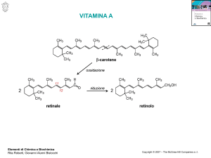 BIOSINTESI DEGLI ORMONI TIROIDEI Per la biosintesi degli ormoni steroidei il colesterolo va incontro a modificazioni che riguardano la catena laterale, che viene accorciata e ossidata, e la la struttura ciclica, che subisce vari processi ossidativi. Molte di queste reazioni consistono nell’introduzione di gruppi ossidrilici ad opera di enzimi ossidoreduttivi (monoossigenasi) che utilizzano NADPH+H+ e ossigeno molecolare, secondo il seguente schema generale: R-H + O2 + NADPH+H+ R-OH + H2O + NADP+ I tessuti steroidogenici hanno, quindi, elevata attività della via dei pentoso fosfati, che rappresenta la sorgente maggiore di NADPH+H+. Le prime tappe della steroidogenesi sono localizzate nei mitocondri. Il trasferimento del colesterolo dal citosol al mitocondrio avviene attraverso una proteina di trasporto, la cui attività è influenzata da ACTH, nella corteccia surrenalica, e da LH, nelle ovaie e nei testicoli. Gli stessi ormoni promuovono anche la trasformazione del colesterolo in pregnenolone, intermedio della biosintesi di tutti gli ormoni steroidei. Elementi di Chimica e Biochimica Rita Roberti, Giovanni Alunni Bistocchi Copyright © 2007 – The McGraw-Hill Companies s.r.l. Elementi di Chimica e Biochimica Rita Roberti, Giovanni Alunni Bistocchi Copyright © 2007 – The McGraw-Hill Companies s.r.l.