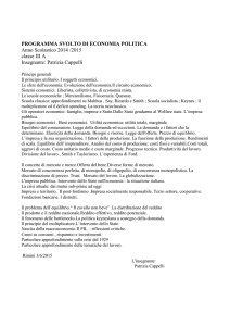 Macroeconomia PROVA DI VERIFICA 4 DICEMBRE 2012 Nome ___________________________ N° matricola ___________________ Cognome ______________________________ Buon lavoro! Il corretto svolgimento della prova richiede che lo studente evidenzi una triplice padronanza nella derivazione algebrica delle relazioni formali, nella loro rappresentazione grafica, e nel commento dei fatti economici rilevati. Traccia A. È noto che la crisi dei mutui sub-prime ha provocato delle forti turbolenze dapprima sul settore finanziario per poi propagarsi alla struttura reale dell’economia. Ciò ha comportato anche forti ripercussioni sui tassi d’interesse e sul clima di fiducia degli imprenditori. Gli economisti spiegano questi effetti attraverso il concetto di efficienza marginale del capitale. Lo studente illustri il concetto di efficienza marginale del capitale e ne dimostri l’uguaglianza col tasso d’interesse. In tale contesto economico, si derivi algebricamente la struttura formale del modello IS-LM allargato e se ne dia una rappresentazione grafica. Si evidenzino altresì gli effetti che una caduta dell’efficienza marginale del capitale provoca sul mercato dei titoli privati. Cosa succede all’equilibrio economico se il tasso di interesse è rigido verso il basso? Partendo dalla nuova combinazione di equilibrio, si illustrino gli effetti economici provocati sul reddito e sul tasso d’interesse dall’adozione di una politica fiscale espansiva finanziata con l’emissione di nuovi titoli pubblici, con particolare attenzione alla composizione del portafoglio finanziario. Se il sistema economico si trovasse sul tratto decrescente della curva di Laffer, l’adozione di una politica di signoraggio quali effetti avrebbe? Motivare la risposta.