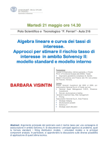 Indice Ringraziamenti Prefazione, di Fabio Cerchiai Introduzione Prologo–Lafiduciacomeasset 1 2 Ilnuovoregimedisolvibilità:obiettivi, lineeguida,implicazionistrategiche 1.1 L’evoluzione della disciplina sui requisiti di solvibilità 1.2 Principi e struttura di Solvency 2 1.2.1 La procedura Lamfalussy 1.2.2 Le linee guida di Solvency 2 1.2.3 La struttura a tre pilastri 1.3 Valutazione 1.4 Riserve tecniche 1.5 Best estimate e Risk margin 1.5.1 Segmentazione 1.5.2 Best estimate 1.5.3 Risk margin Rischiosottoscrizionevita 2.1 Il rischio di sottoscrizione dell’assicurazione vita: formula standard 2.1.1 Rischio di mortalità 2.1.2 Rischio di longevità 2.1.3 Rischio di invalidità-morbilità 2.1.4 Rischio di estinzione anticipata 2.1.5 Rischio di spesa XI XIII XV XVII 1 1 3 3 5 7 13 16 19 20 22 35 37 37 39 40 41 41 42 Solvency 2 VI 2.1.6 Rischiodirevisione 2.1.7 Rischiodicatastrofe 2.2 Rischiodisottoscrizionedell’assicurazione vita:modellointerno,diMarcello Ottaviani 2.2.1 RischioMortalità/Longevità 2.2.2 Rischiocatastrofale 2.2.3 RischioRiscatto 2.2.4 RischioSpese 2.2.5 Rischiodisabilità 2.2.6 Generazionedegliscenari economici(ESG) 2.2.7 Scenariesceltedelmanagement 2.2.8 AssetsandLiabilitiesmanagement nellavalutazionedelrischio sottoscrizionevita 42 43 3 Rischiosottoscrizionedanni 3.1 Metodostandard 3.1.1 Effettidellariassicurazione 3.1.2 UndertakingSpecificParameters 3.2 Rischiodisottoscrizione:modellointerno 3.2.1 FrequencyFitting 3.2.2 Severityfitting 3.2.3 IltestdiKolmogorovSmirnov 3.2.4 Distributionfitting:unesempio 3.2.5 Montecarloconvolution 75 75 78 79 81 82 84 86 87 88 4 Rischiodimercato 4.1.1 Rischiodimercato–Standard Formula 4.1.2 Rischioditassod’interesse 4.1.3 RischioAzionario 4.1.4 Irischiimmobiliari 4.1.5. Rischiovalutario 4.1.6 Rischiospread 4.1.7 Rischiodiconcentrazione 4.1.8 Rischiodipremiodiilliquidità 4.2 Trattamentodeglispecialpurposevehicles 91 44 47 55 56 60 64 68 70 72 91 92 94 95 96 97 100 101 101 VII Indice 4.3 4.4 4.5 4.6 4.7 4.8 4.9 4.10 4.11 4.12 4.13 5 6 Il rischio di mercato: modelli interni Valutazione di un’obbligazione: il rischio tasso 4.4.1 La duration Modelli per la struttura a termine dei tassi d’interesse Modelli Unifattoriali 4.6.1 Modello di Vasicek 4.6.2 Modello di Cox, Ingersoll e Ross (CIR) Determinazione della varianza condizionale Modello per la valutazione dei titoli azionari Modelli di mercato per gli strumenti strutturati Simulazione storica La simulazione Monte Carlo Il Rischio di Liquidità Il modello di Roll 102 103 104 107 109 110 111 112 113 114 116 118 119 122 Rischiodicredito 5.1 Il rischio di credito – Formula standard 5.1.1 Rischio di controparte calcolo degli effetti di attenuazione 5.2 Il rischio di insolvenza: modelli interni 5.2.1 Probabilità d’insolvenza basate sui prezzi delle obbligazioni 5.2.2 Il modello Credit Metrics® 5.2.3 Il modello di Merton per il calcolo della probabilità di default 5.3 Il costo del credito 125 125 Rischioperativi 6.1 Analisi qualitativa dei rischi operativi 6.1.1 Analisi e mappatura dei processi attraverso metodiche e strumentazione standard 6.1.2 Definizione della struttura del rischio (intersezioni attività/ tipo evento) 147 149 131 133 134 136 142 144 150 150 Solvency 2 VIII 6.1.3 6.2 Individuazione risk owners incaricati della segnalazione delle esposizioni e della rilevazione di eventuali perdite 6.1.4 Individuazione, valorizzazione periodica dei Key Risk Indicators e associazione alla struttura del rischio 6.1.5 Definizione ed erogazione sistematica e periodica di questionari di self assessment ai risk owner per la raccolta dei giudizi su frequenza e impatto delle perdite future 6.1.6 Elaborazione reportistica direzionale sulle aree critiche con indicazione su natura, probabilità, impatto delle perdite 6.1.7 Valutazione dei Key Risk Indicators Analisi quantitativa 6.2.1 Rischi operativi – Formula standard 6.2.2 Modello interno – Calcolo dell’operational VaR 6.2.3 Loss Data Collection 6.2.4 Loss Distribution Approach 6.2.5 Fitting delle severities: elementi di teoria dei valori estremi 6.2.6 La determinazione della soglia della GPD 6.2.7 Fitting della severity mediante GPD 6.2.8 Scaling su dati esterni 6.2.9 Dalle distribuzioni di frequencies e severities agli scenari di perdita: la convoluzione 6.2.10 Aggregazione dei risultati per rischi: le copulae 151 152 152 154 155 157 157 158 160 161 162 165 166 169 172 174 IX Indice 6.2.11 Stima bayesiana dei parametri della GPD 6.2.12 Nota sull’integrazione bayesiana tra giudizi qualitativi e risultati quantitativi 175 177 Bibliografia 179 Appendice1-IntegralestocasticoelemmadiIto 1.1 Variazione quadratica 1.2 Integrale stocastico 1.3 Lemma di Ito 183 185 187 189 Appendice2-Algoritmi 2.1 Generazione di campioni casuali distribuiti normalmente 2.2 Generazione di campioni casuali distribuiti normalmente e fattorizzazione di Cholesky – Codice VBA 2.3 Le copule 2.3.1 Le copule – Codice VBA 2.4 Metodo di Newton 2.5 Modelli per i tassi d’interesse 2.5.1 Derivazione dell’equazione differenziale generale 2.5.2 Calibrazione del modello CIR 2.5.3 Modello CIR e sua calibrazione – Codice VBA 2.6 Modelli autoregressivi per l’analisi della varianza 2.6.1 Algoritmo 2.6.2 Garch – Codice VBA 2.7 Convoluzione Montecarlo 2.7.1 Montecarlo convolution – Codice VBA 2.8 Tavola della statistica Kolmogorov-Smirnov 191 Appendice3-Fondipropri 3.1 Limiti di ammissibilità dei fondi propri 221 231 191 193 193 197 200 204 204 207 209 212 214 214 217 218 220