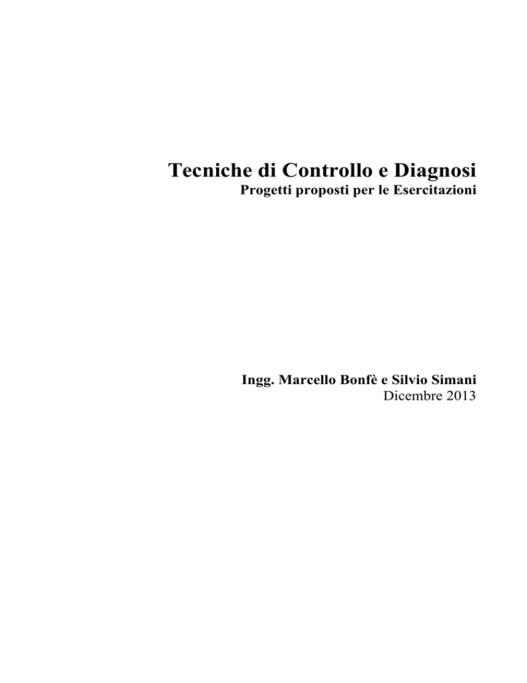 0 Tecniche di Controllo e Diagnosi Progetti proposti per le Esercitazioni Ingg. Marcello Bonfè e Silvio Simani Dicembre 2013 Progetto 1 1 Levitatore Magnetico 1.1 Modellazione matematica Si consideri il sistema a levitazione magnetica prototipale, schematizzato in Figura 1.1, costituito da una sfera di materiale ferromagnetico tenuta in sospensione tramite un elettromagnete. La posizione verticale della sfera può essere misurata con un sensore ottico lineare, accoppiato ad una sorgente luminosa laminare. Interponendosi fra sorgente e sensore, la sfera determina un’interruzione della lama di luce rilevata dal sensore, che permette di determinare in modo precisamente la posizione verticale della sfera stessa. Si ipotizza misurabile anche la corrente elettrica che scorre nell’elettromagnete. Il modello matematico del sistema può essere determinato ipotizzando che la forza di attrazione magnetica sia proporzionale al quadrato del rapporto fra corrente i e posizione verticale della sfera p (se p = 0 la sfera è a contatto con il magnete) e che l’induttanza dell’elettromagnete sia influenzata dalla posizione p secondo una relazione nonlineare. Applicando note leggi fisiche, si ottiene: nella quale u `e la tensione applicata all’elettromagnete, R e L(p) sono resistenza e induttanza del circuito elettrico, v è la velocit`a di spostamento verticale della sfera, g è la nota costante di accelerazione gravitazionale e C è la costante della forza di attrazione magnetica. Ipotizzando che l’induttanza sia determinata dalla seguente relazione: nella quale C è la medesima costante descritta in precedenza, si può ottenere con le scelte intuitive di variabili di stato, ingresso ed uscita x1 = p, x2 = v, x3 = i, y = x1 e u = e il seguente modello nonlineare nello spazio degli stati, affine nel controllo e SISO: del tipo: 1.2 Analisi dell’equilibrio Gli stati di equilibrio del sistema possono essere caratterizzati in funzione della posizione verticale della sfera, per la quale `e generalmente di interesse definire una posizione desiderata (set-point) x1d. Si può infatti facilmente verificare che la famiglia di punti che soddisfa la condizione di equilibrio del sistema è del tipo: vale a dire che una volta fissata la posizione verticale desiderata, la corrente elettrica (x3) da mantenere nell’elettromagnete è determinata di conseguenza. Inoltre, come si può verificare dall’ultima riga della (1.3), in tali condizioni di equilibrio la tensione da applicare in ingresso al sistema è (come ovvia conseguenza della legge di Ohm): In questa famiglia di punti di equilibrio, il calcolo della linearizzazione approssimata permette di ottenere le seguenti matrici (con A dipendente solo da x1d): Si noti inoltre che qualora sia necessario calcolare l’approssimazione lineare del sistema in una condizione di funzionamento non necessariamente di equilibrio (es. ), la matrice A più generica diventa: mentre la matrice B ovviamente non cambia. 1.3 Feedback Linearization Si può dimostrare con alcuni passaggi che il sistema ha grado relativo pari a 3, purché la corrente (e quindi x3) non si annulli, pertanto la feedback linearization ingresso-uscita porta anche ad una linearizzazione completa ingresso-stato. Ponendo come nuove variabili di stato: che corrispondono alla differenza tra posizione verticale attuale e desiderata della sfera, la sua velocità e la sua accelerazione, e come uscita y = z1 il sistema `e riconducibile ad una forma canonica la cui ultima “riga” è: nella quale: che può essere trasformata in tramite la legge di controllo , cioé: o anche in forma più compatta: Si noti che imporre una condizione di regime y = 0, che corrisponde anche a portare nell’origine il vettore di stato z, equivale a portare il sistema originario nella condizione di equilibrio imposta dal set-point x1d. 1.4 NOTA BENE: accortezze necessarie per la simulazione del sistema Come si pu`o facilmente notare dall’equazione dinamica, l’annullarsi di x1 non è ammissibile, soprattutto per una simulazione numerica durante la quale verrebbe richiesta una divisione per zero. È quindi necessario che tale variabile si mantenga sempre positiva, per evitare che la simulazione si interrompa per singolarit`a numeriche. Ovviamente, in fase di messa a punto di un regolatore, quest’ultimo potrebbe non essere in grado di garantire la condizione x1 > 0 durante tutti i transitori. In questo caso, il “sintomo” evidente della inefficienza del regolatore sarà l’arresto nella progressione del tempo di simulazione, la quale dovrà quindi essere interrotta manualmente e ripresa dopo aver modificato i parametri di controllo. 1.5 COMPITI DI PROGETTO 1. Controllo LQ: realizzare simulazioni in ambiente Matlab/Simulink del sistema considerato con controllo di tipo LQ, progettato per l’approssimazione lineare definita da x1d e con matrice di penalizzazione dello stato Q (3 × 3), scalare di penalizzazione dell’ingresso R e matrice di penalizzazione stato-ingresso N (3×1) a piacere. Verificare inoltre l’effetto di variazioni di tali matrici sulle prestazioni del controllore. N.B.: si ricordi che essendo ue ≠ 0 nel punto di equilibrio, lo schema di controllo da implementare è quello della slide 6 nelle “Note Applicative” presentate a lezione. 2. Controllo con Feedback Linearization: implementare la legge di controllo linearizzante descritta alla sezione 1.3 e sfruttare l’ingresso fittizio v per realizzare un ulteriore anello di controllo per la regolazione in y = 0, utilizzando un semplice controllore lineare oppure un controllore Sliding Mode. N.B.: si ricordi che , pertanto una superficie di sliding idonea può essere: in base alla quale la legge di controllo per l’ingresso fittizio v sarà del tipo: 3. Controllo con Reti Neurali: una volta ottenute buone prestazioni per almeno uno dei due controllori richiesti ai punti precedenti, effettuare il training di una Rete Neurale con il metodo del Supervis