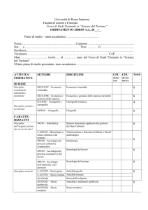 Università Università degli Studi di GENOVA Classe L-6 - Geografia Ateneo data conv durata conv Università degli Studi di Milano 31/05/2011 6 Atenei in convenzione data provvisoria S Tipo di titolo rilasciato Congiunto Nome del corso Scienze umane dell'ambiente, del territorio e del paesaggio modifica di: Scienze geografiche per il territorio, il turismo e il paesaggio culturale (1262725) Nome inglese Human Science of Environment, Landscape and Territory Lingua in cui si tiene il corso italiano Codice interno all'ateneo del corso 9267 Modifica Data del DM di approvazione dell'ordinamento didattico 30/05/2011 Data del DR di emanazione dell'ordinamento didattico 10/06/2011 Data di approvazione della struttura didattica 23/02/2011 Data di approvazione del senato accademico/consiglio di amministrazione 22/03/2011 Data della relazione tecnica del nucleo di valutazione 09/01/2008 Data della consultazione con le organizzazioni rappresentative a livello locale della produzione, servizi, professioni 09/11/2007 - Modalità di svolgimento convenzionale Eventuale indirizzo internet del corso di laurea www.scienzegeografiche.unige.it Dipartimento di riferimento ai fini amministrativi Antichità, filosofia e storia (DAFIST) EX facoltà di riferimento ai fini amministrativi LETTERE e FILOSOFIA Massimo numero di crediti riconoscibili 9 DM 16/3/2007 Art 4 Nota 1063 del 29/04/2011 Numero del gruppo di affinità 1 Obiettivi formativi qualificanti della classe: L-6 Geografia I laureati nei corsi di laurea della classe devono: - possedere una solida formazione di base nelle discipline geografiche; - possedere le conoscenze, acquisite attraverso gli opportuni strumenti teorici, tecnici e metodologici, necessari per l'analisi, la valutazione, l'interpretazione e la rappresentazione del territorio; - essere in grado di utilizzare i principali strumenti informatici per il trattamento, l'elaborazione e la rappresentazione delle informazioni territoriali qualitative e quantitative; - conoscere i metodi di analisi, schedatura e conservazione delle varie tipologie delle fonti cartografiche; - essere in grado di utilizzare efficacemente, in forma scritta e orale, almeno una lingua dell'Unione Europea, oltre l'italiano, per lo scambio di informazioni generali; - possedere adeguate conoscenze e strumenti per la comunicazione e la gestione dell'informazione, nell'ambito specifico di competenza. Sbocchi occupazionali e attività professionali previsti dai corsi di laurea sono in enti pubblici e privati che utilizzino professionalità coerenti con la tipologia di competenze specifiche fornite dal corso di laurea, nonché nei settori della rappresentazione e dell'analisi del territorio, dell'identificazione e valorizzazione delle risorse dei connessi fenomeni economici e politici. Ai fini indicati, i curricula dei corsi di laurea della classe: - comprendono in ogni caso attività finalizzate all'acquisizione di conoscenze di base nei vari campi della geografia e dell'evoluzione ambientale, culturale e sociale, connettendo i vari saperi specialistici all'interno di un sistema coerente di conoscenze teoriche e abilità operative; - comprendono in ogni caso una quota di attività formative orientate all'acquisizione di capacità operative anche con riferimento ai servizi culturali e ambientali. Criteri seguiti nella trasformazione del corso da ordinamento 509 a 270 (DM 31 ottobre 2007, n.544, allegato C) La trasformazione nasce dall'opportunità di mettere a frutto l'esperienza maturata nei primi anni di attuazione del d.m. 509/1999 e di apportare le modifiche più adatte a rendere l'offerta didattica più rispondente agli obiettivi formativi, alle esigenze degli studenti e alle richieste del mondo del lavoro. Il nuovo percorso permette inoltre di poter raggruppare le attività formative in un minor numero di discipline e conseguentemente di prove d'esame, al fine di determinare un'articolazione didattica più semplice, più efficace e più razionale. MODIFICA CORSO DI LAUREA DEL 2011. L'Università degli Studi di Milano e l'Università degli Studi di Genova, per il tramite delle rispettive Facoltà di Lettere e Filosofia, hanno ritenuto di sviluppare in comune il presente progetto di corso di laurea, attraverso una più intensa collaborazione scientifica e didattica volta a realizzare la piena integrazione delle rispettive competenze e specificità attinenti al settore delle scienze naturali e umane, relative all'ambiente, al territorio e al paesaggio. Il corso di laurea in oggetto insieme al corrispondente corso di laurea magistrale che le due Università intendono realizzare con le medesime modalità, fa sì che le due Facoltà si propongano come polo di eccellenza nel panorama nazionale per la ricerca e la formazione nel campo degli studi su ambiente, territorio e paesaggio, e in particolare riguardo alla individuazione e alla valutazione di approcci euristici e applicativi nelle indagini su tali realtà geografiche, intese quali ambienti naturali e umanizzati, ma anche quali realtà spaziali materiali, a loro volta portatrici di valori e simboli percepiti e vissuti dalle popolazioni interessate come propri riferimenti culturali ed esistenziali. Sintesi della relazione tecnica del nucleo di valutazione La progettazione del corso risulta corretta. Le informazioni per gli studenti sono pienamente adeguate. La descrizione dei risultati attesi e degli sbocchi occupazionali appare ben dettagliata. La consultazione con le organizzazioni rappresentative a livello locale della produzione, servizi, professioni è stata attuata, ma in modo non del tutto efficace. Sintesi della consultazione con le organizzazioni rappresentative a livello locale della produzione, servizi, professioni Presso la Facoltà di Lettere e Filosofia in Via Balbi 2 si sono riuniti i rappresentanti delle parti sociali e delle professioni interessate, e cioè: Ufficio scolastico regionale, Regione liguria, Direzione cultura del Comune di Genova, Soprintende