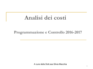 Il full costing e la contabilità per centri di costo Full costing Fondato sul principio di assorbimento integrale dei costi Il costo di tutti i fattori impiegati deve concorrere alla determinazione del costo totale dell’oggetto di calcolo Problema: allocazione dei costi comuni: individuazione basi di riparto Full costing a base unica Full costing a base multipla Full costing Nella configurazione a costi pieni la determinazione del costo di prodotto si basa sulla attribuzione allo stesso di tutti i costi diretti e di quote di costi indiretti. Il costo è determinato attraverso una progressiva aggregazione di costi di prodotto MAT. PRIME MOD ALTRI COSTI DIRETTI COSTO PRIMO COSTI INDIRETTI DI PRODUZIONE COSTO PIENO INDUSTRIALE COSTI GENERALI COSTI AMMINISTRATIVI COSTO PIENO AZIENDALE COSTI COMMERICALI Full costing a base unica Costo dei fattori produttivi: Costi diretti: Materiali diretti Manodopera diretta Altri costi diretti Imputati direttamente all’oggetto finale Unica base di allocazione Costi indiretti: Materiali indiretti Manodopera indiretta Altri costi indiretti di produzione Altri costi indiretti di struttura Costi generali Oggetto Oggetto finale finale di calcolo di calcolo Limiti alla applicabilità del full costing a base unica Se la base di ripartizione non rispecchia il reale assorbimento di tutti i costi indiretti, l’informazione di costo risultante può essere distorta Applicabile solo se si verificano 2 condizioni: I costi indiretti rappresentano una % ridotta di costi totali Il processo produttivo è semplice e il numero di prodotti è limitato Se le due condizioni non si verificano è opportuno utilizzare un sistema più articolato: Più basi di ripartizione Centri di costo Full costing a base multipla Costo dei fattori produttivi: Costi diretti: Materiali diretti Manodopera diretta Altri costi diretti Costi indiretti: Materiali indiretti Manodopera indiretta Altri costi indiretti di produzione Altri costi indiretti di struttura Imputati direttamente all’oggetto finale Oggetto Oggetto finale finale di calcolo di calcolo Basi Basi di allocazione Basi di allocazione Basi di allocazione Aggregazioni di imputazione Aggregazioni di costo Aggregazioni Aggregazioni di costo di costo intermedie di costo La contabilità per centri di costo Organizzazione complessa della produzione Grande dimensione aziendale La contabilità analitica per centri di costo CENTRO DI COSTO Stratagemma contabile utile e necessario per la corretta rilevazione ed imputazione dei costi (ovvero per la determinazione dei coefficienti di costo da imputare ai prodotti o alle produzioni) CENTRO DI RESPONSABILITA’ I centri di responsabilità (CdR) individuano il sistema delle responsabilità e sono finalizzati al controllo ed alla personalizzazione dei costi Le fasi per la determinazione del costo di produzione 1. Definizione del piano dei centri di costo 2. Scelta degli elementi di costo da includere nel calcolo e definizione dei criteri di localizzazione dei costi per cdc 3. Attribuzione dei costi dei cdc intermedi ai cdc finali attraverso opportune basi di ripartizione (chiusura dei centri di costo intermedi) 4. Imputazione dei costi all’oggetto di calcolo (attribuzione dei costi dei centri di costo ai prodotti) attraverso opportuni driver Diagramma del sistema di contabilità per centro di costo Costo dei fattori produttivi: Imputati direttamente all’oggetto finale Oggetto finale di calcolo Costi diretti Costi indiretti Criteri di allocazione Basi di ripartizione Centri Centri Centri didi di costo costo costo I centri di costo: definizioni ORIENTAMENTO CONTABILE Si definisce centro di costo l’unità minima di rilevazione cui si fa riferimento per la raccolta e l’aggregazione delle informazioni di costo ORIENTAMENTO GESTIONALE Si definisce centro di costo una unità organizzativa che, sotto la guida di un responsabile governa autonomamente definite risorse e, svolgendo una serie di attività, ottiene risultati apprezzabili prevalentemente in termini di livelli di attività e di efficienza raggiunti Perché i centri di costo… • Le informazioni rese disponibili da un sistema di misurazione articolato per centri di costo agevola lo sviluppo di un’efficace attività di governo dell’organizzazione in termini di: 9 individuazione delle determinanti dei risultati economici aziendali (CONTROLLO ECONOMICO) 9 valutazione delle prestazioni ottenute dai responsabili dei centri di costo (CONTROLLO ESECUTIVO) 9 supporto al processo decisionale Criteri per la definizione del piano dei centri di costo 1. OMOGENEITA’ DELLE ATTIVITA’ SVOLTE RISPETTO AI FATTORI PRODUTTIVI UTILIZZATI ED ALLE PRESTAZIONI EROGATE 2. POSSIBILITA’ DI ATTRIBUIRE TUTTE LE VOCI DI COSTO PERTINENTI AL CENTRO DI COSTO INDIVIDUATO 3. SIGNIFICATIVITA’ DELLE ATTIVITA’ E DEI COSTI 4. ADERENZA ALLA STRUTTURA ORGANIZZATIVA ED ALLE SPECIFICHE RESPONSABILITA’ Definizione struttura dei centri di costo Quali e quanti centri di costo? I centri di costo vengono raggruppati in 3 tipologie: Centri di costo produttivi (finali) Centri di costo ausiliari (intermedi) Centri di costo di struttura (generali) • Sono Centri di costo produttivi (finali) i reparti di produzione • Sono Centri di costo ausiliari (intermedi e finali) i servizi interni accessori che erogano prestazioni per il mercato interno (es. manutenzione) • Sono Centri di costo di struttura le funzioni aziendali esterne all’area produttiva (ragioneria, personale, affari generali,…) Attribuzione dei costi ai centri di costo CENTRI DI COSTO PRODUTTIVI FINALI A COSTI DIRETTI COSTI INDIRETTI SPECIFICI COSTI COMUNI BASI B C D CENTRI DI COSTO DI STRUTTURA CENTRI DI COSTO DI SERVIZIO AUSILIARI E F G H I L M N O Costi specifici e costi comuni Costi specifici (es. manutenzione apparecch. dedicate) • sono relativi al consumo di fattori produttivi specifici del centro di costo • sono immediatamente ed oggettivamente attribuiti al centro di costo Costi comuni (es. spe
