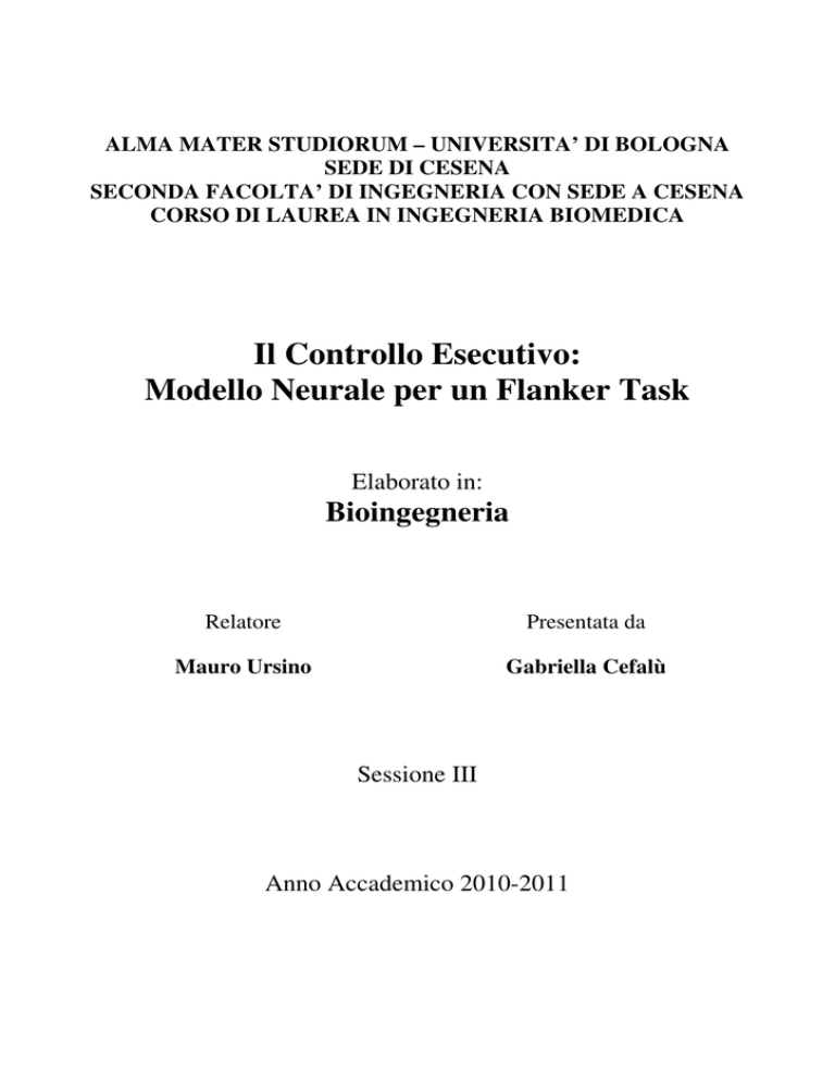 all’Eriksen Flanker Task’. Seconda Facoltà di Ingegneria, corso di laurea in Ingegneria