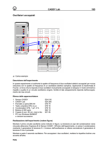 Generatori d’onda sinusoidale La retroazione Sistema non retroazionato Data la struttura in figura, il guadagno ad anello aperto è definito da: Che, nel caso di guadagno di tensione sarà AV A X0 XS VU VS Questi sistemi sono fortemente instabili in quanto il guadagno del quadripolo dipende fortemente da fattori ambientali e non vi è alcun controllo automatico dei risultati ottenuti. Es.: se si riscalda l’acqua dell’impianto di riscaldamento di una casa senza verificare la temperatura ambientale non è possibile ottenere un riscaldamento adeguato. Per adeguarlo si dovrà effettuare un controllo con una retroazione. Sistemi retroazionati (o ad anello chiuso) Retroazione negativa Xd Xi Xf ma Xf Xo Xo poi Xo A Xd quindi Xd A Xo Xi Xo a questo punto sostituendo si avrà A Xo perciò Xi Xo dunque A 1 1 A Xi Xo( ) Xo A A Xo A Ma per definizione Ar Xi 1 A Oss 1: se, come nell’Amplificatore Operazionale è A molto elevato posso dire che Ar 1 Quindi se usiamo un amplificatore con elevato guadagno, il guadagno di un sistema retroazionato non dipende dall’amplificatore stesso. Retroazione positiva Se il nodo comparatore ha l’ingresso di retroazione positivo, sarà Ar A 1 A Immaginiamo ora di aprire il ramo con Xf , avremo che il segnale di retroazione sarà Xf =AXs. Avremo quindi che se esiste un ω=ωo tale per cui φ (βA) =0 o 2 o 4, ecc.. (coiè risultano in fase) e se 1. A( jo ) 1 si ha Xf =Xi cioè se richiudiamo il ramo con Xf e apriamo il ramo con Xs l’amplificatore si autoeccita e l’oscillazione permane. 2. A( jo ) 1 si ha Xf <Xi quindi l’oscillazione si smorza. 3. A( jo ) 1 si ha Xf >Xi quindi l’oscillazione si incrementa nel tempo La condizione 1. , cioè A( j0 1 e 0 è detto criterio di Barkhausen Perciò se esiste un valore di ω tale per cui valga il criterio suddetto, il sistema si autosostiene anche in assenza di segnale (basta un impulso iniziale) e questo è il principio di funzionamento degli oscillatori. Il criterio citato va soddisfatto ad una sola frequenza, quella di oscillazione; altrimenti il segnale generato è, sì, periodico ma non è sinusoidale 1 Per fare in modo che la condizione di oscillazione sia soddisfatta alla sola frequenza di oscillazione: la rete di retroazione dovrà essere molto selettiva, presentando una risposta in frequenza a campana (poli complessi coniugati a parte reale nulla). E’ quindi necessario che il quadripolo di reazione sia selettivo (può essere una rete RC, oppure RL o ancora RLC). Il funzionamento degli oscillatori si basa sul rumore a larga banda prodotto dai resistori e da altri componenti presenti nel circuito; per il teorema di Fourier, tale segnale è dato dalla somma di infinite armoniche: sono quindi generati segnali sinusoidali con vaste gamme di frequenze, tra cui quella che rispetta le condizioni di Barkhausen. Tale condizione porterebbe però ad avere segnali di ampiezza molto piccola. Perciò, per innescare l’oscillazione, è necessario che il guadagno dell’anello sia superiore all’unità, per poi ridursi ad uno quando l’ampiezza della sinusoide in uscita raggiunge un valore sufficiente, senza portare in saturazione l’amplificazione. Oscillatori sinusoidali Gli oscillatori sinusoidali sono degli amplificatori che forniscono un segnale armonico di ampiezza e frequenza desiderata, senza l’ausilio di alcun segnale di ingresso. Questi operano in regione lineare e, sostanzialmente, sono degli amplificatori che, a regime, si autopilotano. Per generare il segnale armonico, essi utilizzano la reazione positiva con βA=1 e, perciò, lo schema di un oscillatore sinusoidale è quello di un amplificatore retroazionato privo di sorgente esterna. Osserviamo che: negli oscillatori sinusoidali, a regime, il segnale di ingresso, necessario all’amplificatore per funzionare, è fornito dall’uscita dell’amplificatore stesso gli oscillatori sinusoidali hanno di sicuro una coppia di poli complessi e coniugati a parte reale nulla; infatti, essi rispondono al gradino dell’accensione con una risposta oscillatoria persistente Ma cosa succede all’accensione? In altri termini, come nascono le oscillazioni? Per innescare le oscillazioni, si procede nel modo seguente: si dimensiona l’oscillatore facendo in modo che, all’atto dell’accensione, risulti βA>1 alla frequenza di oscillazione fo ; in queste condizioni, il sistema è instabile e risponde al gradino dell’accensione con una risposta oscillatoria crescente, alla frequenza fo per evitare che l’ampiezza delle oscillazioni cresca in modo eccessivo,e il segnale di uscita risulti distorto, si stabilisce un controllo automatico su βA; in pratica si fa in modo che, all’aumentare dell’ampiezza delle oscillazioni, βA si vada riducendo; quando βA diventa 1 le oscillazioni si stabilizzano (fig. 3) fig. 3 2 In altri termini, l’oscillatore sinusoidale all’accensione ha una coppia di poli complessi e coniugati a parte reale positiva; esso è instabile e risponde al gradino dell’accensione con una risposta oscillatoria crescente; all’aumentare dell’ ampiezza della tensione di uscita la parte reale dei poli si riduce a zero e le oscillazioni diventano persistenti. Oscillatore a ponte di Wien E’ un oscillatore di bassa frequenza molto diffuso; il suo schema è quello in figura. Osservando lo schema di fig. 4, possiamo notare che l’oscillatore a ponte di Wien è costituito da: un amplificatore invertente, la cui amplificazione è: V Vo R1 R1 A R1 R2 R1 R2 un amplificatore non invertente, la cui amplificazione è una rete RC selettiva, del secondo ordine, anticiporitardatrice, detta rete di Wien, la cui risposta in fase è riportata nella figura sottostante 100d fo 0d -100d 1.0Hz P(V(out)) 100Hz 10KHz 1.0MHz Frequency Come possiamo vedere, lo sfasamento prodotto dalla rete di Wien, al cui ingresso è applicata la tensione Vout uscente dall’amplificatore, è circa +90, a frequenze molto basse, tende a -90, a frequenze molto alte ed è nullo alla