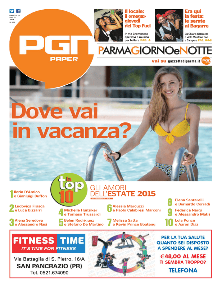 GIOVEDI' 23 LUGLIO 2015 N. 488 Il locale: il «mega» giovedì del Top Fuel Era qui la festa: le serate al Bagarre In via Cremonese aperitivi e musica per ballare PAG. 4 Da Ghiare di Berceto a viale Mentana fino a Campora PAG. 6-7-8 vai su gazzettadiparma.it Dove vai in vacanza? 1 2 3 GLI AMORI DELL'ESTATE 2015 Ilaria D'Amico e Gianluigi Buffon Ludovica Frasca e Luca Bizzarri Alena Seredova e Alessandro Nasi di VANNI BUTTASI 4 5 Michelle Hunziker e Tomaso Trussardi Belen Rodriguez e Stefano De Martino 6 7 Alessia Marcuzzi e Paolo Calabresi Marconi Melissa Satta e Kevin Prince Boateng 8 9 10 Elena Santarelli e Bernardo Corradi Federica Nargi e Alessandro Matri Lola Ponce e Aaron Diaz 2 PARMAGIORNOENOTTE GIOVEDÌ 23 LUGLIO 2015 . ................................................................................................................................................................................................................................................................................................................................................................................................................................................................. BEREMANGIAREBALLARE: I CONSIGLI DELLA x INFORMAZIONI COMMERCIALI 23 GIOVEDI' STREET FOOD Piazza Minozzi, 1 Roccabianca (Parma) Tel 0521-876512 cel 380-7013978 LISCIO ÅARENA SUNSHINE via Giolitti 1, Tizzano Val Parma Info: pagina Facebook “Arena dei Pini” Tel: +39 3426956471 Giovedì battagliero Giovedì settimo appuntamento con il giovedì battagliero de l'Arena Sunshine, la serata di liscio che ospiterà l'orchestra di Daniela Bassi. Il servizio di ristorante/pizzeria offrirà un menù speciale a 25 A con primo, secondo, contorno, acqua, caffè e ingresso al ballo incluso. La "ciccia" fa da padrona! Questa sera dalle ore 19:30 sarà aperta la serata street-food tutti i giovedì sera (su prenotazione ) fino a fine settembre potrete venire a scegliere e mangiare quello che volete direttamente in macelleria, con tavolate uniche sotto i portici dove vige la semplicità e la tranquillità, per passare una serata diversa dal solito. Il menù della serata sarà direttamente il bancone frigo all’interno del negozio. Inoltre potrete trovare birra alla spina - vino - acqua - coca cola. Per il contorno potete portarlo direttamente da casa " ua solo ciccia". 24 VENERDI' agitare gli shaker per prepararvi un fresco aperitivo in stile retrò. Alle 20:30 aprirà l'American Restaurant che vi proporrà un ricco menù a base di Hamburger, Cheeseburger, Bacon Cheeseburger, Hot Dog, Panini con Salsiccia, Carne alla Griglia, Patatine Fritte e una sfiziosa novità: Thats’ Amore (panino arabo, pomodoro, salsa al basilico, mozzarella, tonno). Stars della serata saranno i "The Good Fellas - Gangsters of Swing" in concerto dalle 22,00. Durante la serata potrete dare un tocco vintage alla vostra acconciatura e al vostro make-up, curiosare fra le bancarelle del Retro Market, ammirare luccicanti auto e moto d'epoca o lasciarvi incantare dalle fantastiche aerografie di Ivan Cantarelli e i curiosi e impeccabili automodellini di Willer Collura. Cose da pazzi, bella gente, moto rombanti, grande musica, ottimo buffet.... cosa volete di più da un distributore di benzina? Nulla.. se non fosse il distributore più rombante dei paraggi. Noi ci siamo, vi aspettiamo non fatevelo raccontare, è fondamentale esserci. Il nostro giovedì è veramente una serata per tutti. Uomini e donne, grandi e piccini ma tutti con la voglia di stare bene. Si beve una birra, una sosta al buffet, si ascolta un pò di musica, un giro tra le moto, si salutano gli amici ed è fatta. La ricetta di un giovedì al top. Vi aspettiamo! 24 luglio dalle ore 20.30 non perdetevi l’occasione di unire buon cibo e Ballo... prima apericena gratuita, a seguire Cena Spagnola a soli A 15,00 a persona a base di Paella e sangria (su prenotazione) e poi tutti in pista dalle 22.00 a ballare con il Cohiba club ed il tutto nella meravigliosa location del Ristorante Ai Tigli di Pilastro...è vietato mancare! Sabato 25 luglio l'Arena Sunshine celebra il passato con una serata a tema anni 90. L'evento si terrà dalle 22 alle 05. In consolle il resident Metyu e le Arena Superstars, mentre il segmento live vedrà protagonisti il gruppo parmigiano Transatlantica. ÅBAGARRE VILLAGGIO ROCK Autostrada a 15 uscita Borgotaro 3 km a sinistra ÅVECCHIA VOLPE FESTA PAESE ÅCIRCOLO SAN MARTINO SINZANO C/O CAMPO SPORTIVO SAN MARTINO SINZANO (Collecchio) Per info: [email protected] San Martino Sinzano In Festa ÅTOP FUEL - ENI CAFFE' FESTA VINTAGE Via Cremonese, 99 - Parma ÅTUTTA UN'ALTRA Tel. 0521 672377 COSA L'Aperitivo Top Fuel Anni ’90: musica e divertimento DISCO SUMMER 24 luglio presso il campo sportivo di San Martino Sinzano, si balla con la musica del Taro-Taro Story e dalle ore 20.00 si possono gustare le specialità tipiche parmigiane (tortelli, penne all’arrabbiata, grigliata di carne, panino con salsiccia, patate fritte, verdura agrodolce, macedonia di frutta, ecc..) e sarà attivo un gazebo dedicato sola alla preparazione di ottimi cocktails e birra...da non perdere! GIOVEDI’ AL TOP Cena spagnola con paella e sangria Hawaiian Party Birreria con cucina Strada della Ghiacciaia, 4 Santa Maria del Piano Lesignano de' Bagni (PR) Valerio: 3487131784 Tributo Led Zeppelin: Dancing Dogs Ci siamo. L'Evento ROCK di questa torrida estate è finalmente attivato! Venerdì sera i leggendari Dancing Dogs tornano sul palco della Vecchia Volpe con il loro tributo (e che tributo) ai Led Zeppelin, voci di corridoio dicono che ci sono alcune chicche e pezzi nuovi che i fans sicuramente apprezzeranno. Si parte a 1000 con i Big Knot che scalderanno l'atmosfera con un po' di arroventato southern rock degli inconfondibili e mitici Zz Top. Uno show da capogiro, fiumi di birra e tanto divertimento ed energia pura. Vecchia Volpe means Rock! 25 MUSIC ÅARENA SUNSHINE via Giolitti 1, Tizzano Val Parma Info: pagina Facebo