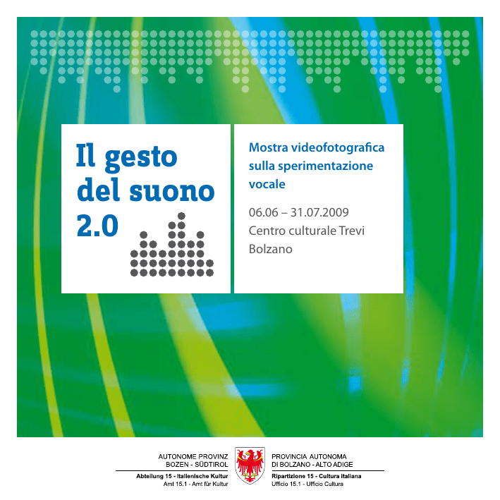 Il gesto del suono 2.0 Mostra videofotografica sulla sperimentazione vocale 06.06 – 31.07.2009 Centro culturale Trevi Bolzano Il gesto del suono 2.0 giunge quest’anno alla seconda edizione dopo la prima svoltasi al centro culturale Trevi di Bolzano, a Merano, a Laives e a Milano nell’ambito di Festival MITO. Il gesto del suono si è distinto come indagine sui percorsi visivi e sonori contemporanei dedicando al gesto musicale documentazioni fotografiche e filmiche. Si sono ripercorse le tappe della ricerca musicale dalla seconda metà del Novecento fino ai nostri giorni per proporre e consentire ad un pubblico sempre più esteso l’interazione tra le diverse discipline artistiche. Il gesto del suono 2.0 propone quest’anno un’indagine specifica dedicata alla vocalità. La nuova edizione si sviluppa in sinergia con l’Istituto per l’educazione musicale in lingua italiana A. Vivaldi, il Conservatorio di musica C. Monteverdi e l’associazione DDT di Laives. Il coinvolgimento e la partecipazione delle realtà locali valorizzano le occasioni di contatto con la cultura e la musica rappresenta una delle sue forme. La mostra videofotografica al Centro Trevi di Bolzano presenta al pubblico un ciclo continuo di video, ritratti fotografici di musicisti di chiara fama e un CD antologico corredato di un booklet a documentazione dell’iniziativa. Un programma collaterale di incontri dedicati ad aspetti tecnici della vocalità, alla foniatria, alla storia della voce e della sua sperimentazione, oltre a due concerti, per favorire l’accesso di tutti i cittadini alle eccellenze artistiche. CHRISTIAN TOMMASINI Vicepresidente della Provincia Assessore alla cultura e scuola in lingua italiana Perché la voce? PRESENTAZIONE Dopo la prima edizione della mostra Il gesto del suono, è stato subito chiaro come il percorso di avvicinamento a questa scena musicale, tanto ricca quanto poco frequentata, fosse solo all’inizio. La risposta dei visitatori, della stampa, degli artisti coinvolti, è stata decisamente positiva. Perché non provare a compiere un passo ulteriore? Amy Denio Data la vastità della scena sperimentale contemporanea, si è scelto di proseguire secondo l’idea originaria della mostra: guardare alla musica come all’incontro tra musicista, strumento e ascoltatore, nel preciso momento, cioè, in cui il singolo gesto del performer, dell’artista in azione, dà vita al suono che l’ascoltatore afferrerà nell’aria… Si è deciso dunque di suddividere questa scena in tre aree che ne esaurissero le diverse modalità espressive: quella vocale (quanto è cambiata la voce nella musica moderna), quella strumentale (le nuove tecniche esecutive sugli strumenti tradizionali), quella elettronica (l’avvento delle nuove tecnologie). L’edizione di quest’anno è dedicata alla vocalità, nel trentesimo anniversario della scomparsa di Demetrio Stratos, uno dei più formidabili protagonisti della sperimentazione vocale nel nostro Paese, e non solo. Il gesto del suono aveva già incontrato la sua ricerca nella prima edizione, e da lì vuole ripartire quest’anno, inaugurando l’edizione 2.0 con la prestigiosa performance di una delle più importanti voci di questi anni, la spagnola Fátima Miranda, che la sera stessa incontrerà il pubblico al café Plural, insieme alle fotografe Rita Antonioli e Silvia Lelli. Inoltre, l’edizione 2009 ha in programma anche una serata-concerto con tre grandi interpreti, Greetje Bijma (NL), Sidsel Endresen (N) e Cristina Zavalloni (I), dalle vocalità estreme e diversissime, e una graditissima serie di incontri-seminario sulla voce a cura dell’Istituto musicale A. Vivaldi e del Conservatorio C. Monteverdi di Bolzano. CLAUDIO CHIANURA Il gesto del suono PRESENTAZIONE Ci sono molti gesti a cui non diamo molto peso nella nostra giornata. Ci sono poi altri gesti di cui non ci accorgiamo nemmeno o, meglio, che non sappiamo nemmeno riconoscere come tali. Uno di questi, è il gesto del suono. Il suono, infatti, ha una grammatica, una sintassi, una vera e propria lingua ma anche movenze, impennate ed esitazioni proprie difficili da cogliere, difficili da capire e difficili da interpretare come un semplice, ma significativo gesto. In realtà, la musica è pura gestualità come fa notare Curt Sachs che invita gli operatori a riscoprire la fonte primigenia di quest’arte meravigliosa, laddove suono e gesto e gesto e suono erano l’uno espressione dell’altro. Il percorso studiato da Claudio Chianura, che riprende quanto già fatto lo scorso anno nella prima parte della rassegna, intende enucleare alcuni momenti della cultura sonora sperimentale del tardo Novecento per andare all’origine, alla fonte primigenia della musica: il gesto del suono, secondo un’ottica aperta ed interdisciplinare. Penso, in questo senso, alle sperimentazioni vocali di Demetrio Stratos che, partendo da una concezione tradizionale, portarono ad uno sconvolgimento del quadro della musica di consumo, anche se di protesta, nel corso degli anni Settanta. Plasmando la sua voce e seguendo antiche tecniche orientali misconosciute in occidente, egli riuscì a raggiungere la polifonia nel proprio corpo grazie all’emissione di più suoni contemporaneamente. In altro modo agirono John Cage e Cathy Barberian capaci di creare un punto di rottura nella sutura di tanti generi visti allora in contrasto. La frammentazione culturale del Novecento, da semplice rivolo, diventa un fiume ricco di esperienze sonore in cui si intravedono nuovi spazi che ancora ai nostri giorni non hanno trovato piena realizzazione. Per l’Istituto per l’educazione musicale in lingua italiana A. Vivaldi della Provincia autonoma di Bolzano, cha fa della musica non solo un luogo di incontro, ma anche luogo di indagine, è fondamentale approcciare la disciplina in modo culturale per dare a tutti gli appassionati la possibilità di indagare, di pensare e di capire. Una possibilità che, grazie alla splendida idea dell’Uf