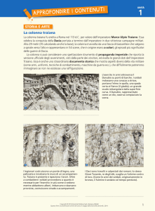 CARMINE DI GIUSEPPE, Carpe linguam © Medusa Editrice 2016 - Espansioni on line ITER X Curiositas La colonna traiana Al centro del Foro di Traiano, a Roma, s’innalza la colonna onoraria a ricordo della memorabile vittoria dell’imperatore nella campagna contro i Daci (101-102 e 105-106 d.C.). Alta circa 47 metri, poggia su un podio cubico ornato da fregi, all’interno del quale fu posta la tomba dell’imperatore. All’interno della colonna una scala a chiocciola porta fino alla sommità. Originariamente era sormontata da una statua di Traiano, sostituita da quella di San Pietro nel 1587. Sulle pareti della colonna si snoda un fregio a spirale di 200 metri, che narra la guerra contro i Daci. Tutta la vita militare sfila lungo il fregio, con scene di battaglia, soldati che espugnano città, macchine da guerra e prigionieri. Compaiono anche scene della vita da campo, con i soldati a erigere le caserme e i muri di difesa dell’accampamento, le strade, i ponti, le apparecchiature belliche, le opere di ingegneria, dandoci così un’idea dell’impegno che l’allestimento di una campagna militare richiedeva. Le armature, sia dei romani sia dei daci, sono riprodotte in modo minuzioso, sicché la colonna offre una straordinaria documentazione di tecnologia militare. A partire dal I secolo d.C., per esempio, l’esercito romano adottò un nuovo scudo, di forma semicilindrica, più leggero di quello usato fino ad allora e con un umbone più grande al centro. Grazie a questo scudo fu possibile eseguire una manovra tattica di grande effetto, la testudo (testuggine). I legionari della prima fila tenevano lo scudo davanti a loro, mentre quelli dietro lo ponevano sulla testa in modo da formare un “tetto” sotto il quale si trovavano molti più legionari di quanto potesse sembrare, un enorme effetto di sorpresa sui nemici. Il fregio della colonna ha comunque un solo protagonista, Traiano, che vi compare riprodotto sessanta volte. È un contenuto politico rivolto ai cittadini di Roma: grazie a Traiano, la pace e l’ordine sono stati ripristinati e i Daci non costituiscono più una minaccia alla sicurezza dell’Impero.