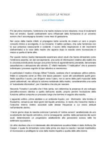 * SALUT www.mappasalute.it U3 er 5** Metodo Tomatis: il suono che cura ra ossea, anche la consapevolezza del proprio schema corporeo e i l controllo posturale e motorio possono risultare alterati. Restituire all'orecchio traumatizzato la possibilità di ascoltare in modo nuovo e diverso è lo scopo principale di questo metodo. La tecnica consiste in una stimolazione sonora unita a un preciso intervento di tipo pedagogico. Il metodo si avvale di uno speciale apparecchio detto orecchio elettronico, un complesso sistema di amplificatori, filtri e bascule in grado di filtrare i suoni fino a circa 4000 H z , frequenze simili a quelle udite dal feto i m merso nel liquido amniotico. Questo strumento agisce in particolare a l i vello di orecchio medio, stimolando i muscoli situati tra martello e staffa. Questi ultimi, attivandosi e rilasciandosi, influenzano la posizione dei tre ossicini consentendo l'apertura all'ascolto di una banda uditiva fino ad allora preclusa. Come funziona Fin dal concepimento viviamo immersi in un una seduta oceano di stimoli sonori, che hanno il potere C h i si sottopone al trattamento ascolta suoni filtrati attraverso l'audi in-formarci, influenzando in maniera positiva silio di speciali cuffie. D o p o un cero negativa il nostro sviluppo. Il metodo Tomatis to numero di sessioni, dovrà riprodurre vocalmente i suoni percepiti. svela i meccanismi di questo condizionamento La sua voce sarà captata dalla mace offre una tecnica innovativa capace di risvegliare, china, filtrata e restituita all'ascolto. stimolare e accrescere le infinite potenzialità del sé. I suoni a cui si fa ricorso durante DI S I L V I A G A R R Ì I l metodo audio-psico-fonologico, meglio conosciuto come metodo Tomatis, nasce negli anni '50 ad opera della geniale intuizione del francese Alfred Tomatis (1920-2001), medico otorinolaringoiatra, che individuò la stretta correlazione tra orecchio, linguaggio e comportamento. Egli notò che le frequenze dei suoni che la voce non riesce a emettere sono le stesse che l'orecchio non riesce a percepire in modo corretto. A l l a base di questa incapacità di ascolto possono esserci cause organiche (incidenti, malattie), ma anche abitudini di ascolto alterate, legate a traumi emotivi subiti fin dall'infanzia e addirittura già nella vita fetale. le sedute sono le musiche di Mozart, soprattutto i concerti per violino, ric- Guarire l'udito Se si perde la capacità di ascoltare certe frequenze, si va incontro a un progressivo e fisiologico rilassamento dei muscoli dell'orecchio medio. C o n i l tempo, questo può portare allo sviluppo di difficoltà nell'apprendimento, stanchezza, irritabilità, disturbi del linguaggio, disturbi del comportamento e depressione. Considerando che il suono si propaga anche per la struttuAlfred Tomatis 70 www.terranuovaedizioni.it Una bambina durante una seduta chi di frequenze acute, e i canti gregoriani, che contengono tutte le frequenze della voce umana e presentano un ritmo simile al respiro. Il parto sonoro È importante precisare che questa tecnica non elimina la patologia, ma permette di sviluppare strategie cerebrali di compensazione utili per gestire meglio le difficoltà. U n orecchio capace di ascoltare tutte le frequenze è un orecchio che invia molti più stimoli nervosi e sensoriali al cervello. Inoltre, la stimolazione del sistema limbico va a interagire con i meccanismi delle emozioni, della memoria e dell'apprendimento. Pertanto i l metodo Tomatis può essere utile in molti disturbi dell'età pediatrica come deficit di attenzione, iperattività, disturbi della sfera affettiva, difficoltà di linguaggio, balbuzie, dislessia e disturbi pervasivi dello sviluppo. I benefici in gravidanza Studi condotti i n Francia, nelU n momento importante del trat- l'ospedale di Vesoul, hanno posto tamento è rappresentato dal cosid- l'attenzione sugli effetti del metodo detto parto sonoro, durante il quale durante i percorsi di preparazione al l'audizione del suono passa da un fil- parto. Oltre un centinaio di gestantro di tipo acquatico a un suono di ti hanno sperimentato l'ascolto di tipo aereo. Questo costituirà per i l suoni filtrati. I risultati hanno evisoggetto l'inizio d i un nuovo per- denziato una riduzione del tempo di corso di pedagogia del suono con ri- travaglio e del ricorso a parti cesarei. sultati che perdureranno nel tempo. Il metodo applicato all'autismo Questo approccio ha vaste applicazioni in ambito comunicativo, comportamentale e in tutti i disturbi dell'apprendimento. Anche soggetti affetti da gravi patologie come l'autismo possono trarne beneficio. E stata osservata la sua efficacia sia nella riduzione dell'ipersensibilità ai suoni, che nello sviluppo di una maggiore interazione con l'esterno. M a non solo: risulta valido anche per migliorare il tono dell'umore, l'attenzione e le abilità linguistiche. Indicato per creativi e atleti Inoltre, la rieducazione al suono, stimolando le aree corticali, sembra facilitare l'apprendimento delle lingue straniere e arricchire la capacità creativa ed espressiva di musicisti, cantanti e attori. L a conduzione ossea del suono, unitamente all'interazione di vestibolo e coclea, favoriscono infine l'equilibrio, la coordinazione, il ritmo e la motricità, trovando applicazione sia in ambito riabilitativo che nel miglioramento delle prestazioni di sportivi e ballerini. Principali scuole e centri di riferimento del metodo Tomatis in Italia LOMBARDIA Atelier di Movimento, via Vittoria Colonna 50, Milano - tei 02 4986216 PIEMONTE Centro Tomatis Torino, via Argonne 1, Torino - tei 011 6604897 VENETO Centro Tomatis, via Vesalio 6, Padova - tei 347 1078263 Dottor Concetto Campo, via Rovereto 22, Verona - tei 045 8347988 LAZIO Musicalificio Grande Blu, piazza Dante 12, Roma - tei 06 70455252 Dottor Concetto Campo, via Baldo degli Ubaldi 210, Roma - [email protected] MARCHE Centro Paracelso, strada provinciale Fermana 109, Campiglione di Fermo (Ap) - tei 0734 605403 Per saperne di p