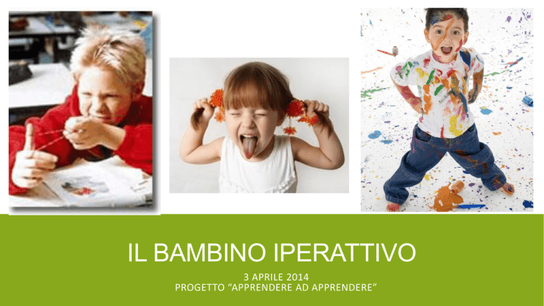 IL BAMBINO IPERATTIVO 3 APRILE 2014 PROGETTO “APPRENDERE AD APPRENDERE” DDAI O ADHD Disturbo da Deficit di Attenzione e Iperattività o Attention Deficit Hyperactivity Disorder ▪ Il Disturbo da Deficit di Attenzione/Iperattività, o ADHD, è un disturbo evolutivo dell’autocontrollo. Esso include difficoltà di attenzione e concentrazione, di controllo degli impulsi e del livello di attività. Questi problemi derivano sostanzialmente dall’incapacità del bambino di regolare il proprio comportamento in funzione del trascorrere del tempo, degli obiettivi da raggiungere e delle richieste dell’ambiente. Ipotesi eziologiche: ▪ Fattori neurobiologici (alterazioni a carico dei lobi frontali) ▪ Fattori genetici (base ereditaria del disturbo) ▪ Fattori ambientali (condizioni socio-economiche familiari, lo stile nutritivo, esposizione prenatale a sostanze tossiche, l’assunzione di specifici farmaci) ▪ Fattori psicologici (specifiche modalità disfunzionali utilizzate dai genitori per interagire col bambino) DISATTENZIONE, IPERATTIVITÀ’ E IMPULSIVITA’ DISATTENZIONE DISATTENZIONE I sintomi relativi alla disattenzione si riscontrano soprattutto in bambini che, rispetto ai loro coetanei, presentano un’evidente difficoltà a rimanere attenti o a lavorare su uno stesso compito per un periodo di tempo sufficientemente prolungato. Diversi autori sostengono che il deficit principale della sindrome sia rappresentato dalle difficoltà d’attenzione, che si manifestano sia in situazioni scolastiche/lavorative, che in quelle sociali. Dato che il costrutto di attenzione è multidimensionale, le ultime ricerche sembrano concordi nello stabilire che il problema maggiormente evidente nel DDAI sia il mantenimento dell’attenzione, soprattutto durante attività ripetitive o noiose (Dogulas, 1983; Robertson et al., 1999). Sembra quindi che le problematiche attentive diventino evidenti in particolare quando il compito da svolgere non risulta attraente e motivante per il bambino (Millich & Lorch, 1994). Queste difficoltà si manifestano anche in situazioni ludiche in cui il bambino manifesta frequenti passaggi da un gioco ad un altro, senza completarne alcuno. A scuola si manifestano evidenti difficoltà nel prestare attenzione ai dettagli, banali “errori di distrazione”, e i lavori sono incompleti e disordinati. Insegnanti e genitori riferiscono che i bambini con DDAI sembra che non ascoltino o che abbiano la testa da un’altra parte quando gli si parla direttamente. Passando vicino al banco di un bambino iperattivo si può rimanere colpiti dal disordine con cui gestisce il materiale scolastico e dalla facilità con cui viene distratto da suoni o da altri stimoli irrilevanti. Malgrado queste osservazioni, le ricerche sono concordi nell’affermare che i bambini con DDAI non sono più distraibili di altri (Barkley, 1998). DEFICIT DI ATTENZIONE Possiamo definire l'attenzione come quella capacità mentale che ci consente di fare una selezione degli stimoli che percepiamo (tra cui anche stimoli 'interni') per permetterci di investire le nostre capacità di elaborazione delle informazioni in modo più funzionale rispetto alla situazione E’ una facoltà multicomponenziale Principali componenti dell'attenzione: ▪ Attenzione selettiva: la capacità di focalizzare la propria attenzione su alcuni stimoli escludendo gli altri ▪ Arousal / vigilanza: la capacità di attivarsi in risposta ad un cambiamento delle condizioni ambientali ▪ Attenzione sostenuta: la capacità di mantenere l'attenzione nel tempo ▪ Attenzione divisa: la capacità di prestare attenzione a 2 (o +) fonti di stimoli ARCHITETTURA DELL'ATTENZIONE L'attenzione è una facoltà complessa, composta da una serie di moduli o componenti: A) Sistema dell'arousal: regola lo stati di attivazione / allerta; (maturazione entro i 4 anni di vita, Rueda et al, 2004) B) Sistema dell'orientamento: monitora il canale sensoriale (visivo o uditivo) e rileva stimoli nuovi o imprevisti; (si sviluppa tra i 5 e i 9 anni, Trick & Enns, 1998; Huang-Pollock et al., 2007) C) Sistema di attenzione percettivo: permette di selezionare gli stimoli e focalizzarsi su di essi; D) Sistema di controllo esecutivo: controlla l'attenzione attivando o disattivando B e C IL SISTEMA DI CONTROLLO Tutti i sistemi descritti precedentemente interagiscono dinamicamente tra loro per supportare i comportamenti complessi; il sistema di controllo sembra essere più rilevante per il raggiungimento del successo prestazionale nelle situazioni di apprendimento (Baijal et al, 2011) Quando affermiamo che i bambini hanno tempi di attenzione più bassi, significa che sono meno in grado di ri-orientare l'attenzione su un compito (in assenza di evidenti ed altre patologie). Il sistema di controllo è fortemente collegato con la personalità, l'intelligenza, l'esperienza, la motivazione; l'intervento sull'attenzione deve tenere conto di questi aspetti IPERATTIVITA’ IPERATTIVITÀ La seconda caratteristica del DDAI è l’iperattività, ovvero un eccessivo livello di attività motoria o vocale. Il bambino iperattivo manifesta continua agitazione, difficoltà a rimanere seduto e fermo al proprio posto. Secondo i racconti di genitori e insegnanti i bambini con DDAI sembrano “guidati da un motorino”: sempre in movimento sia a scuola che a casa, durante i compiti e il gioco. Molto spesso i movimenti di tutte le parti del corpo (gambe, braccia e tronco) non sono armonicamente diretti al raggiungimento di uno scopo. IMPULSIVITA’ IMPULSIVITÀ Secondo alcuni autori l’impulsività è la caratteristica distintiva del DDAI, rispetto ai bambini di controllo e rispetto agli altri disordini psicologici (Barkley, 1997). L’impulsività si manifesta nella difficoltà a dilazionare una risposta, ad inibire un comportamento inappropriato, ad attendere una gratificazione. I bambini impulsivi rispondono troppo velocemente (a scapito dell’accuratezza delle loro risposte), interrompono freq