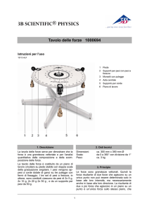 NOME E COGNOME:________________________________________ FORZE Quando vai in bicicletta il tuo piede spinge contro il pedale. La spinta fa in modo che le ruote girino e la bicicletta si muova. Quando fai cadere qualcosa questa viene tirata verso il suolo dalla gravità. Qualsiasi cosa che SPINGE o TIRA un oggetto è una forza. Quindi una buona definizione operativa di forza è qualcosa che spinge o tira in una certa direzione un oggetto. Le forze influiscono su come un oggetto si muove. Posso mettere qualcosa in movimento; possono anche fermare, rallentare o cambiare la direzione di un oggetto che è già in movimento. Le forze possono influire sul movimento in vari modi: Possono mettere gli oggetti fermi in movimento Possono far muovere gli oggetti più velocemente Possono far muovere gli oggetti più lentamente Possono fermare gli oggetti che si muovono Possono cambiare la direzione in cui gli oggetti si muovono Possono cambiare la forma di un oggetto Poiché le forze modificano la direzione e la velocità di un oggetto esse imprimono un' ACCELERAZIONE all'oggetto stesso (N.B. Quando si parla di accelerazione, si intende sia quando un corpo aumenta di velocità sia quando diminuisce). FATTI RELATIVI ALLE FORZE: Le forze si misurano in Newton (N) Le forze in genere agiscono in coppie Le forze agiscono lungo una particolare direzione Le forze in genere non si possono vedere ma se ne possono osservare gli effetti. Nelle immagini qui di seguito, individua quando la forza spinge oppure tira. Quindi indicare se la forza comporta un cambiamento in velocità, in direzione, in forma o in più di uno di questi. Più di una forza può agire su un oggetto nello stesso momento. Le forze possono spingere o tirare in qualsiasi direzione. Cosa accade all'oggetto quando le forze agiscono su di esso dipende da due cose: Quanto sono intense le forze La direzione in cui le forze agiscono Quando più di una forza agisce su un oggetto, queste si combinano per dare una forza risultante. La risultante altro non è che la combinazione di tutte le forze che agiscono su un particolare oggetto. Le forze possono agire lungo la stessa direttrice nello stesso verso o in versi opposti. Le forze possono agire anche lungo direttrici diverse. Due o più forze opposte sono bilanciate se i loro effetti si annullano vicendevolmente e non causano alcun cambiamento nel moto di un corpo. Se due forze di uguale intensità agiscono su un oggetto lungo la stessa direttrice e con versi opposti, le forze si annullano, dando luogo a una risultante pari a 0 e nessun movimento. Se gli effetti delle forze non si cancellano l'un l'altra, qualora una forza sia più intensa delle altre, le forze si dicono sbilanciate. Le forze sbilanciate provocano un cambiamento nel moto di un corpo: nella velocità e/o direzione. Se le due forze disuguali agiscono lungo la stessa direttrice con lo stesso verso, la risultante è la somma delle due forze. Quando le due forze disuguali agiscono lungo la stessa direttrice con verso opposto, la risultante è la differenza delle due forze. Se le due forze disuguali agiscono lungo direttrici diverse si applica quella che si chiama la regola del parallelogramma. Si mettono i due vettori sullo stesso punto di applicazione, si costruisce un parallelogramma i cui lati sono lunghi quanto le due forze e la risultante è data dalla diagonale del parallelogramma. Mettere un cerchio attorno alla risposta migliore: 1. Le forze mostrate sopra sono forze che TIRANO / SPINGONO. 2. Le forze mostrate sopra sono forze che hanno verso UGUALE / OPPOSTO. 3. Le forze sono UGUALI / DISUGUALI. 4. Le forze SI /NON SI bilanciano. 5. La forza risultante è 1000 N A DESTRA / 1000 N A SINISTRA /ZERO. 6. C ' È / N O N C ' È m ovimento. 7. Le forze mostrate sopra sono forze che TIRANO / SPINGONO. 8. Le forze mostrate sopra sono forze che hanno verso UGUALE / OPPOSTO. 9. Le forze sono UGUALI / DISUGUALI. 10. Le forze SI /NON SI bilanciano. 11. La forza maggiore va verso DESTRA / SINISTRA. 12. La forza minore va verso DESTRA / SINISTRA. 13. Il movimento è verso DESTRA / SINISTRA. MOSTRARE LE FORZE: Le forze si possono mostrare usando un vettore. Un vettore è una linea con una freccia ed inizia con un puntino. Il puntino mostra dove la forza inizia La lunghezza della freccia indica l'intensità della forza La freccia indica il verso della forza Esempio: Ogni quadratino rappresenta la forza di 1 Newton (1 N). Questa freccia indica una forza di 5 N verso destra. sinistra. Riempi la tabella a destra con le informazioni della figura a Forza Direzione (N) (destra, sinistra, in basso, in alto) 1 2 3 4 5 6 7 8 9 10 Disegnare ogni vettore sugli schemi qui sotto. Iniziare con un puntino. Ogni quadretto rappresenta 1 N di forza. 7 N di forza a destra 5 N di forza a sinistra La figura a sinistra mostra due forze con versi opposti. C'è una forza di 7 N a sinistra, una di 5 N a destra: si faccia la sottrazione 7-5 = 2 La risultante è una forza di 2 N a sinistra. In rosso è mostrato il suo vettore. La figura a destra mostra due forze nello stesso verso. Entrambe sono pari a 5 N. Sommare 5 + 5 = 10 La risultante è una forza di 10 N a Sotto destra. vengono mostrate 6 coppie di In è mostrato suo vettore. vettori. rosso Disegnare il ilvettore risultante vicino a ogni coppia. Iniziare con un punto. Una è già stata svolta per voi. Usa re le info rma zioni acqu isite dallo sche ma qui sopr a per riempire la tabella che segue: Numero di forze da sommare 1 2 3 4 5 Operazione per Verso della C'è Intensità della calcolare risultante (alto, movimento? forza risultante l'instensità della basso, destra, (rispondere SI o (N) risultante sinistra) NO) 6 Questa figura mostra due forze lungo direttrici diverse. La risultante si ottiene facendo la regola del parallelogramma. In rosso è mostrato il vettore della risultante (la diagonale del parallelogramma). Sotto vengono mostrate 4 coppie di vettori. Disegnare il vettore risultante di ogni coppia mostrata. Una