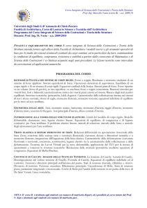 UNIVERSITÀ DEGLI STUDI “G. D’ANNUNZIO” DI CHIETI-PESCARA FACOLTÀ DI ARCHITETTURA CORSO DI LAUREA SPECIALISTICA, CORSI DI LAUREA TRIENNALI CORSO INTEGRATO DI SCIENZA DELLE COSTRUZIONI E TEORIA DELLE STRUTTURE (Canale C) a.a. 2008-2009 Docente: Paolo Casini1 Il presente corso (canale C, lettere N-Z) è parallelo agli analoghi corsi tenuti dal prof. Vincenzo Sepe (canale A, lettere A-E) e dal prof. Marcello Vasta (canale B, lettere F-M). PROGRAMMA DI SCIENZA DELLE COSTRUZIONI Finalità e inquadramento del corso Il corso intende fornire agli allievi della Facoltà di Architettura i modelli teorici e gli strumenti operativi di base per lo studio dei sistemi strutturali costituiti da corpi continui, ed in particolare da travi, esaminandone le condizioni di equilibrio, congruenza, resistenza e stabilità a partire dalle conoscenze di Matematica e di Statica acquisite negli anni precedenti. In parallelo alle lezioni teoriche saranno svolte esercitazioni finalizzate alla risoluzione di problemi applicativi. 0. Prerequisiti Elementi di algebra lineare: vettori, matrici, sistemi di equazioni lineari. Elementi di analisi matematica: calcolo differenziale e integrale, studio delle funzioni. Statica: conoscenza teorica e capacità operative sulla statica di sistemi di corpi rigidi, in particolare travi e sistemi di travi indeformabili. 1. Travi elastiche 1.1 Cinematica. Geometria. Spostamenti e deformazioni. Analisi locale della deformazione. Equazioni implicite di congruenza, condizioni al contorno. Il problema cinematico per la trave piana. 1.2 Statica. Equazioni indefinite d’equilibrio, condizioni al contorno. Il problema statico per la trave piana. 1.3 Dualità statico-cinematica. Il teorema dei lavori virtuali, corollari del teorema dei lavori virtuali, formula generale dello spostamento. 1.4 Materiale costitutivo. Risposta a variazioni termiche. Legame costitutivo della trave elastica. 1.5 Il problema elastico. Formulazione del problema elastostatico lineare, ipotesi di validità, strategie di soluzione. Trave di Eulero-Bernoulli. Metodo degli spostamenti: equazioni della linea elastica. Metodo delle forze. Calcolo di componenti di spostamento/rotazione in sistemi isostatici e iperstatici. Risoluzione di sistemi iperstatici con il metodo delle forze e con il metodo degli spostamenti. 2. Trattazione tecnica della trave 2.1 Cenni al continuo tridimensionale di forma generica. Definizione di tensione, tensione normale e tensione tangenziale, dipendenza del vettore della tensione dalla giacitura, direzioni prin- 1 Università degli Studi di Chieti-Pescara “G. D’Annunzio” Dipartimento PRICOS, viale Pindaro 42, Pescara. e-mail: [email protected] cipali di tensione e tensioni principali, cerchio di Mohr delle tensioni. Deformazione unitaria e scorrimento angolare. Legame tra tensioni e deformazioni in regime di elasticità lineare. 2.2 Analisi dello stato tensionale nella trave (trattazione tecnica). Geometria delle aree, baricentro, momenti statici, momenti di inerzia. Ipotesi di conservazione delle sezioni piane. Forza normale centrata. Flessione retta. Torsione uniforme: torsione nelle sezioni sottili chiuse e formula di Bredt, torsione in sezioni rettangolari, in sezioni sviluppabili in rettangolo sottile, torsione nella sezione circolare piena e cava. Trattazione approssimata del Taglio (Jourawski). Sollecitazioni composte: flessione deviata; sforzo normale eccentrico, relazione tra centro di sollecitazione ed asse neutro, nocciolo centrale d’inerzia; taglio e torsione, centro di taglio. Bibliografia ¾ P. Casini, M. Vasta, Scienza delle Costruzioni per l’Architettura e l’Ingegneria Edile, CittàStudi (UTET università), 2008. (Esce nelle librerie a ottobre 2008) ¾ P.Casini, Esercitazioni e prove d’esame risolte distribuite durante il corso al seguente indirizzo: www.pcasini.it/pricos/sdc • • • • C. Comi, L. Corradi Dell’Acqua: Introduzione alla meccanica strutturale, McGrawHill, 2007. L. Gambarotta, L. Nunziante, A. Tralli: Scienza delle Costruzioni, McGraw-Hill, 2003. C. Gavarini: Lezioni di Scienza delle Costruzioni, Masson, 1993. E. Viola: Complementi ed esercizi di Scienza delle Costruzioni, Voll. 1, 2, Pitagora. Modalità di svolgimento dell’esame Una prova scritta relativa alla soluzione di due problemi di carattere applicativo sugli argomenti del corso, ed una prova orale. Durante il semestre saranno svolte due prove di accertamento con valore di esonero dalla prova scritta. Ulteriori informazioni, materiale didattico, e eventuali aggiornamenti sono disponibili alla pagina web: http://www.pcasini.it/pricos/sdc Per comunicazioni dirette: e-mail [email protected]