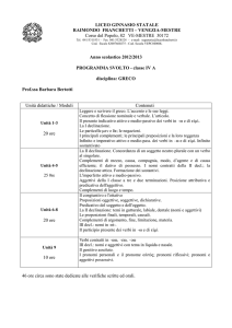 1 A Programma di Latino 1)Analisi logica: elementi di base della frase i complementi subordinazione- coordinazione 1) Grammatica. Le 5 declianazioni dei nomi Le 2 classi degli aggettivi Verbi: modo indicativo(forma attiva e passiva): verbo sum e verbi quattro coniugazioni regolari e verbi in io principali complementi ablativo assoluto(participio presente) aggettivi numerali cardinali, ordinali, distributivi Programma di Storia 1)Preistoria : le origini dell’uomo Paleolitico- Mesolitico- Neolitico 2)Le civiltà fluviali: La civiltà masopotamica Sumeri, Accadi,Babilonesi, Assiri, Hittiti. L’antico Egitto: antico-medio-nuovo Regno-gli Hyksos Fenici ed Ebrei 3)Civiltà greca arcaica: civiltà cretese “ micenea Nascita della polis Prima e seconda colonizzazione Sparta ed Atene: società spartana organizzazione politica società ateniese organizzazione politica unità del mondo greco e l’incubo persi Programma di Geografia 1) L’Italia tra Europa e Mediterraneo. Territorio, ambienti,storia,poplazione,economia e sviluppo. 2) L’Europa. Territorio e ambienti, storia, popolazione,economia e sviluppo. Aree geopolitiche: la regione del Mediterraneo L’Europa delle grandi potenze La regione britannica La regione baltica e scandinava La regione centro-orientale La penisola balcanica Russia 3)L’Asia: territorio economia e sviluppo e ambienti, storia, La regione indiana: l’India. popolazione,