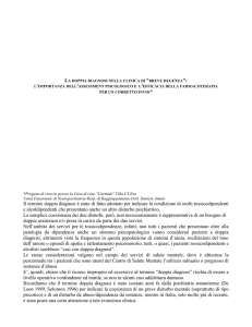 Co-morbidity EMCDDA 2004 selected issue In EMCDDA 2004 Annual report on the state of the drugs problem in the European Union and Norway Questione specifica 3 Comorbilità Introduzione La coesistenza di malattie psichiatriche e disturbi dovuti al consumo di sostanze stupefacenti, definita comunemente comorbilità o doppia diagnosi, non è un fenomeno nuovo. Tuttavia, in questi ultimi anni il problema ha acquisito una maggiore rilevanza nell’ambito del dibattito politico e professionale, in quanto è ormai chiaro che le persone interessate al fenomeno sono numerose ed il loro numero è probabilmente in crescita. Questo capitolo è dedicato alla coesistenza di disturbi psichiatrici e della personalità, da un lato, e di prassi di consumo di droghe illecite, dall’altro. In effetti, è spesso più appropriato parlare di plurimultimorbilità, in quanto gli individui interessati soffrono spesso di malattie somatiche, ad esempio, infezioni da virus dell’immunodeficienza (HIV) o dell’epatite C, nonché di disturbi sociali, quali problemi familiari, disoccupazione, detenzione, mancanza di una fissa dimora. I servizi assistenziali e terapeutici sono di solito inadeguati ad affrontare le necessità diagnostiche e terapeutiche di questo gruppo di pazienti, trascurando e/o non riuscendo a fronteggiare le problematiche dei pazienti nella loro totalità. Questo porta spesso al fenomeno chiamato «revolving door» (porta girevole): pazienti che hanno un gran bisogno di trattamento che vengono rispediti da un servizio all’altro, mentre la loro situazione peggiora continuamente. Si fa notare che il rapporto specifico tra consumo di cannabis e disturbi psichiatrici è affrontato più approfonditamente nella questione specifica sulla cannabis (pag. 82). Definizione La comorbilità, o doppia diagnosi, è definita dall’Organizzazione mondiale della sanità (OMS) come la «coesistenza nel medesimo individuo di un disturbo dovuto al consumo di sostanze psicoattive e di un altro disturbo psichiatrico» (OMS, 1995). Secondo l’ufficio delle Nazioni Unite contro la droga ed il crimine (UNODC), una persona con doppia diagnosi è una «persona cui è stato diagnosticato un problema per abuso di alcool o di altre sostanze stupefacenti in aggiunta ad un altro problema solitamente di natura psichiatrica, ad esempio, disturbi depressivi o schizofrenia» [United Nations Office for Drug Control and Crime Prevention (UNODCCP), 2000]. In altre parole, per comorbilità in questo contesto s’intende la 94 coesistenza temporale di due o più disturbi psichiatrici o della personalità, uno dei quali è il consumo problematico di sostanze stupefacenti. Eziologia Determinare l’eziologia della comorbilità può portare al tipico dibattito se sia nato prima l’uovo o la gallina. Le ricerche esistenti sul rapporto causale tra disturbi psichiatrici e disturbi derivanti da sostanze stupefacenti non portano ad alcuna conclusione. I sintomi dei disturbi mentali e dei problemi legati alla tossicodipendenza interagiscono l’uno con l’altro e si influenzano vicendevolmente. Dalle ricerche emerge che i disturbi psichiatrici e della personalità di solito si manifestano prima dei disturbi derivanti dall’uso di sostanze stupefacenti, vale a dire accentuano la suscettibilità individuale a tali problemi; (Kessler e al., 2001; Bakken e al., 2003); tuttavia, i disturbi psichiatrici possono essere anche aggravati dal consumo di sostanze stupefacenti (ad esempio, per la depressione: McIntosh e Ritson, 2001) oppure possono manifestarsi in parallelo. Il consumo di sostanze stupefacenti può essere considerato anche come una componente o il sintomo di un disturbo psichiatrico o della personalità, oltre che come un tentativo di automedicazione (ad esempio, Williams e al., 1990; Murray e al., 2003). Il fatto che il consumo di sostanze stupefacenti vada ad alleviare le manifestazioni dello stress incoraggia lo sviluppo della dipendenza. Una volta che il consumo di sostanze stupefacenti sia interrotto, ad esempio con un trattamento di disassuefazione o con una terapia sostitutiva, i sintomi possono ricomparire. Le psicosi acute indotte da sostanze stupefacenti caratterizzano in particolare i consumatori di cocaina, anfetamine ed allucinogeni, le quali, di solito, si attenuano relativamente in fretta. Può essere però molto difficile operare una distinzione tra i sintomi che sono dovuti all’intossicazione da sostanze stupefacenti ed episodi psicotici privi di correlazione. Krausz (1996) suggerisce quattro categorie di doppia diagnosi: • una diagnosi primaria di malattia mentale, con una diagnosi successiva (doppia) di abuso di sostanze stupefacenti, che incide negativamente sulla salute mentale; Questione specifica 3: Comorbilità • una diagnosi primaria di tossicodipendenza con complicanze psichiatriche che conducono alla malattia mentale; • diagnosi concomitanti di abuso di sostanze stupefacenti e disturbi psichiatrici; • una doppia diagnosi di abuso di sostanze stupefacenti e disturbi depressivi, ascrivibili entrambi ad una preesistente esperienza traumatica (ad es. disturbo da stress post-traumatico). Analogamente, la relazione nazionale svedese opera una distinzione tra i pazienti psichiatrici affetti da comorbilità ed i pazienti tossicodipendenti affetti da disturbi della personalità, i quali risultano aggravati dal consumo di sostanze stupefacenti e non sempre sono adeguatamente diagnosticati. Morel (1999) distingue tra disturbi psichiatrici aspecifici riscontrati nei tossicodipendenti e complicanze specificamente connesse al consumo di sostanze stupefacenti. Tra i tossicodipendenti si riscontrano spesso, fra l’altro, i seguenti disturbi: • ansia, disturbi depressivi; • disturbi del sonno derivanti dalla depressione, forme di ansia o psicosi; • comportamenti aggressivi e violenti, che indicano disturbi della personalità, di carattere antisociale, psicopatico, schizofrenico o paranoide. I problemi collegat