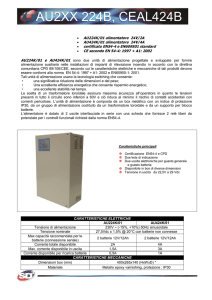 TFPS-5 Gruppo di alimentazione indirizzato TFPS-5 Alimentatore indirizzato Gruppo di alimentazione TFPS-5 Gruppo di alimentazione supplementare indirizzato per sistemi di rivelazione e di segnalazione d’incendio per edifici. Tensione nominale di alimentazione 230V AC. Dati nominali di uscita: tensione nominale 28V DC corrente massima 5A. Il gruppo fornisce 3 uscite indipendenti e protette per l’alimentazione di utenze esterne. Ogni uscita eroga una corrente massima di 1,1A. Funzioni automatiche di test e sgancio batterie per scarica profonda. Pannello di controllo frontale con 6 Led di segnalazione di stato funzionale. Uscita di segnalazione guasto: relè in scambio. Alloggiamento batterie tampone: 2 da 12V 17Ah. Completa gestione RSC® del dispositivo: programmazione, telegestione e controllo di tutti i parametri di funzionamento. Separatore di linea con doppio isolatore. Collegamento su LOOP. Protocollo di comunicazione proprietario ad alta velocità . Temperatura di funzionamento: -5°C +40°C. Grado di protezione IP30. Contenitore metallico. Dimensioni (L x H x P) 320 x 365 x 170mm. Colore nero. EN 54-4:1997 + A1:2002 + A2:2006 - EN 54-17:2005. Certificato di omologazione 0051 CPR – 0432. Codice: TF5TFPS5 OBBLIGHI ED AVVERTENZE Il gruppo di alimentazione TFPS-5, può essere utilizzato in modalità indipendente o sistemistica. La modalità sistemistica prevede il collegamento del gruppo ad un loop di rilevazione delle centrali Tecnofire modelli: TFA1-298, TFA2-596, TFA4-1192. Nelle fasi di progettazione ed installazione è necessario osservare ed applicare le normative vigenti. COMPOSIZIONE DEL GRUPPO DI ALIMENTAZIONE Il gruppo di alimentazione è composto da una sezione di alimentazione primaria (Alimentatore PS) ed una alimentazione secondaria (Batterie tampone SD). L’alimentazione primaria è costituita da un alimentatore modulare switching di tipo flyback, in grado di erogare una corrente continuativa di 5A a 28V. L’alimentazione secondaria è costituita da 2 batterie da 12V 17Ah collegate in serie tra di loro. È tassativo che le batterie siano sempre 2, non associare mai batterie di costruttori, capacità e/o periodi di produzione diversi fra loro. L’uso di batterie con capacità inferiore ai 17Ah riduce le ore di autonomia del gruppo e falsa le misure relative alla resistenza interna causando possibili segnalazioni improprie di guasto. La Tensione di ricarica delle batterie è compensata automaticamente in funzione della temperatura rilevata dalla sonda che controlla la temperatura delle batterie. Il gruppo di alimentazione può essere installato solo in interni, in posizione protetta dalle intemperie. Le condizioni climatiche di utilizzo non richiedono il controllo di temperatura ed umidità. Tutti i componenti del gruppo di alimentazione, sono stati selezionati per gli scopi previsti, le loro caratteristiche sono assicurate quando le condizioni ambientali all’esterno dell’involucro corrispondono a quelle precisate per la classe 3K5 della normativa EN 60721-3-3:1995. TFPS-5 Gruppo di alimentazione TFPS-5 Alimentatore indirizzato MODALITÁ DI UTILIZZO INDIPENDENTE Il gruppo può essere utilizzato come unità indipendente di alimentazione svincolata dal loop, questa modalità non prevede il collegamento del dispositivo al loop, pertanto non è necessario programmare l’indirizzo di identificazione. Con questa modalità di utilizzo il gruppo non ha nessun interscambio dati con il sistema, di conseguenza tutte le informazioni relative al suo funzionamento sono visualizzate solo localmente dai Led di segnalazione visibili sul pannello frontale. Modalità di utilizzo Modalità di utilizzo indipendente sistemistico Collegamento al loop No Si Programmazione indirizzo No Si Segnalazioni sistemistiche No Si Segnalazioni locali Si Si MODALITÁ DI UTILIZZO SISTEMISTICA La modalità di utilizzo sistemistica prevede il collegamento del gruppo ad un loop di rilevazione, pertanto è necessario programmare il suo indirizzo di identificazione. Con questa modalità il sistema controlla e gestisce tutte le informazioni funzionali del gruppo. Le informazioni sul suo funzionamento sono visualizzate anche localmente dai Led di segnalazione visibili sul pannello frontale. UNITÁ LOGICHE Indirizzo fisico = XX Il gruppo di alimentazione supplementare è composto da una unità fisico/logica di funzionamento. Unità logica 1 Gruppo di alimentazione INDIRIZZAMENTO L'indirizzo fisico di identificazione del gruppo di alimentazione supplementare viene programmato, tramite due selettori rotativi decimali posti all’interno del contenitore, sulla scheda madre di attestaggio cavi. I due selettori permettono d’impostare le due cifre che compongono il numero d'indirizzo fisico del dispositivo. I selettori sono contradistinti da diciture che definiscono la posizione della cifra da impostare: X10 per le decine ed X1 per le unità. Il range numerico degli indirizzi ammessi per il gruppo di alimentazione va dall’indirizzo n.01 all’indirizzo n.99. Attenzione la programmazione dell’indirizzo n.00 esclude di fatto il gruppo di alimentazione dal funzionamento, del sistema, ma il suo assorbimento grava comunque sul Loop. Attenzione anche se escluso dal funzionamento generale del sistema, il gruppo è in grado erogare tutta la corrente disponibile. SEPARATORE DI LINEA Il gruppo di alimentazione è dotato di un separatore di linea con doppio isolatore. In caso di cortocircuito della linea Loop, il separatore interviene isolando il tratto di linea interessato dal guasto, salvaguardando così il corretto funzionamento dei dispositivi collegati a monte e a valle. L’intervento del separatore preserva il regolare funzionamento del gruppo di alimentazione. Nel contempo alla centrale di rivelazione viene inviata la segnalazione di guasto “Separatore aperto”. FUNZIONI DIAGNOSTICHE La centrale gestisce una serie di funzioni diagnostiche specializzate per ogni tipologia di modulo. Le funzioni diagnosti