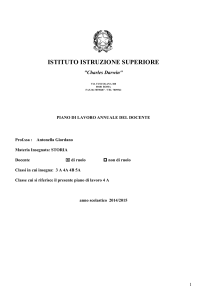 1 Istituto Tecnico Economico Statale “R.Valturio” - Rimini Docente: Belloni Mariagrazia Materia: Storia Classe: 4^F Relazioni Internazionali per il Marketing Anno scolastico 2013/2014 Programma svolto Contenuti Modulo 0 Ripasso sulla prima metà del Seicento: il Seicento tra crisi e progresso economico, l’Europa dopo Westfalia, l’Italia tra splendore e decadenza, la concezione moderna dello Stato e l’assolutismo Modulo 1: Dall’Antico regime all’Illuminismo - - L’assolutismo nella Francia di Luigi XIV Nuovi equilibri in Europa e nel mondo: l’ascesa di Austria, Russia e Prussia tra Seicento e Settecento; le politiche coloniali ed economiche di Inghilterra e Francia; l’espansionismo degli stati europei e la guerra dei Sette anni; la penetrazione occidentale in Giappone e Cina Illuminismo e riforme: le nuove idee e i mutamenti della società, il dispotismo illuminato Modulo 2: Le rivoluzioni del Settecento e l’età napoleonica - La rivoluzione industriale in Inghilterra La Rivoluzione americana La Rivoluzione francese L’età post-rivoluzionaria e il regime di Napoleone Modulo 3: L’età dei Risorgimenti - L’età della Restaurazione (sintesi) I moti nazionali e liberali degli anni 1820-1830 in Europa (sintesi), nel Sud America (sintesi) e in Italia. L’industrializzazione, il socialismo e le rivoluzioni del ’48 in Europa (sintesi) Il ’48 in Italia e la prima guerra d’indipendenza (sintesi) La seconda guerra d’indipendenza e l’unità d’Italia (sintesi) Modulo 4: Europa e Italia nel secondo Ottocento - La seconda rivoluzione industriale e la questione sociale (sintesi) Stati-nazione e nuovi equilibri: la Francia dal II Impero alla III repubblica (sintesi), la Prussia di Bismarck (sintesi), l’impero austro-ungarico e la Russia (sintesi), l’Inghilterra vittoriana (sintesi) I problemi dell’Italia unita, Destra e Sinistra a confronto: la Destra storica, la terza guerra d’indipendenza e l’annessione di Roma (sintesi); la Sinistra storica, l’avvio dell’industrializzazione, le aspirazioni colonialistiche, da Crispi alla crisi di fine secolo (sintesi) 2 Educazione alla cittadinanza - Lo sviluppo industriale e l’evoluzione del mondo del lavoro Le prime costituzioni e i diritti dell’uomo e del cittadino Libro di testo A. Brancati – T. Pagliarani, Dialogo con la storia e l’attualità, La Nuova Italia, Vol. 2 Si ricorda agli studenti con sospensione di giudizio in storia che la prova di verifica verterà sul programma svolto, con particolare riferimento ai moduli 2,3 e 4. Firma docente (Prof.ssa Mariagrazia Belloni) Rimini, 04/06/14 __________________________________________________