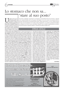 11/10/2013 Prof. Gioffrè Valeria Venuti Malattie dell’esofago Cenni di anatomia L’esofago è un tubo a struttura muscolare, lungo circa 25 cm che origina dalla faringe e arriva fino allo stomaco occupando due delle cavità più importanti del nostro organismo e dividendosi quindi in due porzioni, la maggiore detta intratoracica in quanto situata all’interno del torace e la minore intraddominale, in quanto situata all’interno della cavità addominale. La parete dell’esofago è formata da tre tonache: la tonaca mucosa, la tonaca sottomuscosa, la tonaca muscolare, che in realtà è la componente più importante della struttura esofagea e si dispone in due strati, uno circolare e l’altro longitudinale. Per cui, una delle caratteristiche più importanti, che poi vedremo avere risvolti dal punto di vista fisiopatologico, e la mancanza di una sierosa, così come avviene in poche altre parti del nostro organismo, ovvero nell’ ovaio che è intraperitoneale e quindi non ha sierosa e la parte sottoperitoneale del retto – importante perché sono le zone nelle quali possono verificarsi alcune situazioni particolari, per esempio la vascolarizzazione che determina come primo filtro non il fegato ma il polmone o per esempio che tutto ciò che c’è nel peritoneo va a finire nella superficie dell’ovaio e via dicendo. Vascolarizzazione La vascolarizzazione dell’esofago è molto scarsa ed è particolare in quanto è segmentaria, contrariamente a quella dello stomaco, colon e mesentere (e quasi tutti gli organi e apparati) che hanno sia un’arteria principale che delle arterie accessorie. In particolare è data da: 1. I rami provenienti dall’arteria tiroidea inferiore; 2. I rami provenienti dalle arterie bronchiali; 3. I rami provenienti dall’arteria frenica e dalla gastrica sx. Il drenaggio venoso corrisponde in genere, come in tutto l’organismo, alla distribuzione arteriosa e quindi, in questo caso, il drenaggio venoso è sempre segmentario. Questa caratteristica fa sì che nel terzo inferiore dell’ esofago esista una connessione tra sistema venoso portale e sistema venoso sistemico, grazie alla presenza di anastomosi porto - cavali che determinano lo scarico dal sistema venoso del tubo digerente direttamente in quello generale e questo è importante perché se si instaura l’ipertensione portale si avrà la comparsa di varici nelle vene sottomucose dell’esofago. [analoga situazione si ha nella zona sottoperitoneale del retto che ha anastomosi tra sistema portale e la rete sistemica venosa con conseguente, possibile formazione delle varici per ipertensione portale che determinano, a loro volta, le emorroidi sintomatiche del retto.] Anche il drenaggio linfatico è un po’ di tipo segmentario poiché le vie linfatiche si estendono nel senso longitudinale dell’esofago e drenano ai linfonodi periesofagei, da questi poi si dirigono verso l’alto, cioè verso i linfonodi del collo, e in basso verso quelli del plesso celiaco e della piccola curvatura gastrica. L’innervazione simpatica e vagale avviene attraverso due reti: intramuscolare e venosa, come per tutto il tratto dell’apparato digerente. PATOLOGIE DELL’ESOFAGO Le possiamo dividere in: PATOLOGIE FUNZIONALI: di cui le più rappresentate sono il reflusso gastroesofageo, i disturbi della motilità gastroesofagea e i diverticoli esofagei. PATOLOGIE ORGANICHE: tumori. Reflusso gastroesofageo Condizione morbosa caratterizzata dalla presenza di un flusso retrogrado di materiale acido, alcalino o misto che va dallo stomaco all’esofago. E’ una patologia tra le più frequenti dal punto di vista gastroenterologico ed è in costante aumento a causa delle abitudini di vita sempre più stressanti. In Italia si calcola che abbia una prevalenza del circa il 9% con un rapporto di uomini e donne di 3:2 (anche se questo rapporto sembra invertirsi). Negli ultimi decenni si ha questo aumento di incidenza del reflusso gastroesofageo, ma anche di altre patologie, a causa delle nuove abitudini di vita tipiche dei popoli nordici e che hanno preso sempre più piede anche in Italia, come ad esempio l’utilizzo frequente di alcool, che i popoli costretti a temperature più rigide consumano per mantenersi al caldo ed avere calorie da consumare subito, mentre a noi, popoli meridionali sottoposti a miti più caldi, non servono. FISIOPATOGENESI: Il reflusso gastro-esofageo è dato da uno squilibrio tra i meccanismi difensivi della mucosa esofagea e i fattori aggressivi. 1)Meccanismi di difesa della mucosa esofagea: Barriera anatomo – funzionale antireflusso costituita a sua volta dallo sfintere esofageo inferiore (formato dalla membrana fibro-elastica di Weiner Bertelli e dalla valvola di Von Gubaroff), e dall’angolo di His (angolo virtuale formato dal fascio a collare di Helvetius, dalle fibre oblique di Willis, dal legamento gastrofrenico, dal piccolo epiplon che si inserisce sul diaframma e dall’orgine dell’arteria gastrica di sinistra); Clearance esofagea; Barriera esofagea costituita dal muco che riveste l’epitelio stratificato dello stomaco e dai bicarbonati che sono dentro questo muco e dentro le cellule. Contribuiscono, infine, a costituire questa barriera i pilastri diaframmatici detti laccio, o Fionda di Allison. 2) Fattori aggressivi: Acido cloridrico presente nello stomaco, Peptina liberata nel tubo gastrico, Bile che refluisce dal duodeno nello stomaco insieme agli enzimi pancreatici. Il fattore aggressivo più importante è comunque costituito dal materiale gastrico che refluisce nell’esofago. Allora che cosa succede: che aumenta la motilità esofagea, agisce sullo sfintere inferiore, aumenta il tono, vi sono dei rilasciamenti transitori, rallenta lo svuotamento gastrico, aumenta la pressione endoaddominale e quindi il materiale acido refluisce dallo stomaco all’esofago. Per cui il problema agisce prevalentemente sul cosiddetto LES: sfintere esofageo inferiore che non è uno sfintere organico, ma funzionale; è