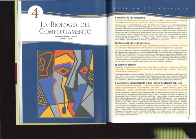 La struttura del sistema nervoso • Le cellule del sistema nervoso • L'eccitazione deWassone: il potenziale