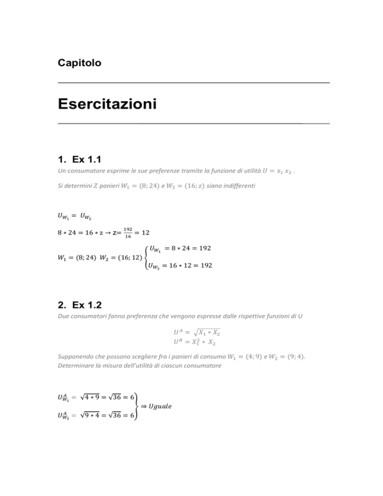 Si determini π panieri π1 = (8; 24) e π2 = (16; π§) siano indifferenti