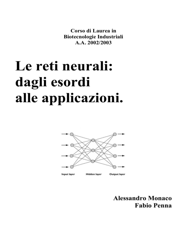 P. Strabella- A. Colosimo “Le reti neurali artificiali a loro applicazioni di interesse biologico”.