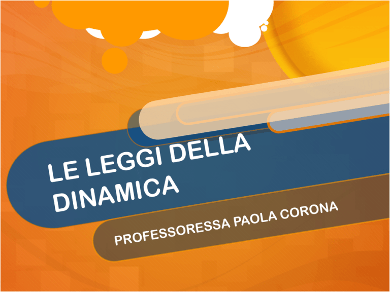 A L L E D I G G E L LE A C I M DINA OR S S E F PRO A N O R O AC L O A P ESSA LA DINAMICA NEWTONIANA La relazione tra le forze e il moto è oggetto di quella parte della meccanica chiamata dinamica (dal greco dýnamis, «forza») I problemi fondamentali della dinamica sono due: Ø Date le forze che agiscono su un corpo, determinare il moto del corpo Ø Dato il moto di un corpo, determinare le forze che agiscono su di esso La dinamica si basa su tre leggi fisiche enunciate per la prima volta da Isaac Newton (1642-1727) Le tre leggi trovarono subito un’applicazione nei moti celesti e furono poi verificate accuratamente in laboratorio Oggi sappiamo che le leggi di Newton governano tutti i fenomeni fisici della vita quotidiana e richiedono correzioni solo in due casi estremi: Nella meccanica relativistica: Quando la velocità dei corpi è prossima a quella della luce. Nella meccanica quantistica: Quando si considerano fenomeni atomici e subatomici Le leggi di Newton coinvolgono tre grandezze: Ø La forza (che descrive le interazioni di un corpo con un altro corpo) Ø L’accelerazione (una grandezza cinematica, cioè che caratterizza il moto) Ø La massa (una proprietà intrinseca dei corpi) La massa ha un ruolo particolare: rappresenta la misura di quanto sia difficile cambiare la velocità dell’oggetto LA PRIMA LEGGE DELLA DINAMICA Se la forza risultante che agisce su un oggetto è nulla, la velocità dell’oggetto è nulla L’equilibrio statico è un caso particolare di applicazione di questa legge Quando la risultante delle forze è nulla e il corpo si muove con velocità costante diversa da zero, si parla di equilibrio dinamico La prima legge di Newton, già nota a Galileo, è anche conosciuta come legge(o principio) di inerzia Dalle osservazioni si deduce che: Ø Un oggetto fermo rimane fermo se nessuna forza agisce su di esso Ø Un oggetto in movimento con velocità costante continua a muoversi con la stessa velocità se nessuna forza agisce su di esso L’espressione «nessuna forza» può assumere uno dei seguenti significati: Ø Nessuna forza agisce sull’oggetto Ø Alcune forze agiscono sull’oggetto, ma la loro risultante è nulla Sistemi di riferimento inerziali Secondo la prima legge di Newton, la quiete e il moto uniforme sono situazioni perfettamente equivalenti Sistemi di riferimento inerziali Nell’esempio appena fatto diciamo che ognuno dei due osservatori costituisce un sistema di riferimento inerziale, cioè un sistema di riferimento in cui vale il principio di inerzia Sistema di riferimento inerziale Un sistema di riferimento inerziale è un sistema in cui vale il principio di inerzia. Se un sistema di riferimento è inerziale, allora qualsiasi sistema di riferimento che si muove con velocità costante rispetto al primo è un sistema inerziale Se un oggetto si muove con velocità costante in un sistema inerziale, è sempre possibile trovare un altro sistema inerziale in cui l’oggetto è fermo Sistemi di riferimento non inerziali Sistemi di riferimento non inerziali Nell’esempio precedente, il sistema di riferimento dell’osservatore sul treno è un sistema non inerziale perché in esso non vale il principio di inerzia. Sistema non inerziale Qualsiasi sistema di riferimento che accelera rispetto a un sistema inerziale è un sistema non inerziale La Terra può essere considerata con buona approssimazione un sistema inerziale. Il principio di relatività galileiano Ø Le leggi della dinamica sono le stesse in tutti i riferimenti inerziali Ø Tutti i sistemi di riferimento inerziali sono equivalenti Non esiste un sistema di riferimento privilegiato Nel 1905 Einstein estende il principio di relatività a tutte le leggi della fisica, affermando che le leggi della fisica sono invarianti rispetto al cambiamento del sistema di riferimento inerziale La seconda legge della dinamica La seconda legge della dinamica newtoniana stabilisce, fondamentalmente, che forze non bilanciate producono un’accelerazione SECONDA LEGGE DELLA DINAMICA (O SECONDA LEGGE DI NEWTON) Se su un oggetto di massa m agisce una forza risultante , l’oggetto subisce un’accelerazione proporzionale alla forza risultante, che ha la stessa direzione e lo stesso verso: La costante di proporzionalità m è la massa dell’oggetto La seconda legge in forma vettoriale si può scrivere in termini di componenti cartesiane del vettore e vale indipendentemente per ogni componente La seconda legge in forma vettoriale si può scrivere in termini di componenti cartesiane del vettore e vale indipendentemente per ogni componente Usando la seconda legge della dinamica possiamo ridefinire il newton come segue: Newton Il newton è la forza necessaria per dare a un corpo di massa 1 kg un’accelerazione di 1 m/s2: 1 N = (1 kg) ( 1 m/s2) = 1 kg ⋅ m/s2 Caso particolare della seconda legge: Se la risultante delle forze che agiscono su un corpo è zero, il corpo o è fermo o si muove con velocità costante In altre parole, quando la risultante delle forze è nulla ritroviamo la prima legge di Newton La seconda legge per un corpo in caduta libera Ogni corpo è soggetto alla forza di gravità esercitata dalla Terra. Questa forza, diretta verso il basso, è la forza peso del corpo. La sua intensità è il peso P: P = mg Seconda legge per un corpo in caduta libera Tutti i corpi in caduta libera, indipendentemente dalla loro massa, hanno la stessa accelerazione, pari all’accelerazione di gravità g, e raggiungono terra con la stessa velocità LA TERZA LEGGE DELLA DINAMICA La natura non produce mai una sola forza alla volta: le forze si presentano sempre in coppie Terza legge della dinamica (principio di azione e reazione) Se un oggetto 1 esercita una forza sull’oggetto 2, allora l’oggetto 2 esercita una forza di uguale intensità e verso opposto, - , sull’oggetto 1 Le forze di azione e reazione agiscono sempre su oggetti diversi e quindi non si eliminano a vicenda APPLICAZIONE DELLE LEGGI DELLADINAMICA Moto lungo
