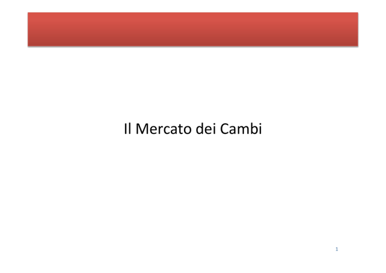Il Mercato dei Cambi Giuseppe De Arcangelis © 2012 Economia Internazionale 1 Premessa • Nella teoria del commercio internazionale esiste solo bara7o • Ora, in ognuna delle economie, si introducono: ‐ la moneta con le sue funzioni tradizionali (unità di conto, riserva di valore, mezzo di scambio) ‐ i Ctoli finanziari (riserva di valore), che possono essere compraC unicamente con valuta locale • Le monete delle varie economie si scambiano a7raverso il mercato dei cambi • Il prezzo stabilito nel mercato dei cambi è il tasso di cambio Giuseppe De Arcangelis © 2012 Economia Internazionale 2 Che cos’è il Mercato dei Cambi? • Luogo (non necessariamente fisico) in cui si scambiano le valute e si stabiliscono i relaCvi prezzi, ovvero i tassi di cambio • È un mercato globale che funziona 24 ore al giorno • Le transazioni valutarie superano di gran lunga le transazioni commerciali • Mercato delle xenovalute (moneta presa e data in presCto): ingenC spostamenC da parte di grandi isCtuzioni con tassi legaC al tasso di interesse e di cambio. Sfuggono a controlli e tassazioni. • Il tasso di cambio è il prezzo relaCvo al quale due monete vengono scambiate Giuseppe De Arcangelis © 2012 Economia Internazionale 3 Tassi di Cambio: Convenzione • Certo per l’incerto (convenzione ado7ata per l’Euro dal 1999): il tasso di cambio della valuta nazionale è la quanCtà di valuta estera che serve per unità di valuta nazionale • E = tasso di cambio euro‐dollaro, ovvero quanCtà di dollari necessaria per 1 euro • E aumenta: l’euro si apprezza nei confronC del dollaro (il dollaro si deprezza nei confronC dell’euro) movimenC quoCdiani del cambio • E diminuisce: l’euro si deprezza nei confronC del dollaro (il dollaro si apprezza nei confronC dell’euro) movimenC quoCdiani del cambio • ≠ Svalutazione e rivalutazione: dipende dal regime di cambio (rigido o flex) Giuseppe De Arcangelis © 2012 Economia Internazionale 4 Tassi di Cambio Bilaterali • Tassi di cambio bilaterali: prezzo di una valuta nei confronC di un’altra. pubblicaC quoCdianamente sui giornali • Le quotazioni sono in denaro (bid) e le7era (ask): sono prezzo di acquisto e di vendita da parte dell’intermediario, la differenza (bid ask spread) è il suo compenso maggiore è la concorrenza, minori i margini • Se le valute sono due (es. sterlina e dollaro), conoscendo il cambio bilaterale sterlina‐dollaro, si conosce anche il cambio dollaro‐sterlina, facendo il reciproco • Arbitraggio a due piazze o a tre: anCcamente era possibile o7enere sterline solamente a Londra e dollari a New York in cambio di oro; la libera circolazione dell’oro portava all’eguagliamento dei prezzi nelle due piazze di Londra e New York (a meno dei cosC di trasporto). Si effe7ua quando è possibile acquistare su mercaC separaC e lucrare sul cambio Giuseppe De Arcangelis © 2012 Economia Internazionale 5 Tassi di Cambio Bilaterali e incrociaC • In generale, se: • Ei,k = tasso di cambio bilaterale moneta i‐moneta k • Ej,k = tasso di cambio bilaterale moneta j‐moneta k • Se vale l’arbitraggio a tre piazze, allora il tasso di cambio Ei,j è dato da: Giuseppe De Arcangelis © 2012 Economia Internazionale 6 Tassi di Cambio IncrociaC • Se le valute sono tre – euro, dollaro e yen – e si conoscono i cambi dell’euro, è possibile o7enere anche il cambio dollaro‐ yen. • UCli per ridurre il numero dei tassi di cambio da conoscere per o7enerne uno bilaterale (es. cambio peso/corona norvegese: confrontare peso/$ e corona/$) Giuseppe De Arcangelis © 2012 Economia Internazionale 7 Tassi di Cambio a PronC e a Termine • Tassi di cambio pron8 o a termine: a seconda della natura del contra7o di compravendita o della sua scadenza • Si stabilisce oggi il prezzo tra le due valute, anche se il perfezionamento del contra7o avviene dopo un certo periodo di tempo (nel mercato a termine: 1g, 7gg, 30gg, 90gg, 180gg, 360gg). Anche in questo caso quotazione denaro e le:era. • Copertura da variazioni future del cambio e da rischio. Il suo rendimento è un tasso di interesse implicito. • Altri strumenC: contrah forward e future Giuseppe De Arcangelis © 2012 Economia Internazionale 8 Premio o Sconto a Termine • Premio a termine: maggior valore a termine della valuta nazionale, espresso in termini percentuali (prima molCplicazione) e annualizzato (seconda molCplicazione) che rende i tassi confrontabili secondo i diversi orizzonC temporali., con h orizzonte temporale (h= 1,7, 30, 90 gg) in data t • Con F tasso di cambio a termine con scadenza t+h, E tasso di cambio pronC al tempo t Giuseppe De Arcangelis © 2012 Economia Internazionale 9 Premio o Sconto a Termine • Il cambio a termine coincide con il tasso di cambio futuro a E a7eso con t +h / t l’aspe7aCva di mercato al tempo t. Ft t +h = E t +h / t a € L’andamento del premio a termine evidenzia la variazione a7esa % del cambio su base annua Nel mercato dei cambi a termine la domanda e l’offerta di valuta vengono stabiliC in relazione alle aspe7aCve € Giuseppe De Arcangelis © 2012 Economia Internazionale 10 Tassi di Cambio Reali e Nominali • Tasso di cambio reale: quanCtà di bene rappresentaCvo estero per 1 unità del bene rappresentaCvo nazionale. Valore relaCvo dei beni di un paese rispe7o ai partner commerciali. Con P indice generale dei prezzi (prezzo di un bene composto rappresentaCvo della produzione nazionale) e P* indice del paese straniero • Se P=prezzo in € di bene rappresentaCvo francese (i.e. indice dei prezzi francese), P*=prezzo in £ di bene rappresentaCvo UK (i.e. indice dei prezzi inglese), E=cambio €‐£, allora Giuseppe De Arcangelis © 2012 Economia Internazionale 11 Tasso di Cambio Reale • Rappresenta la quanCtà di bene composto inglese che equivale ad una unità di bene composto francese = tasso di cambio reale • Q ↑ : perdita di compeCCvità delle merci nazionali (francesi); apprezzamento in termini reali (o