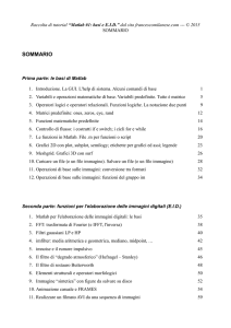 Informatica B 2013-2014 Matlab Laboratorio del 10/12/2013 Responsabili di laboratorio: Gianluca Durelli: [email protected] Luigi Malago’: [email protected] Materiale di laboratorio reperibile all’indirizzo: www.gianlucadurelli.com Milano, 10 Dicembre 2013 Informatica B Primi passi • Installare uno dei seguenti programmi sul proprio PC: – Octave: • Open source • Download qui: http://octave.sourceforge.net/ • GUI (non richiesta): https://sites.google.com/site/guioctave/ – Matlab • Gia’ installato sui PC del Politecnico • Il Politecnico dovrebbe avere licenze del tool per gli studenti 2 Milano, 10 Dicembre 2013 Informatica B Esempio • Creare un vettore A contenente gli elementi 1, 2, 3: – A = [1, 2, 3] • Calcolare il vettore A2 ottenuto moltiplicando per 2 gli elementi di A: – A2 = A * 2 • Calcolare A3 ottenuto moltiplicando ogni elemento di A per il corrispondente elemento di A2: – A3 = A .* A2 Milano, 10 Dicembre 2013 Informatica B Scripts • Racchiudono una serie di istruzioni in un unico file • Permettono di rieseguire piu’ volte il codice scritto • Sono semplici file di testo che possono essere modificati con: – Un editor di testo presente sul proprio PC: • Notepad (Windows), Gedit (Linux), Textedit (Mac OS X) – Editor integrati nella GUI di Octave/Matlab Milano, 10 Dicembre 2013 Informatica B Scripts • Gli script devono essere “trovabili” da Octave/Matlab: – Se non sono salvati in un percorso conosciuto dal programma bisogna spostarsi nella cartella in cui sono salvati. I comandi utili per l’operazione sono: • cd CARTELLA Ci si muove nella CARTELLA specificata • pwd Stampa a video la cartella corrente • ls Stampa a video l’elenco dei file contenuti – La cartella ~ corrisponde su tutti i sistemi operativi alla home dell’utente Milano, 10 Dicembre 2013 Informatica B Esempio • Aprire un file di testo e copiarci i seguenti comandi: A = [1, 2, 3] A2 = A * 2 A3 = A .* A2 • Salvare il file sul proprio desktop chiamandolo esempio.m • Da Octave digitare: – cd ~/Desktop – esempio Milano, 10 Dicembre 2013 Informatica B Esercizio 1 • Si realizzi uno script che legga un numero N da tastiera e disegni il grafico della funzione x^N con x appartenente all’intervallo [-10, 10] – Si ricorda che per la lettura di numeri da tastiera e’ presente la funzione input – Per la realizzazione del grafico e’ definita la funzione plot Milano, 10 Dicembre 2013 Informatica B Esercizio 2 • Si realizzi un script che legga un vettore V di 3 numeri da tastiera e disegni su uno stesso grafico le funzioni x^v dove: – v e’ un numero appartenente a V letto da tastiera – x appartiene all’intervallo [-10; 10] • Si utilizzi un ciclo for per disegnare I grafici • Si vincoli l’utente ad inserire un vettore di esattamente 3 elementi Milano, 10 Dicembre 2013 Informatica B Esercizio 3 • Date le rette definite dalle seguenti equazioni: 3 2 x y 1 0 2 2x y 0 x y 1 0 • Si calcoli il loro punto di intersezione e si disegnino le tre rette nel piano cartesiano in un intorno del punto di intersezione trovato. Milano, 10 Dicembre 2013 Informatica B Esercizio 4 • Scrivere un file matlab per produrre le tabelline dei numeri da 1 a N, con N inserito da tastiera. • Per ogni numero si devono mostrare i primi M prodotti, con M letto da tastiera • Il le tabelline devono essere rappresentate come una matrice NxM dove l’elemento in posizione (n,m) conterra’ il valore n x m • Nota: e’ possibile calcolare le tabelline con una sola operazione Milano, 10 Dicembre 2013 Informatica B Esercizio 5 • Scrivere un programma che: – riceva in ingresso 10 letture provenienti da un sensore di temperatura (in gradi Celsius) 180 F C * 32 – li converta in gradi Fahrenheit: 100 – calcoli la media delle 10 letture – rappresenti sullo stesso grafico l’andamento delle rilevazioni di temperatura e la loro media Milano, 10 Dicembre 2013 Informatica B Buon lavoro! Milano, 10 Dicembre 2013 Informatica B