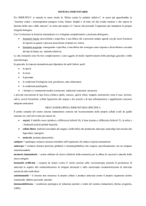 Focus AUTOIMMUNITÀ NEL BAMBINO a cura di LOREDANA LEPORE E ALBERTO TOMMASINI Il presente materiale rappresenta una parte dei contributi del convegno “Autoimmunità nel bambino”, che si è tenuto a Trieste il 2 ottobre 1998. La tolleranza immunitaria: un difficile equilibrio LUIGI D. NOTARANGELO Clinica Pediatrica, Università di Brescia La tolleranza verso gli antigeni self (autoantigeni) o verso antigeni esterni somiglianti agli antigeni self (mimetismo molecolare) è essenziale alla vita dell’organismo. Un difetto dei meccanismi tollerogenici è alla base delle malattie autoimmuni. Meccanismi tollerogenici sono stati individuati a livello centrale (timo) e periferico, e si basano sui segnali di apoptosi che uccidono i cloni T-linfocitari pericolosi o inutili. A difetti di questi meccanismi corrispondono specifiche patologie umane con autoimmunità. L a funzione principale del sistema immunitario è quella di preservare l’omeostasi dell’organismo, difendendolo sia da aggressioni esterne (infezioni) sia da modificazioni interne che possano alterare l’equilibrio dell’organismo (ad esempio tumori)1. In questo processo di discriminazione tra ciò che è “self” e ciò che “self” non è, un ruolo fondamentale viene svolto dai meccanismi di tolleranza immunitaria, grazie al quale il sistema immunitario impara a convivere pacificamente con i substrati biologici che riconosce come propri. Più in particolare, possiamo immaginare che l’omeostasi biologica dell’organismo sia assicurata da un fine bilanciamento tra forze contrapposte: la morte cellulare da un lato, e la proliferazione cellulare e la tolleranza immunitaria dall’altro (Figura 1)2. Alterazioni di questo equilibrio comportano inevitabilmente manifestazioni patologiche: un eccesso di morte cellulare programmata (o apoptosi) è alla base Medico e Bambino 6/1999 di alcune immunodeficienze congenite o acquisite (fa parte infatti anche dei meccanismi attraverso cui si realizza la deplezione di linfociti CD4+ nell’AIDS), ma anche dell’epatite fulminante e dell’estensione del danno cerebrale successivo a ischemia (sindrome anossico-emorragica del neonato). D’altro canto, un eccesso di proliferazione cellulare non controbilanciato da apoptosi, o un difetto di tolleranza immunologica sono elementi fondamentali dei processi neoplastici e delle malattie autoimmuni. TOLLERANZA CENTRALE E PERIFERICA Relativamente ai meccanismi attraverso i quali si genera e si mantiene la tolleranza immunitaria, già da alcuni decenni si è stabilita l’importanza del timo nel selezionare linfociti T in grado di riconoscere in modo specifico antigeni esogeni. A livello timico avviene infatti la generazione di linfociti T timici (timociti), ciascuno dei quali esprime un particolare tipo di recettore T. Poiché l’espressione di molecole recettoriali T è frutto di un meccanismo sostanzialmente casuale (e comunque non guidato dalla presenza di antigeni), mediante il quale vengono riarrangiati segmenti diversi nell’ambito dei geni del recettore T, possiamo immaginare che, al termine del processo, vengano generati un gran numero di timociti, ciascuno dei quali ha una sua propria specificità recettoriale; questa può essere rivolta verso antigeni esogeni, ma anche verso antigeni “self”. Se i cloni timocitari diretti contro antigeni “self” non venissero eliminati a livello timico, la conseguenza sarebbe inevitabilmente il verificarsi di malattie autoimmuni3. Un primo meccanismo attraverso cui si realizza la tolleranza immunologica è quindi quello della selezione del repertorio T nel timo; grazie a questo processo, i timociti diretti contro antigeni “self” ricevono dal legame con tali antigeni un segnale di morte cellulare, che porta alla eliminazione (delezione clonale) dei linfociti autoreattivi. Perché questo meccanismo operi correttamente, è necessario che l’architettura timica sia preservata, in modo da consentire l’inte- Il timo è il controllore centrale dell’autoimmunità: seleziona negativamente i timociti rivolti contro autoantigeni, inviando loro un segnale che ne produce la morte “per suicidio”. Un difetto congenito di questo sistema è responsabile della sindrome di Omenn. 357 Focus MECCANISMI E ALTERAZIONI DELL’OMEOSTASI A PROLIFERAZIONE TOLLERANZA MORTE CELLULARE Danno da ischemia Immunodeficienze Epatite fulminante SINDROME DI OMENN: ELEMENTI DIAGNOSTICI B MORTE CELLULARE PROLIFERAZIONE TOLLERANZA Tumori Autoimmunità Il controllo dell’omeostasi biologica negli organismi viventi è il frutto di un attento bilanciamento tra forze contrastanti, che si sono conservate lungo tutta l’evoluzione: da un lato la morte cellulare programmata (apoptosi), dall’altro la proliferazione cellulare e (nei vertebrati) la tolleranza immunitaria. Squilibri tra queste forze sono causa di malattia. In particolare, un eccesso di apoptosi è alla base dell’estensione del danno cerebrale successivo a ischemia nel neonato, in quanto nelle aree lesionate vengono liberate sostanze che attivano i meccanismi apoptotici in cellule viciniori. Nel sistema immunitario un eccesso di apoptosi è alla base di condizioni di immunodeficienza: è così per alcune forme di immunodeficienza primitiva (ad esempio, la sindrome di Omenn, in cui la cronica attivazione linfocitaria porta a innesco dell’apoptosi e quindi a deplezione linfoide), ma anche per l’AIDS (anche qui, la cronica attivazione linfocitaria esita in aumentata morte cellulare). Infine, un eccesso di apoptosi, conseguente a reazioni immunitarie iperergiche, può determinare anche un danno grave d’organo, come nel caso dell’epatite fulminante, in cui linfociti T epatotossici inviano “segnali di morte” agli epatociti. Ma anche un’attività proliferativa incontrollata (non bilanciata dall’apoptosi) o il venir meno dei meccanismi di tolleranza immunologica sono causa di patologie, rispettivamente tumori e malattie autoimmuni. La salvaguardia dell