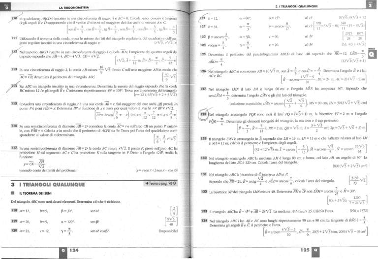 TI quadrilater<], A~CV è inscritto in una circonferenza di raggio S c AC= H. Calcola seno, coseno e tangente