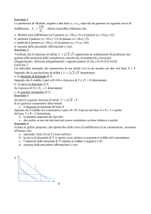 Piero è U(x,y)=xy2. La funzione di utilità di Duccio è U(x,y)=min(x,y). Piero ha una